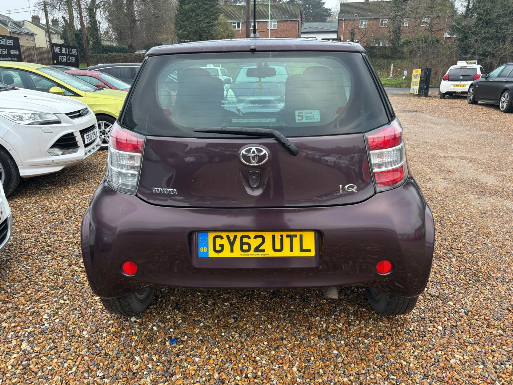 This 2013 Toyota iQ 1.33 Dual VVT-i 3 Hatchback 3dr Petrol Manual Euro 5 (98 ps) Hatchback is currently available for £3,750 in Stowmarket Suffolk with Petrol engine and Manual gearbox. For more information or to arrange a viewing, click here to send us an email using form below.