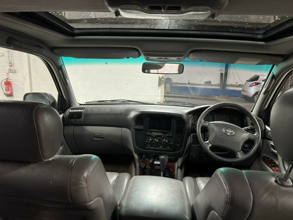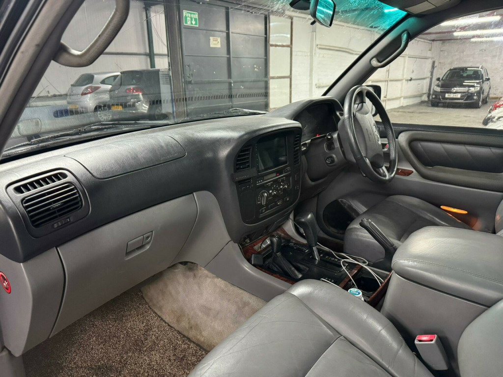 WE PROUDLY PRESENT A VERY RARE LAND CRUISER - LC100 - VERY HIGH SPEC INCLUDES - APPLE CAR PLAY, REVERSE CAM + SENSORS, AIR SUSPENSION, TILD AND SLIDE SUNROOF, ELECTRIC HEATED MEMMORY SEATS, 31'' BRAND NEW BFG TYRES, IMMACULATE CONDITION INSIDE AND OUT, ENGINE AND GEARBOX SMOOTH - MOST RECENTLY JUST BEEN SERVICED - COMES WITH 12 MONTH MOT - THIS IS THE V8 PETROL MODEL UK SUPPLIED VX (HIGH SPEC) FREE AA BREAKDOWN COVER INCLUDED - HAS BEEN VERY WELL MAINTAINED COMES WITH FULL SERVICE HISTORY- HPI CLEAR - NATIONWIDE DELIVERY AVAILABLE - PART EX WELCOME - OPEN 7 DAYS A WEEK 10AM-5PM! ALL OUR VEHICLES ARE INSPECTED BY HIGH QUALIFIED TECHNICIANS AND ARE SET TO THE HIGHEST STANDARD FOR ALL OUR VALUED CUSTOMERS! ALL VEHICLES ARE 360 HEALTH CHECKED + HPI CLEAR - ALL FULL VALETED , SERVICED + MOT'D READY TO GO WITH IMMEDIATE COLLECTION OR DELIVERY! **SECURE YOUR VEHICLE TODAY WITH A £99 HOLDING FEE** *LIVE VIDEO VIEWING AVAILABLE - EXTENDED WARRANTY NOW AVAILABLE STARTING FROM £99!**. Adjustable Steering Column/Wheel, Air Bag Driver, Air Bag Passenger, Air-Conditioning, Alarm, Alloy Wheels, Anti-Lock Brakes, Body Coloured Bumpers, Cruise Control, Electric Windows (Front/Rear), Front Fog Lights, Immobiliser, In Car Entertainment (Radio/Cassette/CD Autochanger), Mirrors External, Power-Assisted Steering, Roof Rails, Seat Lumbar Support, Seats Electric (Driver/Passenger), Speakers, Sunroof Electric (Glass Tilt/Slide), Upholstery Leather.