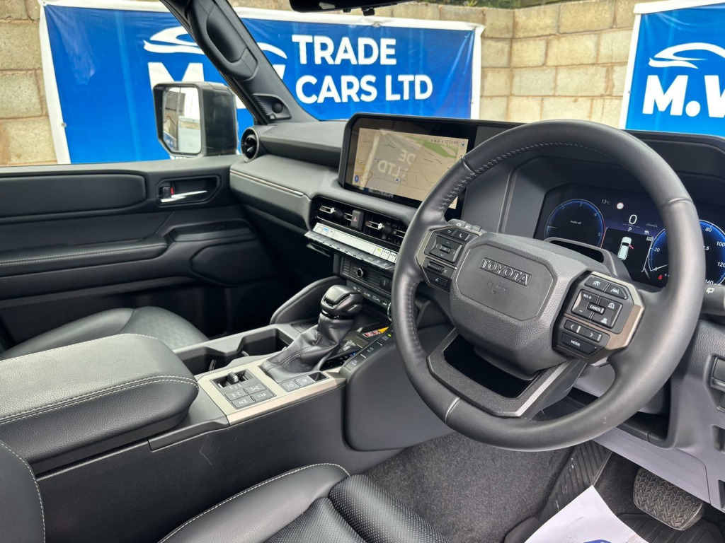 VAT Q,NO VAT FOR EXPORT,PAN ROOF,7 SEATS,360CAMERAS,FULL LEATHER TRIM,HEATED & COOLING SEATS,TOUCH SCREEN SAT NAV,SIDE STEPS,APPLE & ANDROID CAR PLAY,PARKING SENSORS,HEDS UP DISPLAY,LOADS OF EXTRAS,This 2025 Toyota Land Cruiser D Invincible presents an exceptional ownership proposition with an incredibly low mileage of just 33 miles, practically as new. As a single owner vehicle, this Euro 6 compliant 4x4 boasts a powerful 2.8L Diesel engine and a robust Four Wheel Drive system, ready for any adventure. Inside, you'll find comfortable seating for seven passengers, and the Invincible trim level ensures a premium experience. Notable features include a heated steering wheel for those chilly mornings, a 10in full colour head up display for convenient information access, and intelligent adaptive cruise control for effortless long journeys. Maneuvering is made simple with dynamic guide lines on the reversing camera, and rear passengers will appreciate the dedicated air conditioning.The Land Cruiser D Invincible is designed to excel, and its specifications highlight its superiority. The substantial 3500 kg towing weight capacity means it can handle significant loads, making it ideal for towing caravans, boats, or trailers. The combination of advanced technology like the head up display and adaptive cruise control, alongside practical comforts such as rear passenger air conditioning and a heated steering wheel, sets this vehicle apart from others in its class. This Land Cruiser offers a blend of capability, comfort, and cutting edge features, ensuring a refined and capable driving experience for all occupants. in full colour head up display, 12.3in multi-information screen, 12.3in multimedia display screen, 12v power outlet - rear passenger - 2nd row, 20in alloy wheels - 6 double spoke - matte grey, 3-spoke leather steering wheel, 360 panoramic view monitor - pvm, 60-40 split-folding - 2nd row - rear seats, abs - anti lock braking system, accelerator pedal - pendant type, active traction control - atc, adaptive high beam, adjustable rear headrests, air cleaner, airbags - driver, airbags - driver knee, airbags - front passenger, airbags - front passenger knee, airbags - side, alarm system with tilt detection sensors, alarm with intrusion sensor, anti-jam protection on power windows, anti-theft label, audio switches on steering wheel, auto headlights, auto wipers, automatic headlight cut-off, automatic headlight levelling, automatic high beam, automatic rear flashing hazard lights, ba - brake assist, back door - auto and easy closer, black dashboard, black door moulding, black insert on boot door, black side steps, blind spot monitor - bsm, body-coloured door handles, boot-tailgate - power back door, boot-tailgate - rear doors opening window, brand symbol mark, cargo area room light - 2, child safety door locks, colour multi-information display, cooler in centre console box, crawl control, cupholder - front and rear, dac - downhill assist control, digital audio broadcast - dab, digital key, digital rear-view mirror, digital speedometer - mph, digital tachometer, door courtesy light, door handles - gloss black, door mirrors - electrically heated and retractable, door window frame - black tape, driver monitoring camera, driver and front passenger air-ventilated seats, driver and front passenger personal led lights, driver and passenger seatback pockets, drivers seat memory, dynamic guide lines on reversing camera, eco driving indicator, electric power steering - eps, electronic parking brake, emergency brake-light signal - ebs, emergency driving stop system, fender liner - front and rear, follow me home headlights, front cross traffic alert - fcta, front footwell lights, front parking sensors with automatic object braking, front seat belt reminder, front side glass - green, front usb-c connectors x2, front and centre pillar assist grips, front and rear overhead assist grips, front and rear power windows, fuel tank protector, full size spare wheel, gear shift indicator - gsi, glovebox with light, grade package - adventure, grained door scuff plates, grained rear bumper, grained and painted front bumper, hac - hill start assist control, hdmi connector, headlight cleaners, headlights - levelling - rhd - aiming, heated driver and front passenger seat, heated rear seats, heater - fr and ptc heater, horn, isofix child restraint system, illuminated door pockets, immobiliser and alarm system, indicators integrated on door mirrors, integrated sport driving - 3 mode, intelligent adaptive cruise control, intermittent rear wiper, intermittent windscreen wipers, jbl premium sound system, key plate - smart fob x2, led centre room light, led daytime running lights, led front fog lights, led high-mounted stop light, led indicators, led projector headlights, led rear brake lights, led rear combination lights, led rear fog lights, lane change assist, lane departure alert with steering control, lane trace assist, leather gear shift, light on drivers and passenger sun visor, lockable glovebox, luggage compartment - 220v power outlet, luggage utility rail, manually extendable cushion on driver seat, matte grey lower front grille protection, matte grey upper front grille, memory function on door mirrors, microphone on front personal light, mirror on driver sun visor, mirror on passenger sun visor, mud flaps - front and rear, multi terrain monitor, multi-terrain select, noise reduction layer on windscreen, occupant detection - passenger and rear seat sensor, overhead console, paint protection wax - film wrap guard, panoramic view monitor display, passenger airbag on-off switch, pollen filter, power adjustable lumbar support on driver seat, power door locks, power height adjustable driver seat, power reclining driver seat, power reclining front passenger seat, power sliding front passenger seat, power tilt-telescopic steering wheel, power-adjustable tilt on driver seat, power-sliding driver seat, pre-collision system, pre-