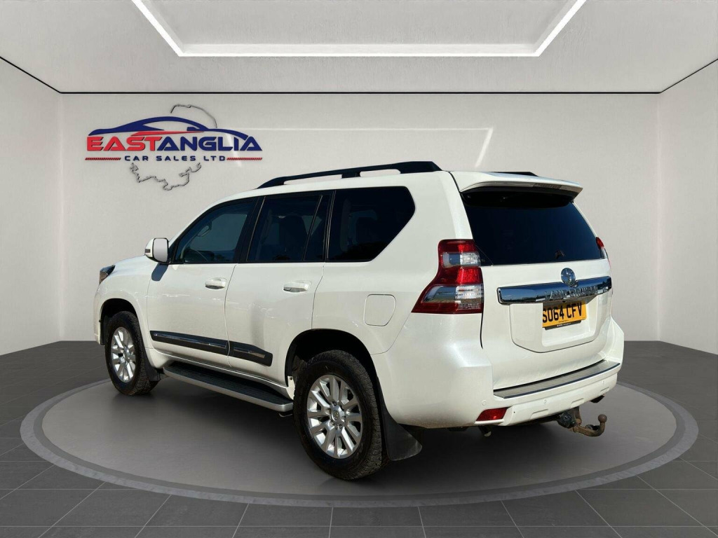 At East Anglia Car Sales we are proud to present this 2014 Toyota Land Cruiser D-4D Invincible boasts an impressive full service history, with its last service completed on 2025-09-06 at 86,100 miles, making it low mileage for its age. This capable four wheel drive model features a powerful 3.0L diesel engine and offers seating for seven occupants. It comes equipped with a detachable towbar with 13 pin wiring, a safety pack including adaptive cruise control, and an entertainment pack with twin docks and a single iPad holder. The Invincible trim also includes a style pack and an electric sunroof, all contributing to a well appointed and versatile driving experience.Call now to arrange a viewing or book a test drive! , Part exchange is welcome and finance options are available. We are a family run business on the coast of Suffolk near Woodbridge and have been sourcing and supplying quality used cars and light commercial vehicles since 2013. We were gratefully awarded *AutoTrader Highly Rated for Customer Service in 2022!*, We understand the process of buying a new car can be challenging, therefore we pride ourselves in delivering the best customer service making it easy for you to choose your next car for the best price! We give you peace of mind with all of our vehicles as along with every sale, we include a premium nation-wide warranty with a chance to increase this up to 36 months on sale. Looking for finance? One of our team members can give you a finance quote tailored to you!, Got a car you want to sell? At East Anglia Car Sales we understand that selling a car can be an overwhelming process... Thats why we allow all part exchange vehicles, We use our evaluation software via Auto Trader which gives an up to date market value for your part exchange vehicle,, we handle all the unnecessary paper work for you. Any of our vehicles can be secured by a refundable deposit. This is only subject to a refund if the buyer pays the deposit prior to viewing and on viewing is not happy with the sale.