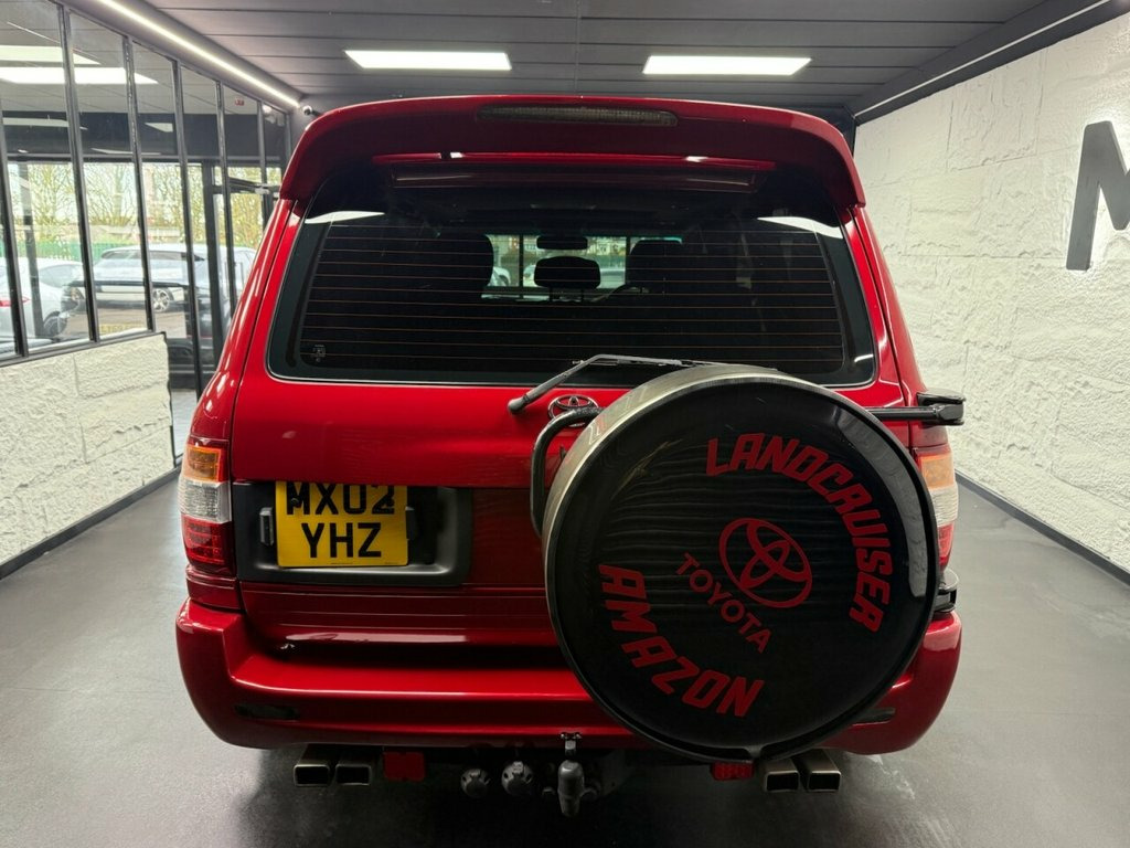 Here we have a Stunning Toyota Land Cruiser Amazon 4.2 V8 Automatic finished in Red. The car Has had Recent New leather interior which is in fantastic condition. The features of the car include Heated Seats, Reversing camera, Apple car play, Android System, Google maps, electric seats, Spare Wheel, Privacy Glass, wind deflectors, Upgraded alloy wheels, Sunroof, Air conditioning, Side Steps, Roof rails, Spare Wheel, Mudflaps, Spoiler. With over 25 years of main dealership experience we specialise in, used car sourcing, used vehicle finance and high standards of vehicle preparation as well as high standards of customer service. We are confident you have come to the right place for your next car. All of our cars are HPI Clear and go though a thorough pre sale check and are serviced if required. Part exchange welcome Every car also comes with a minimum of 6 Months MOT. Here at Motorzone north west we offer a very personal retail experience taking in to account every aspect of your buying journey giving you the guidance and facts to make the right decisions for your new car. We look forward to meeting you, why not give us a call to book your appointment today. Adjustable Steering Column/Wheel, Air Bag Driver, Air Bag Passenger, Air-Conditioning, Alarm, Alloy Wheels (16in), Anti-Lock Brakes, Central Door Locking, Centre Rear Seat Belt, Climate Control, Cruise Control, Electric Windows (Front/Rear), Front Fog Lights, Head Restraints, Immobiliser, In Car Entertainment (Radio/Cassette/CD , Mirrors External, Power Socket, Power-Assisted Steering, Roof Rails, Seat Height Adjustment, Seat Lumbar Support, Seats Electric (Driver), Seats Heated (Driver), Side Protection Mouldings, Sunroof Electric