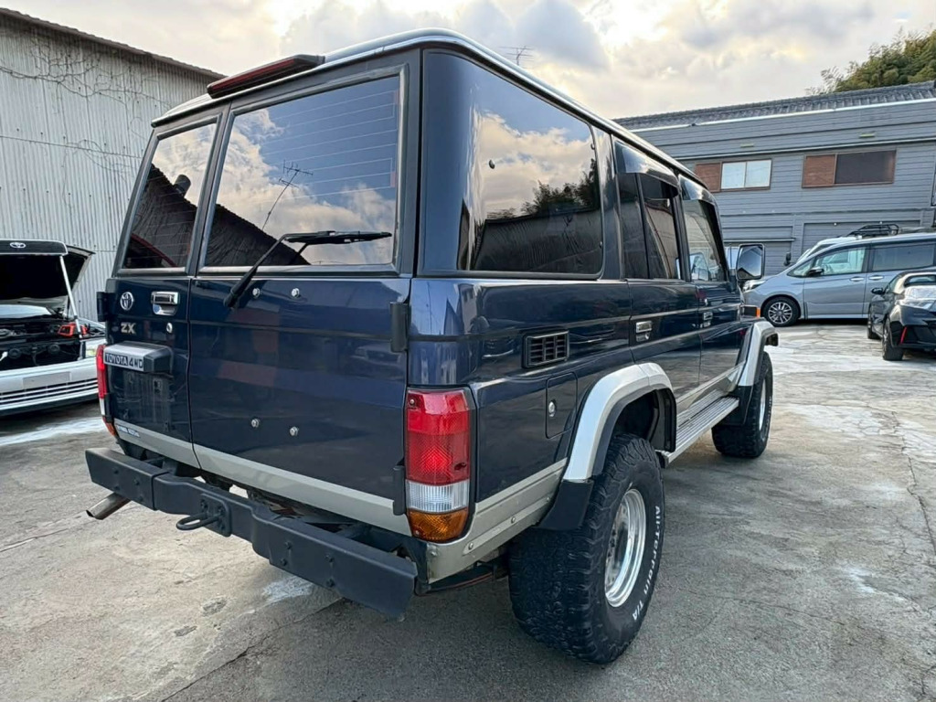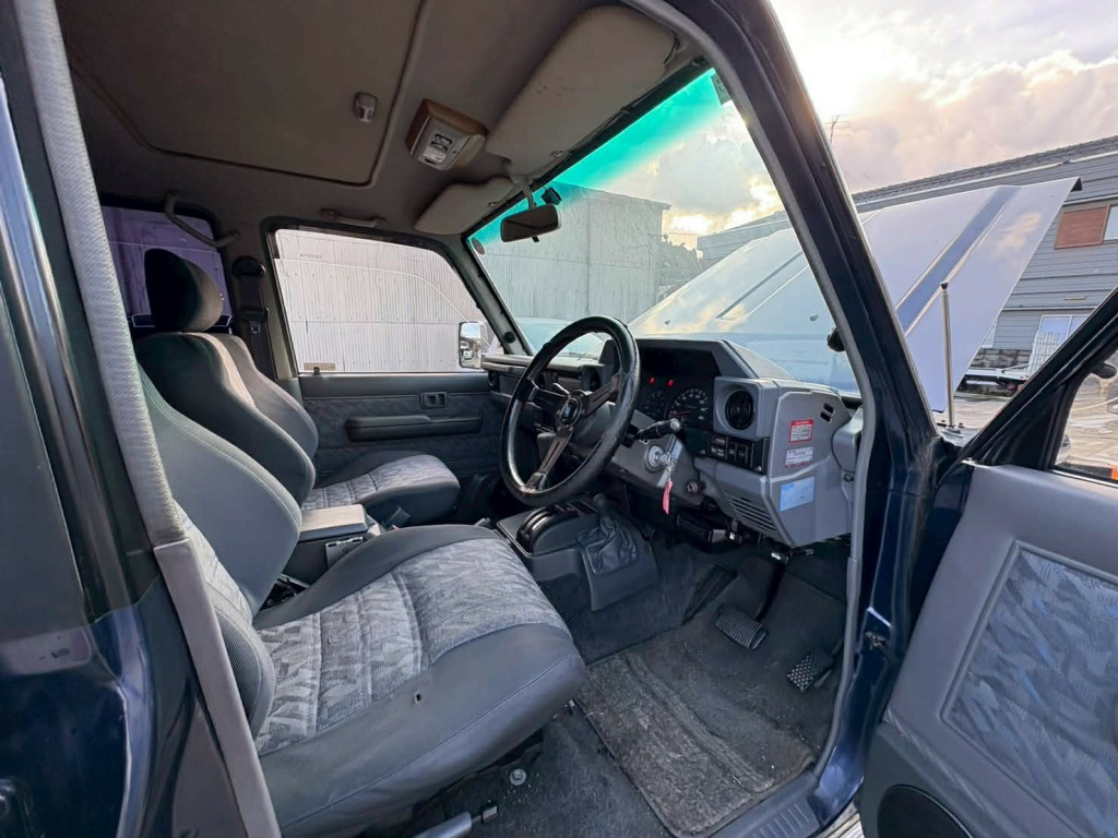 On route from Japan, due to land approx March 2026, Secure now with a 10% deposit!, , Feb 1996 Toyota Landcruiser 70 Series HJZ77HV ZX 4WD , , The one to have! 70 series 4.2L diesel powerhouse, , Auction grade 3.5, Genuine 294,000 kms (182,000 miles) nothing for one of these , 5 door model with wide nose front , Factory two tone Navy blue over gold, 1HZ 4.2L diesel with auto gearbox, Factory sunroof, Aftermarket wheels , Nardi steering wheel, Full stock interior retained, Solid and rust-free underside , , A true appreciating classic, , You wont find them like this in the UK! One for the Landcruiser enthusiasts , , On arrival from Japan vehicle will undergo full sales preparation including the following:, , - Full mechanical and overall inspection, - Full service completed (if required), - Full interior and exterior detail/valet, - Rear foglight installation and 12 months MOT, - Full UK registration, , On completion of prep over 60 detailed pictures and walk around video will be provided, , Price includes all of the above, alternatively can be sold unregistered at a reduced price (relevant paperwork for registration will be included and all Nova/duties etc will be paid for). , Delivery service available throughout the UK, please provide us your postcode for an instant quote (full payment required beforehand).