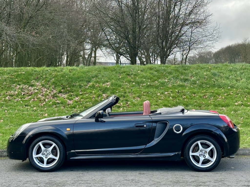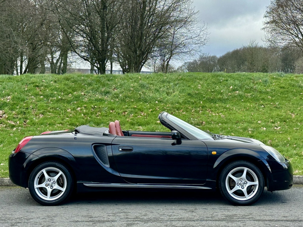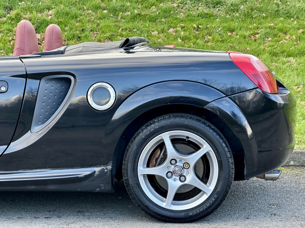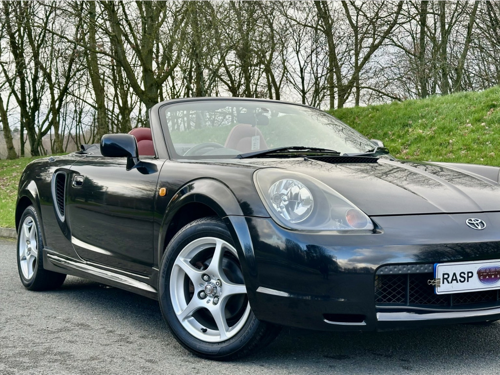 For sale is a lovely example of a 2002 Toyota MR2 1.8 VVTi Roadster, finished in Metallic Black with Red Leather Interior, , Covered a genuine low mileage of only 61,000 miles, Comes with Full Service History, Maintained regardless of cost. , MOT expires June 2026, , Great specification, Full Electric Pack, PAS, ABS, Air Conditioning, 3 Spoke Steering, Manual Gearbox. Fitted with TTE Side Skirts. , Overall a nice example of a well cared for Roadster Toyota MR2. Ideal weekend / Summer Toy. Was dry stored from 2012 - 2025 so therefore the condition is great, No rust or corrosion issues to report. , ULEZ COMPLIANT , , Viewing By Appointment