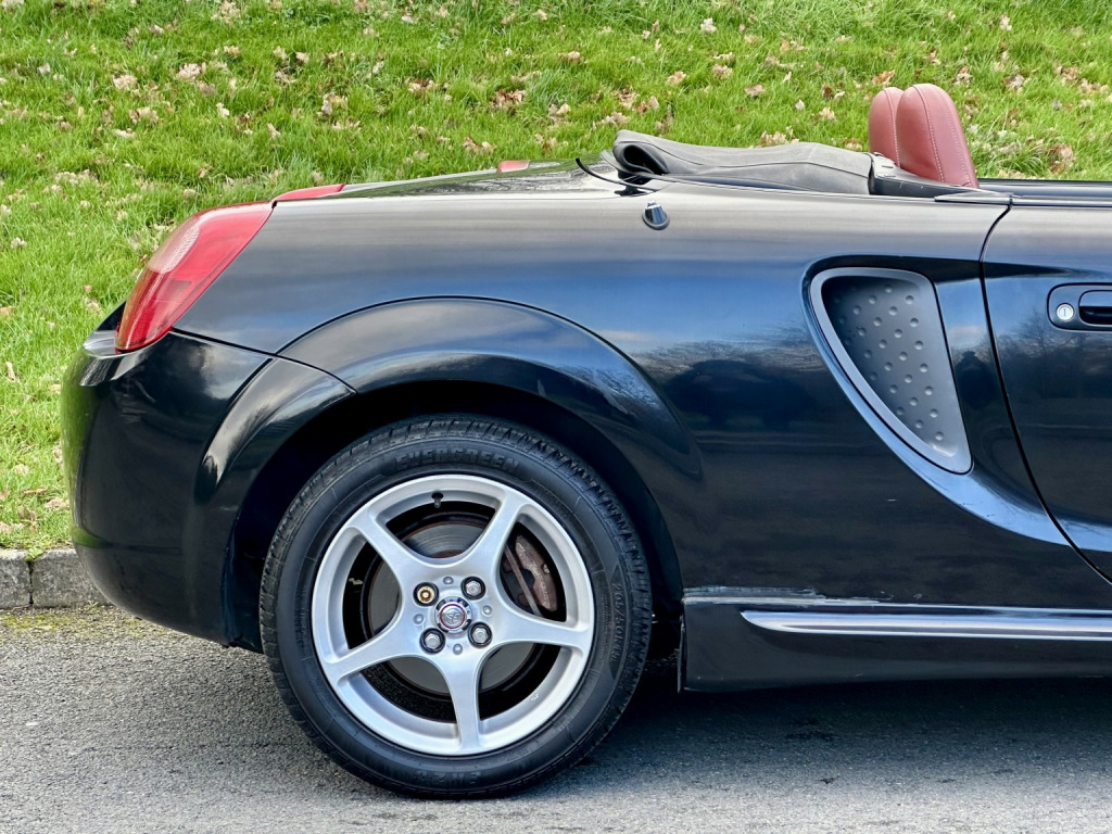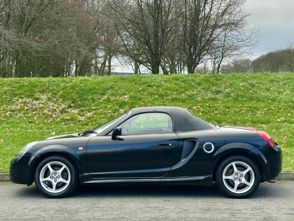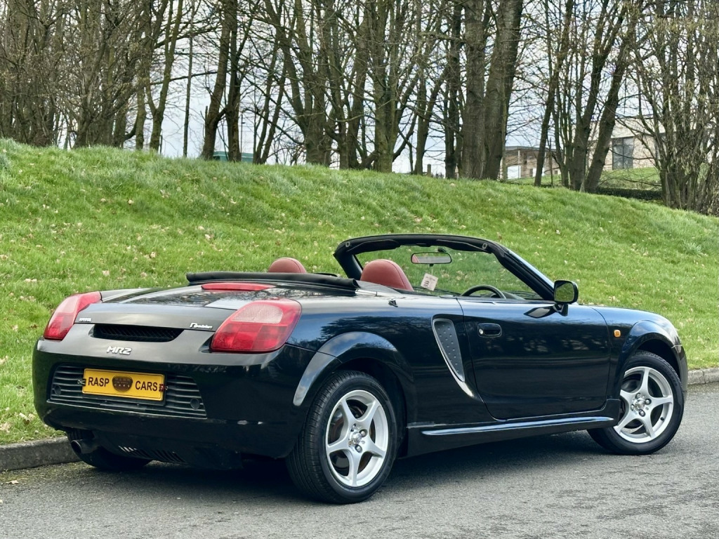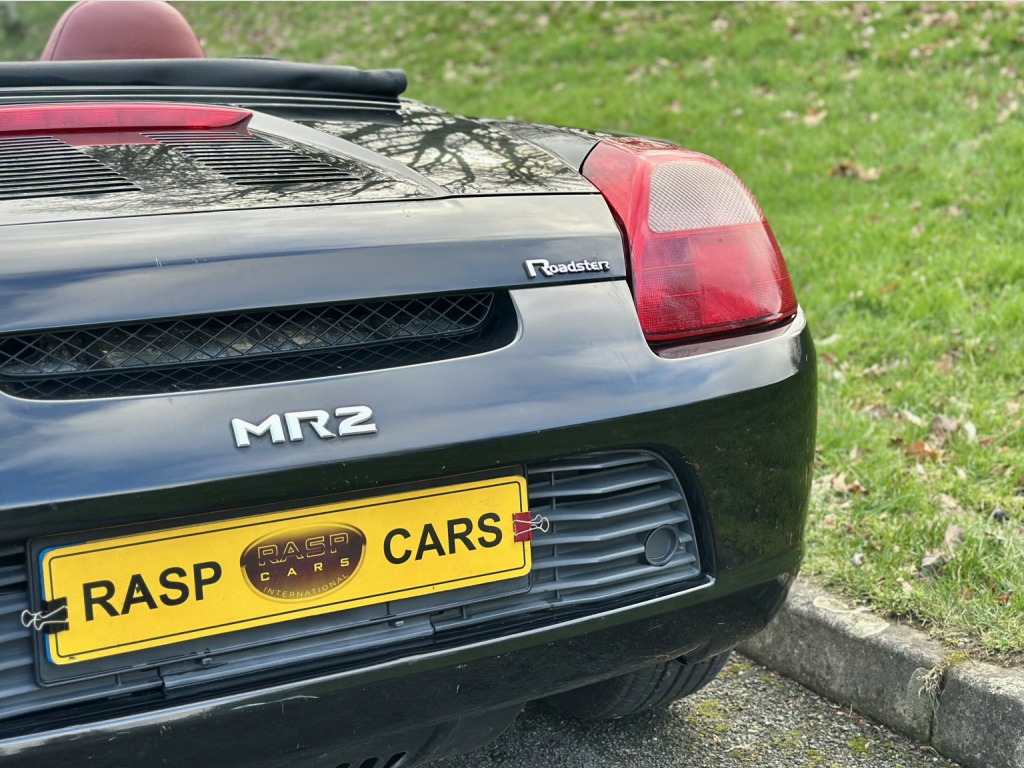 For sale is a lovely example of a 2002 Toyota MR2 1.8 VVTi Roadster, finished in Metallic Black with Red Leather Interior, , Covered a genuine low mileage of only 61,000 miles, Comes with Full Service History, Maintained regardless of cost. , MOT expires June 2026, , Great specification, Full Electric Pack, PAS, ABS, Air Conditioning, 3 Spoke Steering, Manual Gearbox. Fitted with TTE Side Skirts. , Overall a nice example of a well cared for Roadster Toyota MR2. Ideal weekend / Summer Toy. Was dry stored from 2012 - 2025 so therefore the condition is great, No rust or corrosion issues to report. , ULEZ COMPLIANT , , Viewing By Appointment