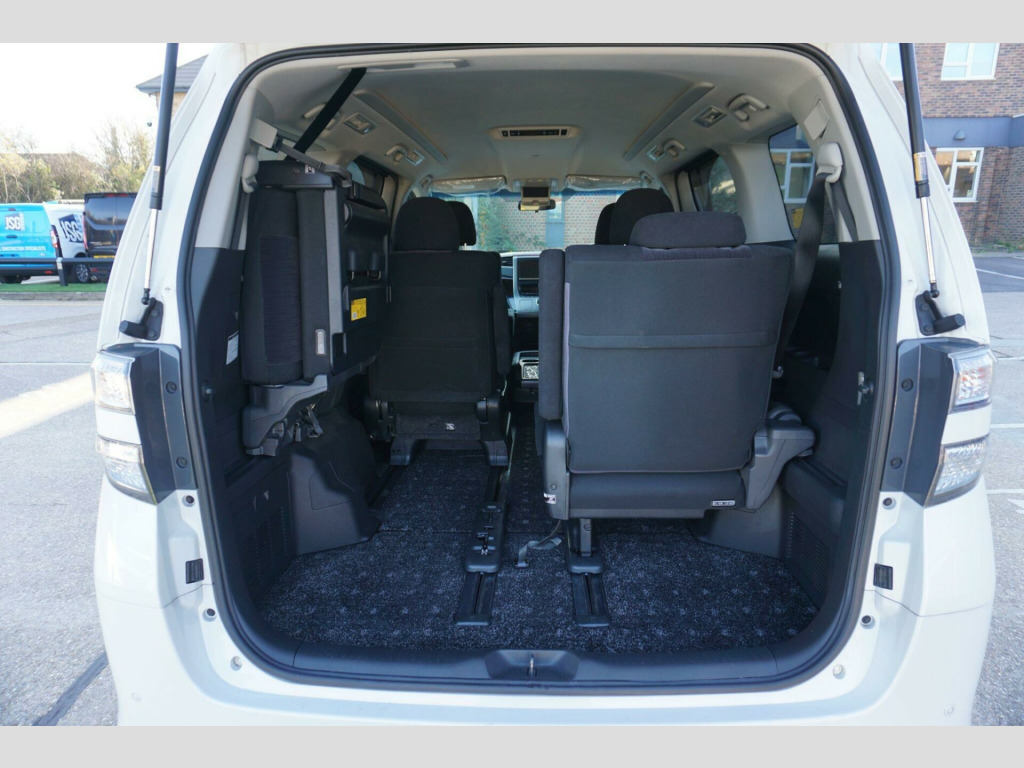A beautiful pearl-white Toyota Vellfire 2.4 is now in our UK stock. The V5C logbook is present, and the registration is HX12 TKJ. We accept all major credit cards, and finance options are available. The annual road tax is £360.The Toyota Vellfire is one of the most popular compact MPVs in Japan and the Far East. This vehicle was first registered in Japan on 01/06/2012 and currently shows 64497 miles (103,799 km). It is a genuine Z-Spec model, featuring VSA, ECO mode, front and rear parking sensors, power sliding doors(left only), a Nanoe air purification system, and a driver's knee airbag as standard.The car is in excellent condition both inside and out, making it ideal for a camper conversion or as a spacious family vehicle. Powered by the reliable Toyota 2.4 2AZ engine, it provides ample power for daily driving and comfortable long-distance motorway trips with seven occupants. I recently took it on a 50-mile round trip and can attest to its superb driving experience.We highly recommend viewing and test-driving this Vellfire if you are considering a Vauxhall Zafira, Nissan Serena, Elgrand, Alphard, or similar MPV. The versatile third-row seat can be lifted and hooked to the side, creating a large boot space. Adjustable interior LED lighting and exceptionally comfortable seats ensure passengers travel in a business-class-like environment.We also offer optional upgrades, including fitting a 10-inch touchscreen English stereo with Apple CarPlay and Android Auto. Delivery can be arranged to your location.Before handover, our partner garage will complete a full underbody wax seal, a fresh MOT, and a comprehensive health inspection. The car comes with a 3-month warranty, which can be extended for a small additional cost.For any further questions, to arrange a viewing, or to discuss finance, please email or call the number above. I will answer all inquiries honestly and to the best of my knowledge. The vehicle can be viewed at our Fareham office. 3 point rear seat belts, air conditioning, airbags, alloy wheels, central locking, child locks & isofix system, electric door mirrors, electric windows, folding rear seats, height adjustable drivers seat, immobiliser, parking aid, power steering, radio, remote central locking, traction control