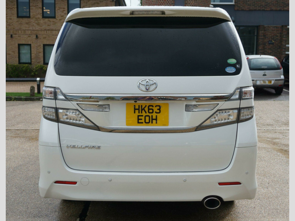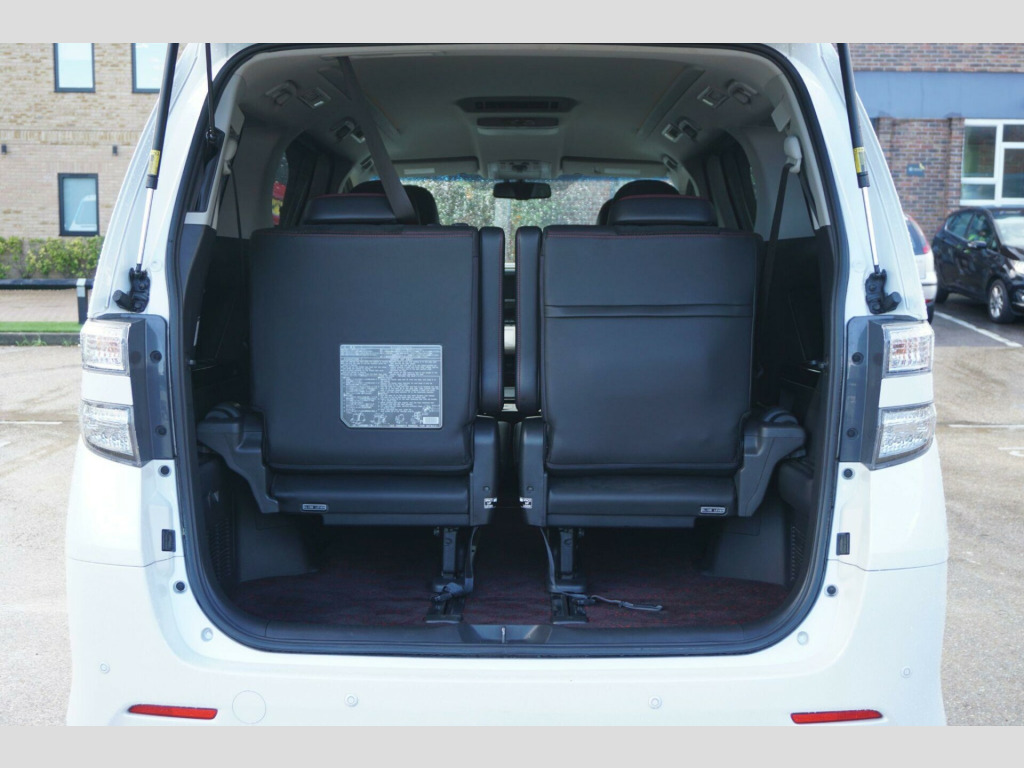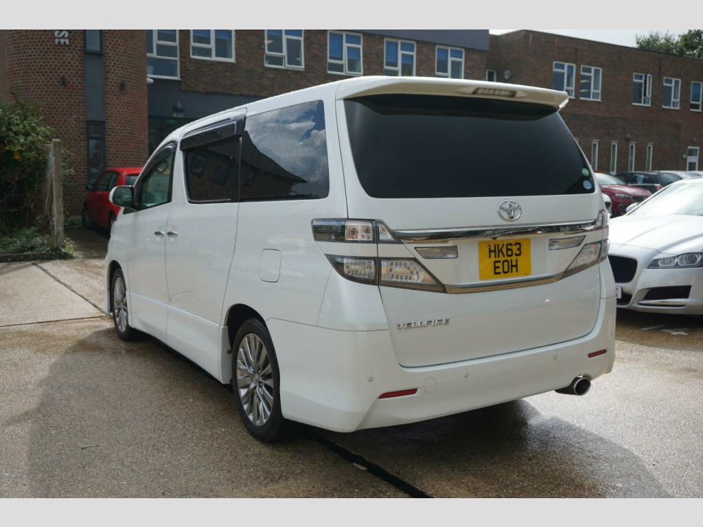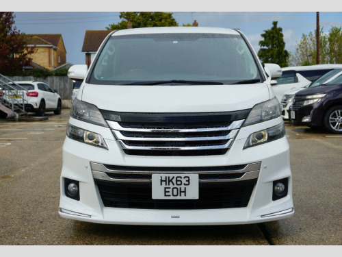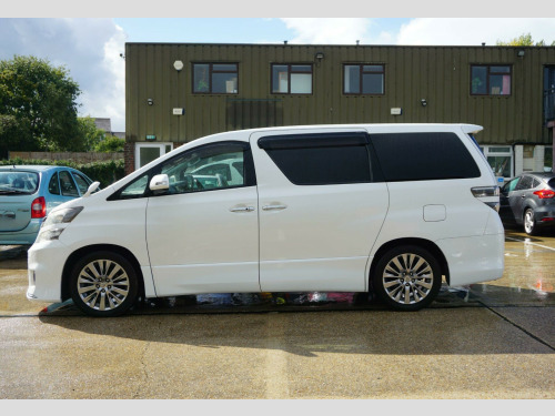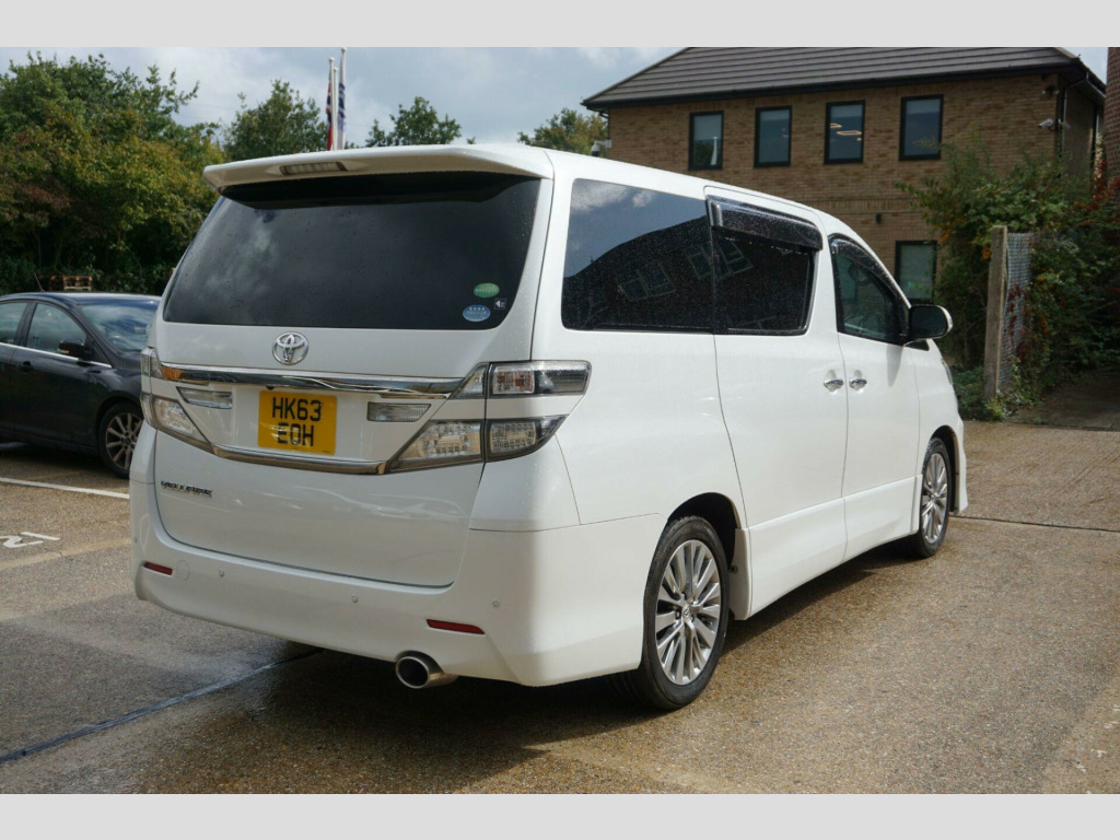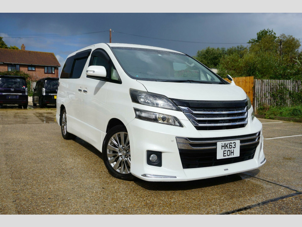 A beautiful pearl white Toyota Vellfire 2.4 Golden Eyes HK63EOH is currently available. We accept all major credit cards, and financing is available; the rate is from 5.6% (final rate subject to personal credit score). Road Tax £360/Year. Toyota Vellfire is one of the most popular full size MPVs in Japan and Far East countries. The car was first registered in March 2013, in Japan and currently has 61,252 miles (98,400 km) on the clock. Genuine Golden Eys version, cruise control, parking sensors, leather seats, folding mirrors, VSA, ECO mode, front/rear parking sensors, both side power sliding doors, power tailgate(remote on the fob), ECO mode, and driver's knee airbag as standard. It is in great condition inside and outside, so it will be suitable for a camper conversion or family use. The Toyota 2.4 2AZ engine produces enough power for its daily driving and long motorway trips with 7 people, including the driver. I drove a 50-mile round trip on it recently, which was a great driving experience. We highly recommend viewing and test driving it if you consider purchasing a Vauxhall Zafira, Nissan Serena, Elgrand, Alphard, or other similar vehicle. The 3rd-row seat can be lifted and hooked to create a large boot space. Adjustable interior LED lights and comfortable seats make the passengers travel like in a business-class cabin.We also offer to fit a 10-inch touchscreen upgrade English stereo (option) that comes with Apple CarPlay and Android Auto. Delivery can also be arranged. We have asked our partner garage to complete a clear wax underneath sealing, a fresh MOT, and a health inspection before we hand it over to the new owner. The car also comes with a 3-month warranty, which is extendable at a small extra cost. Please email me or ring the number above if you have any further questions, and I will answer all inquiries to the best of my knowledge and honesty. The vehicle can be viewed from our Fareham office. 3 point rear seat belts, air conditioning, airbags, alarm, alloy wheels, cd player, central locking, child locks & isofix system, cruise control, electric door mirrors, electric windows, folding rear seats, height adjustable drivers seat, immobiliser, parking aid, power steering, radio, remote central locking, traction control