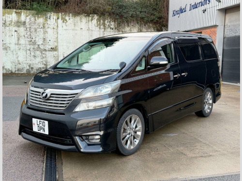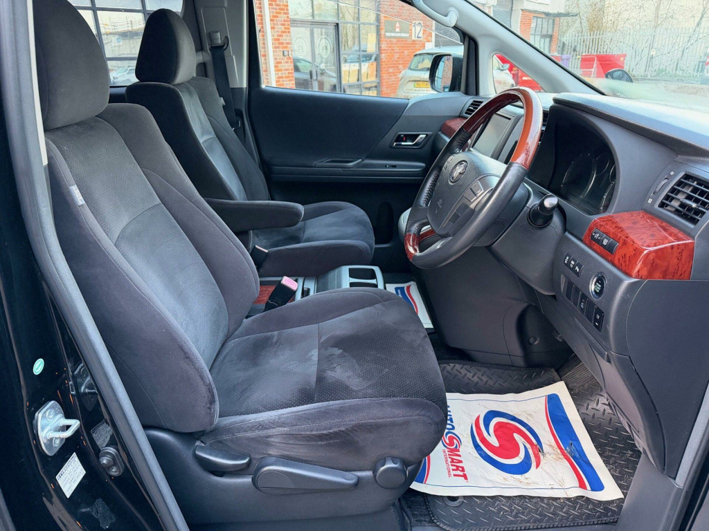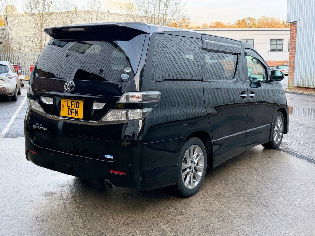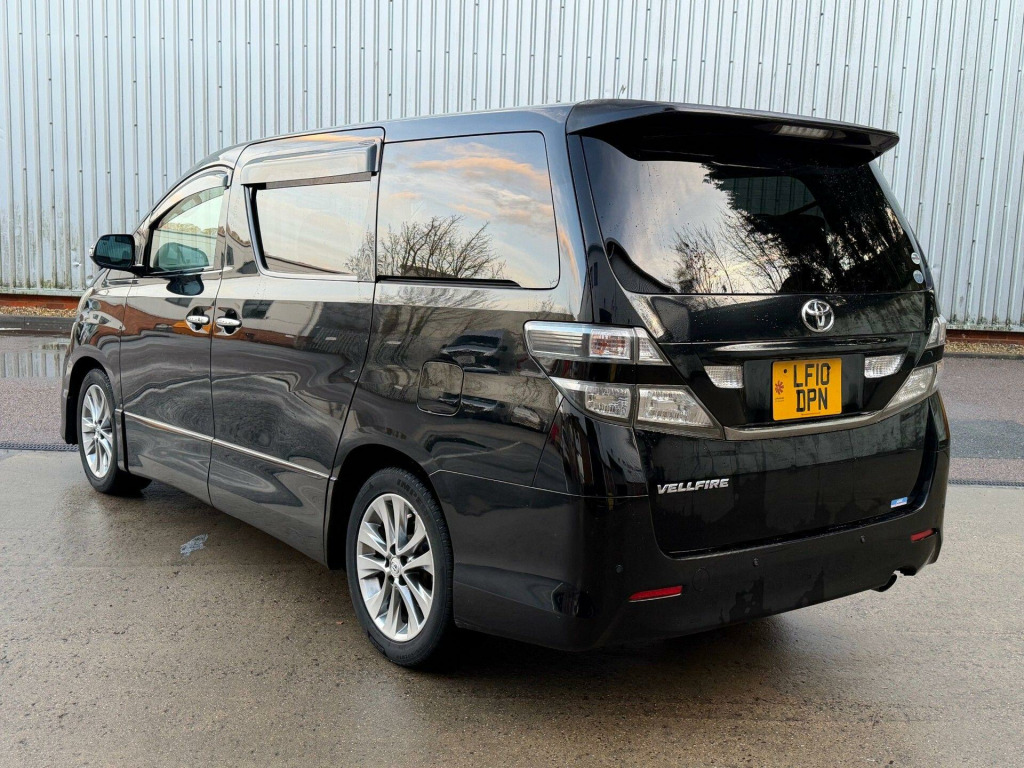 Great Value: Imported In Jan 2022 by Jap MPV Specialist Company: ULEZ Compliant, Comprehensive Warranty Cover Incl. Nationwide Delivery Options Available, Incl. Home & Office Delivery, Warranted Mileage. We Are Proud To Present A Great Example of this Stunning Toyota Vellfire 2.4 Petrol Automatic 5dr 7 Seat Model. One Owner Since Imported In 2022. Originally Registered August 2010/10 Finished In Black Metallic With Grey Seats. Comes With Service History, Original Import Documents, 2 Key Fobs, Original Leather Folder, Owners Manual & Service Book, MOT Exp: 20/12/2026. Great Spec: Aero Pack, Incl. Aerodynamics, 18'' Multi Spoke Alloy Wheels, Smart Keyless Entry & Start, Illuminated Entry, Electric Sliding Doors, Electric Close Rear Tailgate, Electric Heated Power-Folding Side Mirros, Toyota Navigation with 8 Speaker Audio and DVD, Multifunctional Leather/Wood Steering Wheel, Front & Rear Parking Sensors With Colour Rear Camera, Day Time Running Lights, Grey Suede Seats With Walnut Trim, Electric Lumbar Support, Front & Rear Arm Rest, Front & Rear Cup Holders, Rear Sliding CaptainSeats, Quad Zone Automatic Air Conditioning, Colour Sat-Nav, Radio/DVD/CD/Aux.. r conditioning, airbags, 3x3 point rear seat belts, traction control, satellite navigation, remote central locking, power steering, parking aid, lumbar support, height adjustable drivers seat, immobiliser, folding rear seats, electric windows, electric door mirrors, central locking, cd player, alloy wheels, alarm, radio