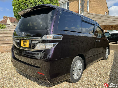 We are BIMTA Members - All mileages are certified and genuine. You are covered by BIMTA Mileage Buy Back Guarantee. , 2012 Toyota Vellfire 2.4Z G Edition. With twin sun roofs, and L package. powered by the 2.4 engine and auto gearbox. It has covered just 36,000 miles from new. Seating as 4 captains chairs and 3 seater row. All of which can move and fold to accommodate various layouts. Finished in rare Purple metallic with Black leather upholstery and dark wood trim. A lovely low mileage example in a stunning colour with high specification. , Very high specification includes, Auto lights, multi functional Leather and wood steering wheel, Power slide rear doors, power rear door, electric windows, electric mirrors, cruise control, reversing camera etc. twin sun roofs and much more. This car comes with a high end Japanese audio unit which features cameras around the car and bluetooth connectivity. , Presentation. All our cars are grade 4 and above (This one is a 4.5) which means they are already in beautiful condition. As part of our planned prep work, the paintwork has been treated to a professional two stage machine polish and any marks or scratches have been corrected. The interior has been professionally valeted and detailed and presented in as new a condition as you could expect. , Services, We always get our cars mechanically checked and where necessary, serviced. All our cars have the mileage independently checked and verified by BIMTA. Just had a service, MOT and new tyres. , Documents, Full book pack with instruction manuals, 2 Keys, Full seat of original carpet mats, UK V5, All MOT advisories corrected. , , What you can expect from us. Conversion from KM to Miles, Full UK registration and V5. Service and mechanical preparation where necessary. Full Valeting and detailing. 3 months warranty (extension options), , Timeline. Now fully prepared and ready to go. , As with all of our cars a small deposit will secure. Please call or email.