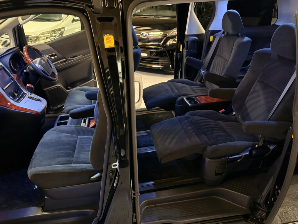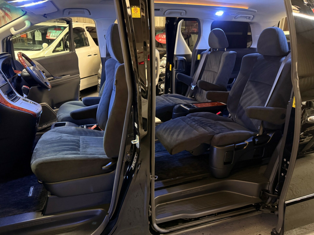 2010 Toyota Vellfire 2.4Z platinum Selection, Grade 4.5 2010-60-Reg, Finished in Stunning Unmarked Black paintwork, Twin Electric Soft Closing Sliding Doors, Electric Soft Closing Tailgate, Front spots Full Privacy Glass, Rear Spoiler with built in brake light, Stunning set of 20'' Maverick Alloys, The best set of rear l.e.d Clear lights, Rear bumper l.e.d lights, Key-less Entry, Key-less start, 7 Seater 7 Unblemished Black Alcantara Seats, The centre seats are Lounge style seats with extra leg rests, The seats also slide forwards and backwards and side to side with a folding centre table with built in cup holders, easy access to the rear seats, The rear seats fold away to give way to a large boot, Strip L.E.D lighting, Ambient lighting, Push button Start, Front and Rear parking sensors, Traction Control, Front and Rear Electric windows, Colour reversing camera, UK Stereo with Apple CarPlay, Electric Tailgate, Isofix points, Only covered a Genuine 20,000 Miles With All the Genuine paperwork from Japan including the auction sheet and The Export Certificate which both prove the mileage and condition before it left Japan Nationwide delivery service available Car VX checked r conditioning, bluetooth connection, climate control, colour satnav, door mirrors electrically foldable, dual climate zones, satellite navigation, usb/ipod interface, xenon headlamps, front parking sensor, multi-function steering wheel, parking camera, parking sensors, power steering, rear parking sensor, traction control, abs, air bag, child locks, curtain airbags, isofix child seat anchor points, passenger airbag, rear airbags, twin air bags, alarm, anti-theft system, central locking, keyless entry, locking wheel nuts, privacy glass, remote central locking, electric front windows, electric mirrors, electric sliding doors, electric tailgate, electric windows, rear electric windows, 3rd party sound system, radio, steering wheel audio controls, stereo, front armrest, front head restraints, height adjustable drivers seat, 7 seater, folding rear seats, rear armrest, rear headrests, 2 zone climate control, 3 zone climate control, push button start, alloy wheels, auto lighting, body coloured bumpers, front fog lights, led foglights, led headlights, led indicator lights, led rear lights, rear spoiler, rear wash/wipe, space saver spare wheel