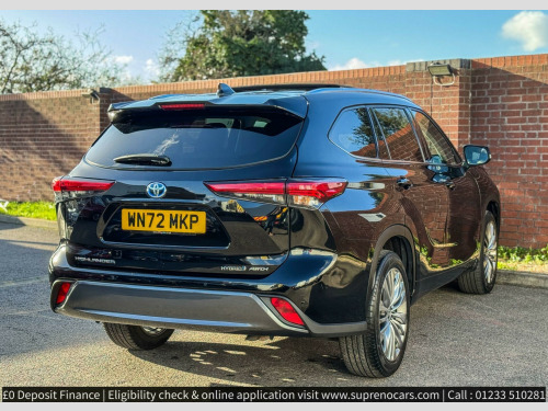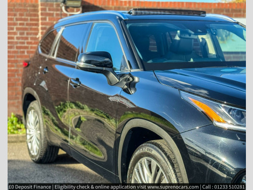 This vehicle has passed a 128 Point AA inspection, to view the report, please visit our website or AACars & HPI Checked| 10 TOYOTA Warranty & 12 Months AA breakdown cover, This amazing example is a 4 Wheel Drive, Hybrid, 7 Seater SUV - Comes with Full Main Dealer Service History - Toyota Warranty is Valid until 2032 or 100k Miles whichever comes first - Last Service at 13k miles in March 25 - 2 Keys - 2 Owners from New - Eleven JBL speakers Premium Sound System - Adaptive cruise control - Ambient lighting - Panoramic Sliding Roof - Heated Seats & Steering Wheel - Lane Departure Warning Sys - Sat Nav - Anti-theft protection - Apple CarPlay & Android Auto - Brake assist system - Reverse Camera - Wireless Phone Charger - Adaptive Xenon Lights - Traffic Sign Recog Sys - Electic Boot - 2000Kg Towing Capacity - and much more features, full spec list available, 14 Days Money Back Guarantee (T& C's apply)| Reserve or buy Online now | Express Home Delivery Available 7 Days a week, Drive away today with our complementary 5 Days driveaway comprehensive insurance (T& C's apply),For finance applications or eligibility check please visit www.suprenocars.com, save money & time with our state of the art online system and benefit from our low finance rates from 5.4% Flat rate and 9.9% APR Rep, instant decision and you could drive away the same day. Worried about poor credit score? Not a problem, we can help (Acceptance is subject to status (T& C's apply),Part Exchange Welcome | We can buy your car and settle your existing finance | All major Debit cards are accepted,Please satisfy yourself that a vehicle has a specific feature that is important to you before purchasing | Please note that a £75 admin fee will apply, www.suprenocars.com or call on 07305152076 or 01233 510281 - We are based in Ashford, Surrey TW15 1RZ. 12V Power Socket - Front x 2, 20in Alloy Wheels - 5-Triple Spoke, 2nd Row Rear Passenger Room LED Light, 2nd Row Rear Passenger Window Manual Sunshades, 3rd Row 2-Seat Rear Bench, 3rd Row Rear Passenger Room LED Light, 60-40 Split-Folding - 2nd Row - Rear Seats, 60-40 Split-Folding - 3rd Row - Rear Seats, 7in Multi-Information Screen, 8in Multimedia Screen, ABS - Anti Lock Braking System, Active Traction Control - A-TRC, Adaptive Cruise Control Switch on Steering Wheel, Adaptive High Beam, Adjustable Rear Headrests, Adjustable Speed Limiter -ASL- Switch on Steering Wheel, Anti-Jam Protection on Power Windows, Anti-Tamper Alarm, Assist Grips - Front, Assist Grips - Rear, Audio Switches on Steering Wheel, Auto Up and Down Function on Power Windows, Auto Wipers, Auto-Folding and Heated Door Mirrors with Puddle Lights, Automatic High Beam On-Off Switch, Aux-In Connector, BA - Brake Assist, Black-Painted Upper Front Grille, Blind Spot Monitor - BSM, Bluetooth Connectivity, Body Coloured Door Handles, Body Coloured Door Mirrors, Body Coloured Roof, Boot Underfloor Storage, Central Armrest, Child Safety Locks on Rear Doors, Chrome Door Belt Moulding, Chrome Insert on Front Cup Holders, Chrome Insert on Upper Front Grille, Chrome Surround on Upper Front Grille, Clean Air Filter, Digital Audio Broadcast - DAB, Door Courtesy Light, Driver and Front Passenger Personal LED Lights, Driver and Front Passenger Whiplash Injury Lessening - WIL - Seats, Dynamic Guide Lines on Reversing Camera, Electric Power Steering - EPS, Electrochromatic Auto-Dimming Rear View Mirror, Emergency Brake-Light Signal - EBS - Hazard Type, Fitting Correspondence, Fixed Window on Rear Tailgate, Front Footwell Lights, Front LED Light Guide, Front Power Windows, Front Seat Belt Reminder, Front Wiper De-Icer, Glossy Black Front Pillar, Grey Roof Lining, Grey Stitching on Steering Wheel, Grille - Lower Front Grille Shape, HAC - Hill Start Assist Control, HIGHLANDER Door Scuff Plates, Headlight Cleaners, Headlight Design - Clear Headlights, Heated Driver and Front Passenger Seat, Heated Washer Nozzle on Windscreen, ISOFIX Child Restraint System, Immobiliser, Indicators Integrated on Door Mirrors, Intelligent Adaptive Cruise Control, Intelligent Front and Rear Parking Sensors with Clearance Sonar and Automatic Braking, Intermittent Windscreen Wipers, JBL Premium Sound System, Key Reminder Warning, LED Boot Light, LED Centre Room Light, LED Daytime Running Lights, LED Dual-Beam Projector Headlights, LED Front Fog Lights, LED High-Mounted Stop Light, LED Rear Brake Lights, LED Rear Combination Lights, Lane Departure Alert with Steering Control, Lane Trace Assist, Leather - Like Front Door Armrests and Door Trim, Leather Gear Shift, Light Blue Ambient Lighting on Dashboard, Light Blue Ambient Lighting on Open Tray, Light on Driver Sun Visor, Light on Passenger Sun Visor, Manual Headlight Levelling, Manual Tilt Steering Wheel, Manually Adjustable Lumbar Support on Front Passenger Seat, Mic with Array Mic, Mirror on Driver Sun Visor, Mirror on Passenger Sun Visor, Multimedia Switches on Steering Wheel, MyT Connected Services, Noise Reduction Layer on Front Windows, Noise Reduction Layer on Windscreen, Paddle Shift, Passenger Airbag On-Off Switch, Power Adjustable Lumbar Support on Driver Seat, Power Boot, Power Door Locks, Power Height Adjustable Driver Seat, Power Reclining Driver Seat, Power Reclining Front Passenger Seat, Power Sliding Driver Seat, Power Sliding Front Passenger Seat, Pre-Collision Warning System with Pedestrian and Cyclist Detection, Pre-Tensioners and Force Limiters, Push Button Start, Rear Cross Traffic Alert - RCTA, Rear Cup Holders, Rear Door Armrest, Rear Headrests x5, Rear Passenger Air Conditioning, Rear Passenger Air Conditioning Control Panel, Rear Passenger Air Vents, Rear Passenger Footwell Heating, Rear Passenger Personal Lights, Rear Passenger USB Connector x2, Rear Power Windows, Rear Seat Belt Reminder, Rear Spoiler, Rear Spoiler - Body Colo. Full dealership history