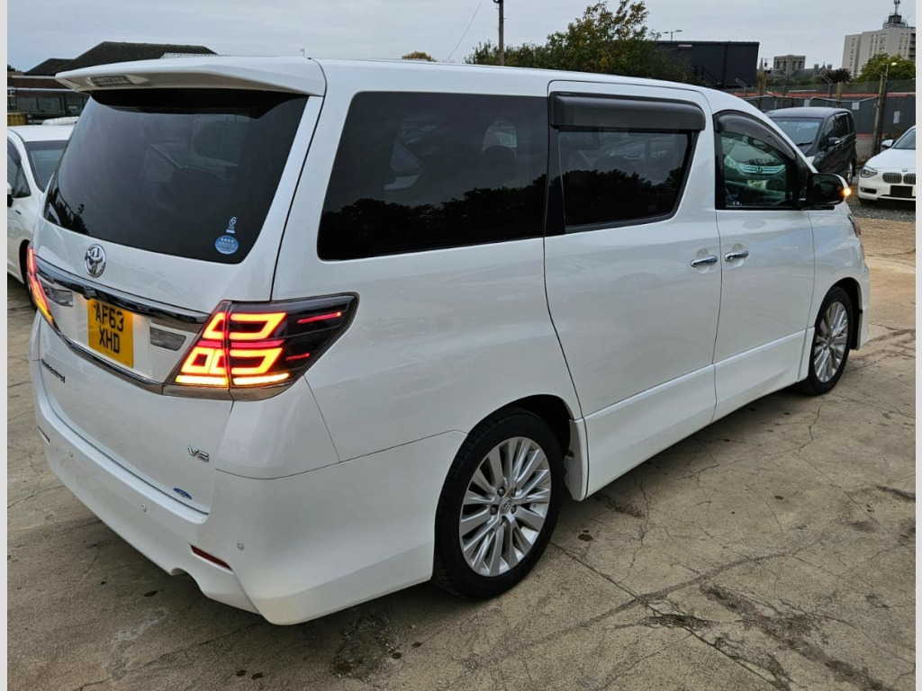 Carolina Motors UK is pleased to offer this beautifully upgraded Toyota Vellfire - V6 - G EDITION for sale. For Extra boost lovers...REG AF63XHDSpecial Warranty OfferThis car comes with 15Months Gold Warranty.(Engine, Gearbox, Electricals )FREE AA -12MONTHS BREAKDOWN COVERFREE £75 MOT VOUCHER Beautifully UPGRADED Toyota Vellfire G Edition 2013 with Dual Sunroof - Sporty Look and 18inch wheels. Fresh Import from Japan. 3.5L - V6 engine with Eco mode, Fuel efficient engine. ULEZ & CAZ free. Half Leather Seats with Alcantra fabric, Memory Seats. 20inch Alloy Wheels. Brand New Tyres.OPTIONAL ACCESSORIES INSTALLED WORTH - GBP 11001. CAR RADIO UNITS REPLACED. FRONT - 12.1'' TESLA TYPE ANDROID SCREEN FITTED - CARPLAY/ANDROID AUTO.2. ROOF - 13.3'' ANDROID TOUCH SCREEN FITTED.BOTH SCREENS CAN BE PLAYED INDIVIDUALLY.3. DYNAMIC LED TAIL LIGHTS Optional Accessories can be installed1. Digital Speedometer with Vellfire Car software - £4002. Modern Steering Wheel - £350Original Mileage 35395 miles. Can be verified with auction sheet and Carvx report. Fresh MOT valid till SEP 2026. Low road tax for this vehicle category. Full Engine Service done.(Original Toyota Parts)Gearbox service done.Full Valeting/polishing done. Front Xenon lights.Front & Rear Fog lights.Blue LED lights in Sliding doors.Looks amazing at night.7 Seater with middle row Pilot seats and Recliners.Perfect Tyres2 KEYS PROVIDED(more can be added for £100 ) Additional Features. 18'' Alloy Wheels. Dual Zone Climate Control Air conditioning. Dual Electric Sliding Doors. Electric tail gate. Dome Lights. Tinted Windows, Push Start Stop Keyless drive and entry system. Rear View Camera. Wind deflectors. Foldable Electric Side Mirrors, All 4 Electric Windows. Front and Rear Parking Sensors, Rear both power sliding doors, Cruise Control, Front and Rear Climate Control, and many moreV5C is ready and car ready to go. Buyer will be the first owner to drive in UK.Car is in Peterborough PE1 area and can be seen any day. Feel free to contact anytime on 01733 639260 or whatsapp 07415 198226Please visit our website..www.carolinamotors.co.uk,