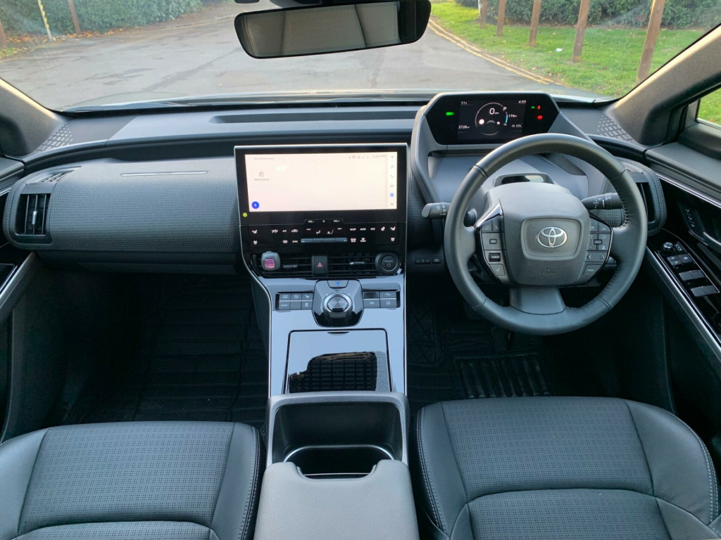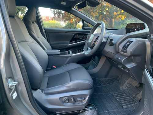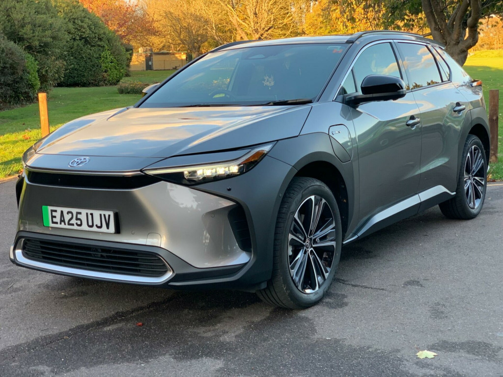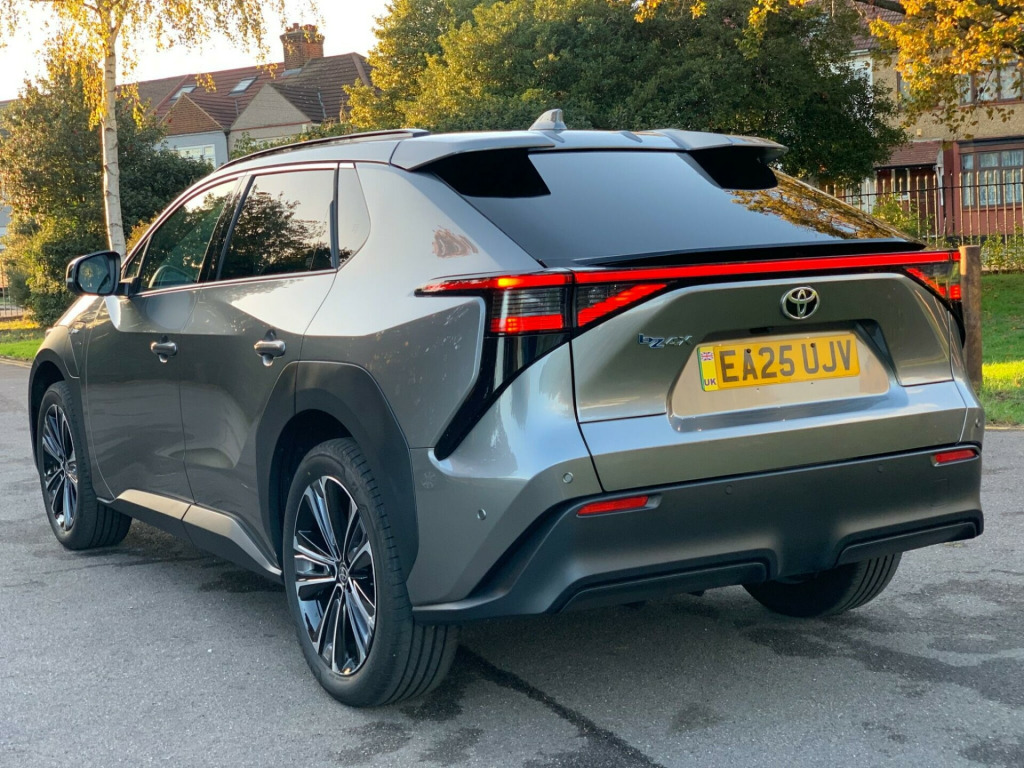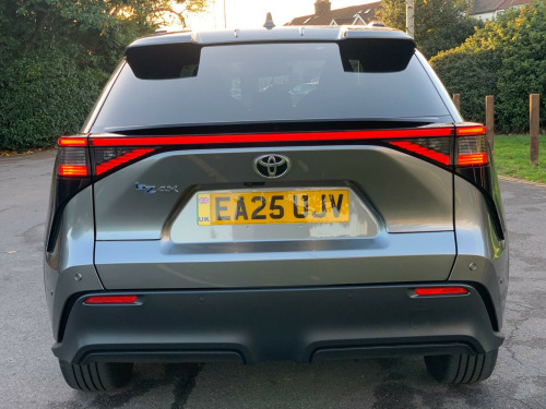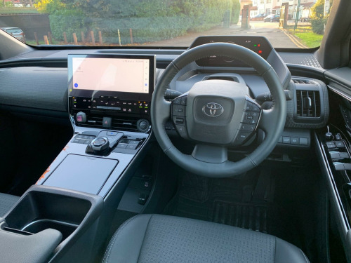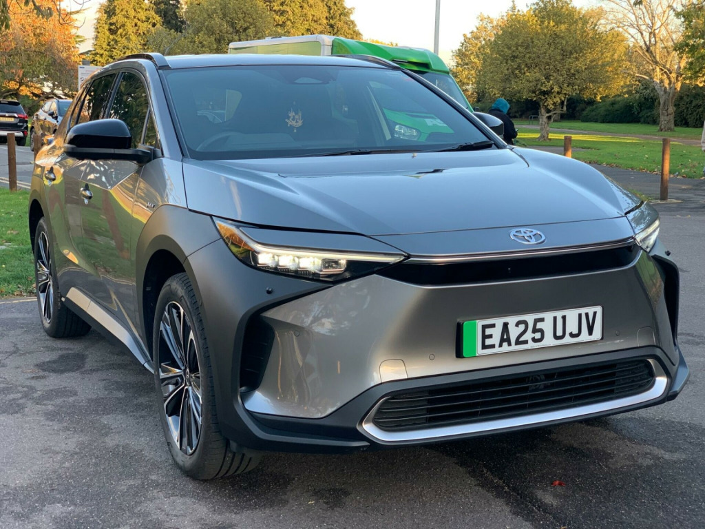 This 2025 Toyota bZ4X Vision is a superb example, having had only one owner since new. This electric vehicle boasts a 71 kWh battery, offering a maximum range of 278 miles on a full charge. For convenient home charging, a full recharge takes approximately 9 hours and 10 minutes using a 7kW charger. When you need to charge on the go, the fastest public charging time from empty to 80% is an impressive 34 minutes.The Vision trim level comes equipped with a host of desirable features designed to enhance your driving experience. Stay connected with Bluetooth connectivity and enjoy the convenience of a wireless mobile phone charger. For effortless journeys, adaptive cruise control is easily managed via the steering wheel. Parking is made simpler with front parking sensors that include automatic object braking, and the steering wheel is heated for added comfort during colder months. These features collectively demonstrate the thoughtful design and advanced technology integrated into this Toyota bZ4X., kw on-board charger, 12.3in hd toyota smart connect multimedia system with wireless smartphone integration - apple carplay and android auto - go navigation, 12v power outlet - front, 20in alloy wheels - 5 double spoke, 2nd row rear passenger room led light, 3-spoke leather steering wheel, 360 panoramic view monitor - pvm, 6 speakers, 60-40 split-folding - 2nd row - rear seats, 7in multi-information screen, abs - anti lock braking system, acceleration suppression at low speeds, adaptive cruise control switch on steering wheel, adaptive high beam, advanced parking assist, ambient lighting on interior door handles, armrest on front console box, assist grips - front, assist grips - rear, auto up and down function on power windows, auto wipers, automatic headlight levelling, automatic high beam, automatic rear flashing hazard lights, black centre console, black interior door handles, blind spot monitor - bsm, bluetooth connectivity, body coloured door handles, body-coloured shark fin antenna, boot door release with push button, charging cable set, child safety door locks, dac - downhill assist control, digital audio broadcast - dab, door mirrors - electric - heated and power adjustable, driver monitoring camera, driver and front passenger air-ventilated seats, driver and passenger central airbag, driver and passenger front airbag, driver and passenger side airbag, driver and passenger sun visors with mirror, dual-zone automatic air conditioning, electric windows - front and rear, electrochromatic auto-dimming rear view mirror, electronic parking brake with hold function, emergency driving stop system, emergency steering assist, energy saving heat pump, follow me home headlights, front parking sensors with automatic object braking, front seat belt reminder, front to front oncoming car and motorbike daytime detection, glass-breaking alarm sensors, grille - lower front grille shape, hac - hill start assist control, headlight cut-off reminder, heated driver and front passenger seat, illuminated entry system and footwell lights, immobiliser, intelligent adaptive cruise control, intersection cut-in traffic assist, intersection turn assist, intrusion sensor, kick-activated power back door, led centre room light, led daytime running lights, led headlights, led high-mounted stop light, led indicators, led rear brake lights, led rear combination lights, lane departure alert with steering control, lane trace assist, light on drivers and passenger sun visor, manual tilt steering wheel, manually height-adjustable front passenger seat, manually sliding front passenger seat, memory function on door mirrors, microphone on front personal light, multimedia switches on steering wheel, passenger airbag on-off switch, power adjustable lumbar support on driver seat, power door locks, power height adjustable driver seat, power sliding driver seat, power steering, power window switches with satin chrome inserts, pre-collision system with pedestrian - cyclist and motorbike detection, privacy glass, rear armrest, rear fog light, rear parking sensors with automatic pedestrian - car and object braking, rear passenger air vents, rear passenger side airbag, rear seat belt reminder, rear spoiler, rear usb connectors x2, remote boot door release on key, reversing camera, road sign assist, safe exit assist, satin chrome-plated lower front grille, seats - drivers memory function, smart voice assist, soft-touch rear door trim, speed limiter switch on steering wheel, speed limiter with road sign assist - rsa, steering wheel - heated, steering wheel - manual telescopic adjustment, telephone switches on steering wheel, tilt detection sensors, toyota safety sense with over-the-air updates, tyre pressure warning system, tyre repair kit, usb connector, uv-filter on drivers and front passenger windows, uv-filter on rear windows, voice recognition, washer fluid level warning, white ambient lighting in centre console, white ambient lighting in footwell, white ambient lighting on front doors, white ambient lighting on rear doors, wireless mobile phone charger