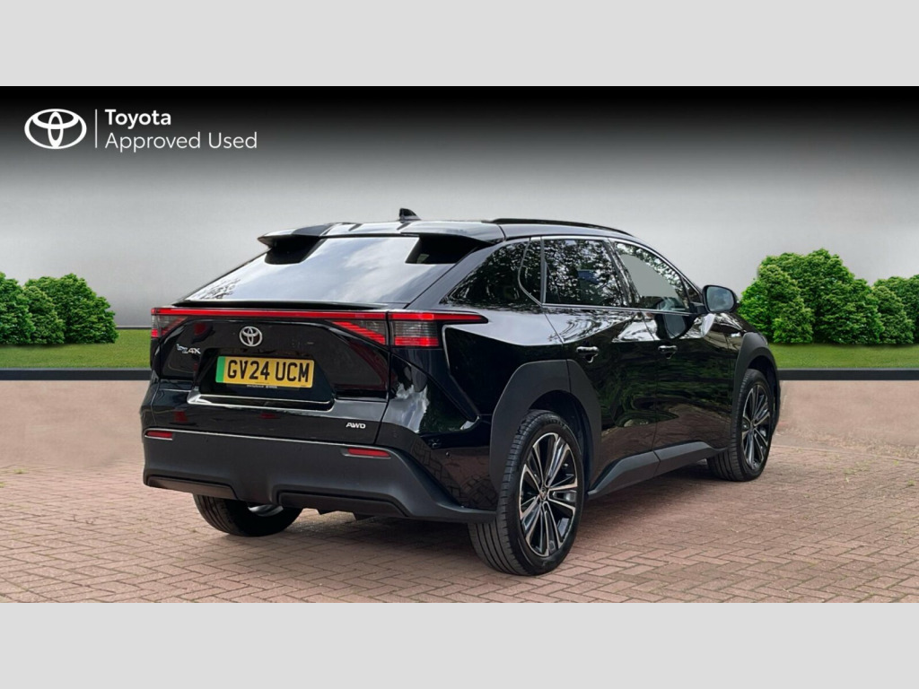 Experience enhanced driving pleasure with the Toyota Skyview Panoramic Roof, bathing the cabin in natural light, and immerse yourself in superior audio quality with the JBL Premium Sound System. These notable features, combined with the bZ4X's electric powertrain and advanced technology, position it as a compelling choice for those seeking an efficient and enjoyable driving experience. The Premiere Edition trim ensures you benefit from a comprehensive suite of desirable equipment, making this Toyota bZ4X a standout option. Synthetic Leather - Black, 12v Power Outlet - Front, 20in Alloy Wheels - 5 Double Spoke, 2nd Row Rear Passenger Room LED Light, 3-Spoke Leather Steering Wheel, 360 Panoramic View Monitor - PVM, 60-40 Split-Folding - 2nd Row - Rear Seats, 7in Multi-Information Screen, 7kW On-Board Charger, 9 Speakers, ABS - Anti Lock Braking System, Acceleration Suppression at Low Speeds, Adaptive Cruise Control Switch on Steering Wheel, Adaptive High Beam, Ambient Lighting on Interior Door Handles, Armrest on Front Console Box, Assist Grips - Front, Assist Grips - Rear, Auto Up and Down Function on Power Windows, Auto Wipers, Automatic Headlight Levelling, Automatic High Beam, Automatic Rear Flashing Hazard Lights, Black Centre Console, Black Interior Door Handles, Blind Spot Monitor - BSM, Bluetooth Connectivity, Body Coloured Door Handles, Body-Coloured Shark Fin Antenna, Boot Door Release with Push Button, Child Safety Door Locks, DAC - Downhill Assist Control, Digital Audio Broadcast - DAB, Door Mirrors - Electric - Heated and Power Adjustable, Driver Monitoring Camera, Driver and Front Passenger Air-Ventilated Seats, Driver and Passenger Central Airbag, Driver and Passenger Front Airbag, Driver and Passenger Side Airbag, Driver and Passenger Sun Visors with Mirror, Dual-Zone Automatic Air Conditioning, Electric Windows - Front and Rear, Electrochromatic Auto-Dimming Rear View Mirror, Electronic Parking Brake with Hold Function, Emergency Driving Stop System, Emergency Steering Assist, Energy Saving Heat Pump, Follow Me Home Headlights, Front Parking Sensors with Automatic Object Braking, Front Seat Belt Reminder, Front to Front Oncoming Car and Motorbike Daytime Detection, Glass-Breaking Alarm Sensors, Grille - Lower Front Grille Shape, HAC - Hill Start Assist Control, Headlight Cut-Off Reminder, Heated Driver and Front Passenger Seat, Illuminated Entry System and Footwell Lights, Immobiliser, Intelligent Adaptive Cruise Control, Intersection Cut-in Traffic Assist, Intersection Turn Assist, Intrusion Sensor, JBL Premium Sound System, Kick-Activated Power Back Door, LED Centre Room Light, LED Daytime Running Lights, LED Headlights, LED High-Mounted Stop Light, LED Indicators, LED Rear Brake Lights, LED Rear Combination Lights, Lane Departure Alert with Steering Control, Lane Trace Assist, Light Blue Ambient Lighting in Centre Console, Light Blue Ambient Lighting in Footwell, Light Blue Ambient Lighting on Front Doors, Light Blue Ambient Lighting on Rear Doors, Light on Drivers and Passenger Sun Visor, Manual Tilt Steering Wheel, Manually Height-Adjustable Front Passenger Seat, Manually Sliding Front Passenger Seat, Memory Function on Door Mirrors, Microphone on Front Personal Light, Multimedia Switches on Steering Wheel, Passenger Airbag On-Off Switch, Power Adjustable Lumbar Support on Driver Seat, Power Door Locks, Power Height Adjustable Driver Seat, Power Sliding Driver Seat, Power Steering, Power Window Switches with Satin Chrome Inserts, Pre-Collision System with Pedestrian - Cyclist and Motorbike Detection, Privacy Glass, Rear Armrest, Rear Fog Light, Rear Parking Sensors with Automatic Pedestrian - Car and Object Braking, Rear Passenger Air Vents, Rear Passenger Side Airbag, Rear Seat Belt Reminder, Rear Spoiler, Rear USB Connectors x2, Remote Boot Door Release on Key, Remote Controlled Advanced Parking Assist, Reversing Camera, Road Sign Assist, Safe Exit Assist, Satin Chrome-Plated Lower Front Grille, Seats - Drivers Memory Function, Smart Entry and Push-Button Start, Smart Voice Assist, Soft-Touch Rear Door Trim, Speed Limiter Switch on Steering Wheel, Speed Limiter with Road Sign Assist - RSA, Steering Wheel - Heated, Steering Wheel - Manual Telescopic Adjustment, Telephone Switches on Steering Wheel, Tilt Detection Sensors, Toyota Safety Sense with Over-the-Air Updates, Toyota Skyview Panoramic Roof - Fixed, Toyota Touch 2 with Go Navigation, Tyre Pressure Warning System, Tyre Repair Kit, USB Connector, UV-Filter on Drivers and Front Passenger Windows, UV-Filter on Rear Windows, Voice Recognition, Washer Fluid Level Warning, Wireless Mobile Phone Charger, Wireless Smartphone Integration including Apple CarPlay and Android Auto