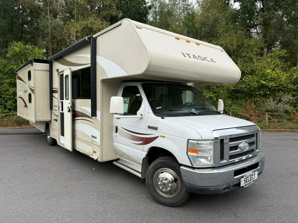 Unleash the spirit of adventure with this 2014 Winnebago Itasca Spirit - a true gem of American RV craftsmanship. Stretching 10 meters (32 feet) in length, this powerhouse is built on a rock-solid Ford chassis and driven by a mighty 6.8L Triton V10 engine, delivering smooth, effortless cruising with only 15,443 original miles. With twin slide-outs, it expands into a spacious and inviting mobile home. This rig isn't just built for travel - it's built for freedom, complete with roof-mounted solar, giving you off-grid capability to chase the horizon without worrying about hookups. Whether you're hugging the coast or roaming the wild interior, the Itasca Spirit is your ultimate escape pod.Inside, you'll find everything you need to live large on the road. With sleeping for up to 10 people, this RV is ideal for big families, groups, or anyone who values space and flexibility. The fully equipped kitchen, roomy dinette, comfortable lounge area, and ample storage all reflect Winnebago's signature attention to detail. Large windows flood the space with light, and the climate control system keeps things comfortable in any season. And thanks to the solar power system, you can camp in remote spots while keeping your essentials running. Whether it's a weekend trip or a cross-country journey, the 2014 Itasca Spirit delivers first-class comfort, freedom, and performancewherever the road takes you. ll leather, bunk beds, cassette toilet, double bed, end bedroom, fixed bed, hand basin, shower, wardrobe, fridge freezer, hob, side kitchen, 3 point seatbelts, cruise control, parking camera, multiple airbags, immobiliser, electric windows, radio, television, tv directional aerial, front armrest, front head restraints, alloy wheels, body coloured bumpers, colour coded body, solid paint, towbar - fixed, awning, slideout, solar panel, 6.8l v10 engine