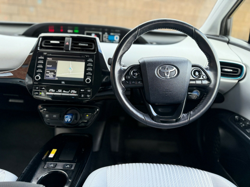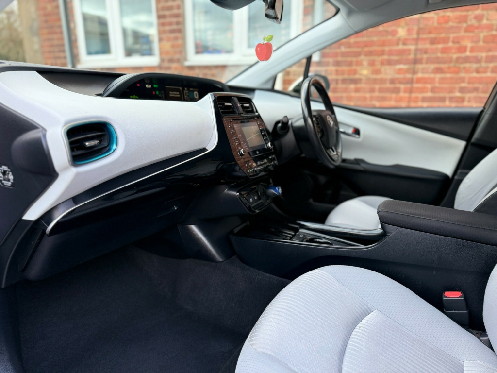 Clean Toyota Prius with 86k miles, full Toyota history (6 services), MOT until Feb 2027 and comes with Toyota (manufacturer) warranty until Feb 2027 or 96k miles (whichever comes first extendable until 2030 or until car reaches 100k - with Toyota servicing). Same owner from brand new. Never been used as a taxi or private-hire. Features include SatNav, Bluetooth, Adaptive Cruise Control, Air-Conditioning, Alloy Wheels, Climate Control, Wireless Phone Charging, Heated Front Seats, Radio/CD/MP3 Player, Aux-In, USB Connection, DAB Tuner, Reverse Camera, Lane Departure Warning, Blind Spot Warning, Electric Windows and Folding Mirrors, etc., v connector, 2x 4.2in screen multi-information display, 7in multimedia display, bluetooth connectivity, dab digital radio, front 12v power outlet, jbl premium sound system, mm17 multimedia, multi information display, navigation, rear 12v power outlet, shark fin antenna, speakers x6, toyota touch 2 multimedia connectivity, usb and aux in connectors and 12v front outlet, wireless mobile phone charger, 17in alloy wheels - gloss black with silver inserts, auto folding - door mirrors, black rear diffuser, black rear pillar design, body coloured door mirrors, chrome inside door handles, chrome surrounds on front fog lights, door handles - body coloured, front power windows, rear power windows, rear window defogger, turn indicators in side mirrors, tyre repair kit, 2 cup holders in front, audio switches on steering wheel, auto dimming rear view mirror, auto up and down function on power windows, boot lamp, branded air conditioning vents, driver power door lock, driver and front passenger personal lights, driver and passenger assist grips, driver and passenger seatback pockets, dual-zone automatic air conditioning, front and rear door pockets, glovebox with internal light, hard tonneau cover, heated driver and front passenger seat, hooks for luggage holding belt, illuminated entry system - ip illumination, illuminated entry system - room lamp, illumination on door trim, leather steering wheel, multimedia switches on steering wheel, piano white elements on the steering wheel, power passenger window lock, push button start, rain sensing wipers, rear headrests x3, rear passenger coat hooks x2, rear passenger footwell heating, rear passenger room lamp, rear seats 60-40 split folding, seats - drivers height adjustment, seats - drivers power lumbar support, shopping bag hooks, soft cabin plastics, steering column - tilt and telescopic, steering wheel - telephone switch, sunglasses holder, sunvisor - driver and passenger with vanity mirror and light, abs - anti lock braking system, airbag - manual on-off switch, anti-jam protection on power windows, child safety locks on rear doors, driver and front passenger whiplash injury lessening - wil - seats, ebd - electronic brakeforce distribution, electronic parking brake, hac - hill start assist control, isofix fixing points, lane departure alert - activates steering, parking pack, pre-collision system, rear cross traffic alert - rcta, rear window wiper, smart entry and push-button start, supplemental restraint system - srs - airbags - 7 airbags, toyota safety sense, traction control - trc, vsc - vehicle stability control, adaptive cruise control, adjustable speed limiter - asl, blind spot monitor - bsm, colour head up display, electric gear shift, electric power steering - eps, front and rear parking sensors, intelligent park assist, lane departure warning, pre crash safety systems, rear view camera, road sign assist, static guide lines on rear-view camera display, tyre pressure warning system, automatic headlight levelling, automatic high beam, daytime running lights - led, dusk sensor, follow me home headlights, front fog lights, headlight cut-off reminder, headlights with auto high beam - led, high mounted rear brake light - led, led rear brake lights, led rear combination lights, light remind warning - with auto cut-off, 2 keys