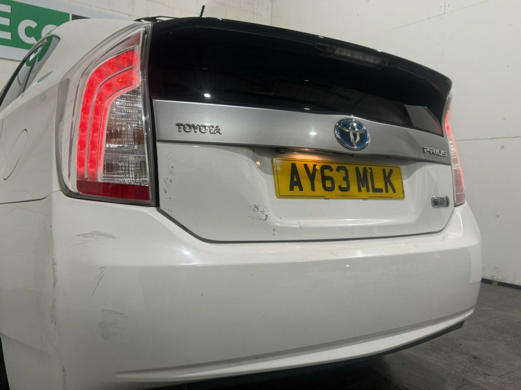 This 2013 Toyota Prius VVT-h offers an exceptional blend of efficiency and technology, boasting a 1.8L Petrol Plug-in Hybrid engine for economical driving. Enjoy the comfort of heated front seats and the convenience of climate control air conditioning, all while staying connected with Bluetooth connectivity. The premium JBL Green Edge Sound System ensures an immersive audio experience, and the innovative Head Up Display keeps essential information visible without taking your eyes off the road.This particular Prius stands out with its remarkably low insurance group, making it a cost effective choice for many drivers. Furthermore, you'll appreciate the generous boot space, providing ample room for shopping, luggage, or equipment. These features, combined with its hybrid powertrain, demonstrate how this Toyota Prius offers a superior ownership experience compared to many other vehicles in its class. in alloy wheels - 10 spoke, abs - anti lock braking system, accessory power socket - front, air conditioning - climate control, airbags - curtain front and rear, airbags - driver, airbags - driver knee, airbags - front passenger, airbags - front passenger cut-off switch, airbags - front side, anti-theft system, armrest - front, ashtray and cigar lighter, assist grips - front x2 and rear x2, auto dimming rear view mirror, bas - brake assist system, blue smoke finished headlights extensions, bluetooth connectivity, bumpers - body coloured, cd player - single disc, central storage bin, charging cable set, clear lens combination light, console box with lid, cruise control, cupholder - front and rear, daytime running lights - led, door handles - matt metallic effect, door mirrors - electrically adjustable - heated - folding - colour keyed with integrated signal, driver and front passenger vanity mirrors with cover and illumination, drivers footrest, ebd - electronic brakeforce distribution, ebs - emergency brake signal, eco mode, ev driving indicator, ev driving range, ev-city mode, electric vehicle mode - ev, electric windows - front and rear, electronically controlled brake system, engine management warning, engine monitoring screen - toyota hybrid system, engine temperature warning, exclusive chrome plated grille moulding, foot operated parking brake, front fog lights, front grille - black, front wipers with rain sensor, front and rear courtesy lights, full wheel caps, fully trimmed boot, glovebox - lockable, head up display, headlight cleaners, headlights - auto-levelling led, high mounted active rear brake light, hybrid system indicator, isofix child restraint system, immobiliser, jbl green edge sound system, lights on warning, locking wheel nuts, macpherson strut front suspension, map light, multi information display, overhead storage box, plug-in connection status, pollen filter, power assisted steering - speed sensitive, power control system - ecometer, rds with pty and eon settings, radio aerial - roof mounted, radio with preset settings, rear lights - led, rear seats 60-40 split folding, rear spoiler, rear tonneau cover - removable, rear view camera, remaining charge time, remote central locking, seats - drivers electric lumbar support, seats - drivers height adjustment, seats - front seat-back pockets, seats - heated front, silver chrome dashboard inserts, silver finished battery charger lid, silver finished door handles, silver license garnish, smart entry and smart start system, speakers x8, steering column - adjustable stepless reach and rake, steering wheel - audio controls, steering wheel - leather, storage for charging cable set beneath load space floor, tpms - tyre pressure monitoring system, torsion beam rear suspension, touch screen - 6.1in, touch tracer controls, toyota touch audio system, toyota touch and go plus navigation system, traction control - trc, tyre repair kit, usb connection, usb and ipod integration, vsc - vehicle stability control, ventilation system - high capacity with four speed fan