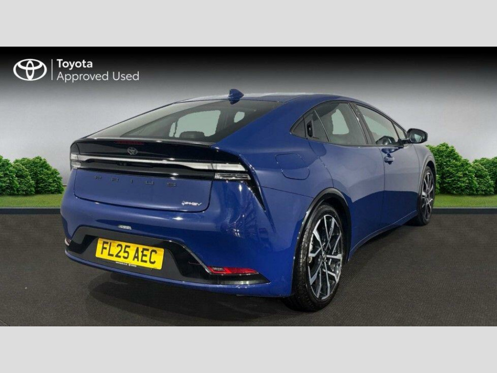 This 2025 Toyota Prius Excel is a Toyota manufacturer approved vehicle with a full service history and only one owner from new, offering excellent peace of mind. Under the bonnet, there’s a 2.0-litre petrol engine that’s paired with an electric motor to produce a combined output of 220bhp, meeting Euro 6 emission standards. The MOT is valid until March 2028, and it comes with a 28 month warranty. Inside, you'll find wireless smartphone integration with Apple CarPlay, a reversing camera with washer for bad weather, and intelligent front & rear parking sensors. The driver's seat includes a memory function, and the remote dual air conditioning system is enhanced with Nanoe-X technology for a comfortable cabin environment.