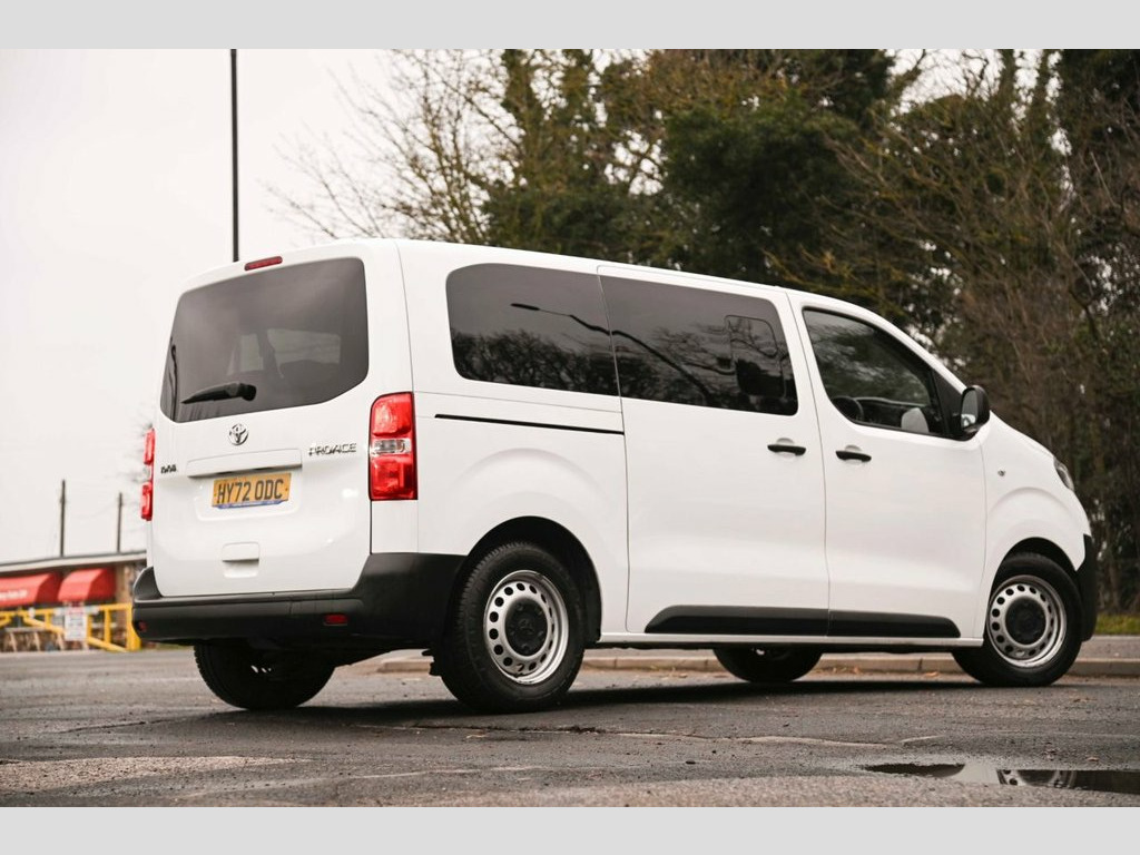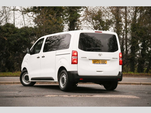 Prestige Car Supermarket in York presents this 2022 Toyota Proace Verso 1.5D Medium MPV 6dr, finished in Vivid White with Dark Grey fabric interior, offering a practical and efficient diesel engine paired with manual transmission and Euro 6 emissions compliance. Designed to comfortably carry up to nine passengers, this versatile MPV comes with a strong specification including smart entry and start, cruise control with speed limiter, air conditioning, power steering and a full alarm system for added peace of mind. Entertainment and connectivity are covered with the Pro-Touch multimedia system, DAB radio, Bluetooth connectivity, USB and AUX inputs, and an eight-speaker audio system. Practicality is further enhanced with 12V power outlets front and rear, front power windows, electrically adjustable and heated door mirrors, remote central locking with two remote keys, a glazed tailgate, and storage beneath the passenger bench. Safety features include ABS with brake assist, hill start assist, vehicle stability control, multiple airbags including front and side protection, ISOFIX mounting points for child seats, tyre pressure monitoring, and high-mounted LED rear brake light. Visibility and convenience are aided by automatic headlights with cornering function, daytime running lights, front fog lights and multi-reflector halogen headlights. Robust interior plastic floor lining, driver height adjustable seating, and a drivers armrest complete this highly practical and dependable fami Fabric - Dark Grey, Vivid White, 12V Power Outlet Front and Rear Passenge, 16in Steel Wheels, 2 Remote Keys, ABS - Anti Lock Braking System, Air Conditioning, Airbags - Front Side, Armrest - Drivers, Aux-In Connector, BA - Brake Assist, Bluetooth Connectivity, Body Coloured Roof, Cruise Control with Speed Limiter, Daytime Running Lights, Driver and Passenger Airbags, Electrically Adjustable Heated Door Mirr, Front Fog Lights, Front Passenger Airbag On-Off Switch, Front Power Windows, Full Alarm System, Glazed Tailgate, Glovebox Key and Light, Glovebox with Cooler, HAC - Hill Start Assist Control, Headlights - Automatic On, Headlights - Cornering Function, High Mounted Rear Brake Light - LED,