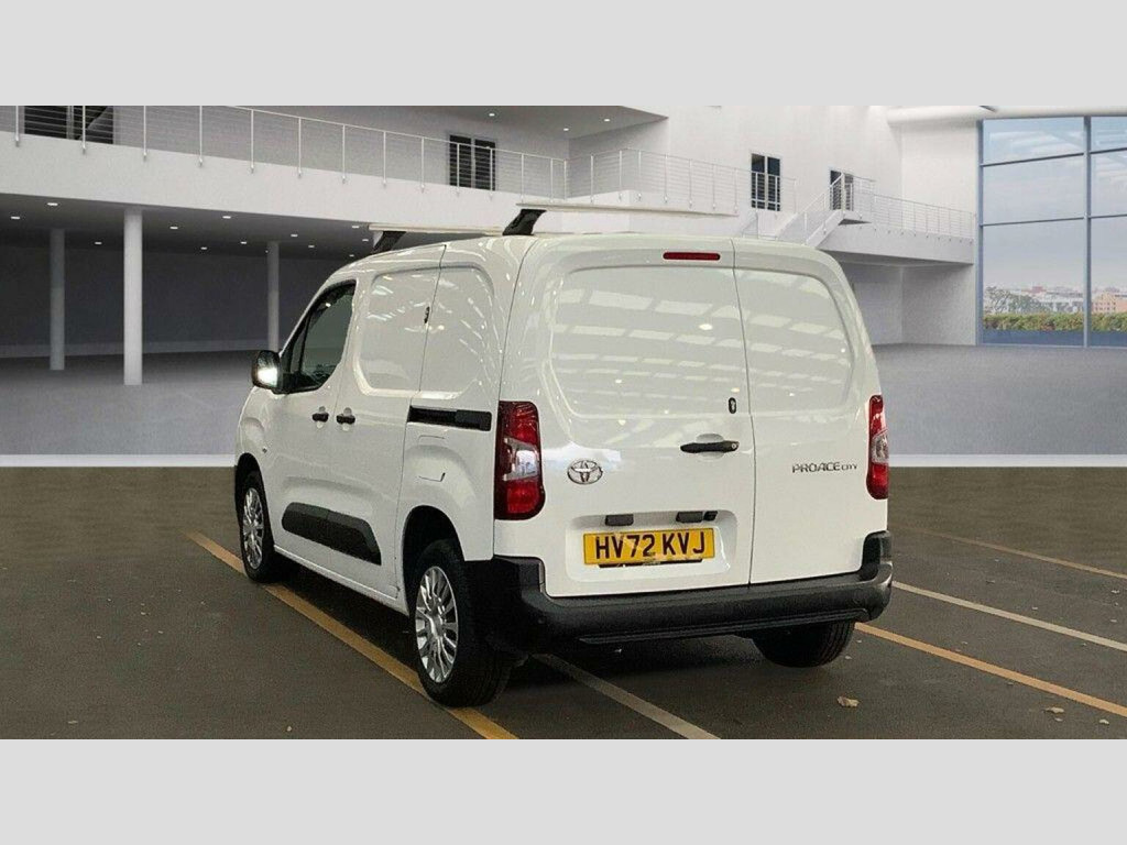 This 2022 Toyota PROACE CITY is a superb example, having had only one owner since new. This Icon derivative, featuring a 1.5 litre BlueHDi diesel engine and meeting Euro 6 emissions standards, offers a practical and efficient solution for your business needs. It comes equipped with a reversing camera that includes dynamic guide lines and rear parking sensors for easier manoeuvring. Stay connected and entertained with Bluetooth connectivity, and seamlessly integrate your smartphone using Apple CarPlay and Android Auto. The manual air conditioning ensures a comfortable cabin environment. With an impressive highlight fuel economy of 51 miles per gallon, this PROACE CITY demonstrates its cost effectiveness. Its low CO2 emissions also mean it is kinder to the environment. These highlights indicate that this vehicle offers a more economical and environmentally conscious driving experience compared to many other similar vans on the market. Euro 6, 2 x sliding doors, Ply lined, Bulkhead, Parking sensors, Roof rack, Additional Security Locks, 6 speed, Trip Computer, Media/Radio/USB/Bluetooth, Elec Windows, Cup Holder, Stop/Start, MFSW, Air Conditioning, Elec Mirrors, Remote Central Locking, 2 x keys, One Owner, Service history, Finance available