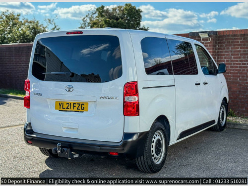 This vehicle has passed a 128 Point AA inspection, to view the report, please visit our website or AACars & HPI Checked 5 Years TOYOTA Warranty & 12 Months AA breakdown cover, This Example is a 9 seater, Medium Wheel Base Minibus/ MPV - Service Schedule 20k miles or 24 months whichever comes first - Full Toyota Service History - Fresh Service - New MOT - 1 Owner - 2 Keys - Air Conditioning - Brake assist system - DAB - Bluetooth - Cruise Control & Speed Limiter - Auto Child Lock - Four speakers - Full Spec List available, 14 Days Money Back Guarantee (T& C's apply) Reserve or buy Online now Express Home Delivery Available 7 Days a week, Drive away today with our complementary 5 Days driveaway comprehensive insurance (T& C's apply),For finance applications or eligibility check please visit www.suprenocars.com, save money & time with our state of the art online system and benefit from our low finance rates from 5.4% Flat rate and 9.9% APR Rep, instant decision and you could drive away the same day. Worried about poor credit score? Not a problem, we can help (Acceptance is subject to status (T& C's apply),Part Exchange Welcome We can buy your car and settle your existing finance All major Debit cards are accepted,Please satisfy yourself that a vehicle has a specific feature that is important to you before purchasing Please note that a £75 admin fee will apply, www.suprenocars.com or call on 07305152076 or 01233 510281 - We are based in Ashford, Surrey TW15 1RZ v power outlet front and rear passenger 2nd row, 16in steel wheels, 2 remote keys, abs - anti lock braking system, air conditioning, airbags - front side, armrest - drivers, aux-in connector, ba - brake assist, bluetooth connectivity, body coloured roof, body-coloured front bumper, cruise control with speed limiter, daytime running lights, door handles - body coloured, driver and passenger airbags, electrically adjustable heated door mirrors, front fog lights, front passenger airbag on-off switch, front power windows, full alarm system, full size spare wheel, glazed tailgate, glovebox key and light, glovebox with cooler, hac - hill start assist control, headlights - automatic on, headlights - cornering function, high mounted rear brake light - led, isofix fixing points, luggage partition net, multi-reflector halogen headlights, plastic floor lining - front and rear, power retractable door mirrors, power steering, pro-touch multimedia system, radio with dab, remote central locking, seats - drivers height adjustment, smart entry and start, speakers x8, storage under passengers bench, tpms - tyre pressure monitoring system, two sliding side doors with fixed side windows, usb connection, vsc - vehicle stability control, towing solutions - fixed 7-pin and 13-pin, fabric - dark grey