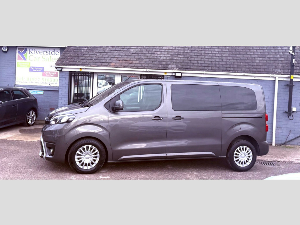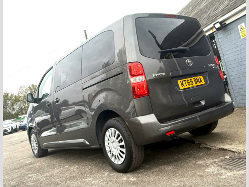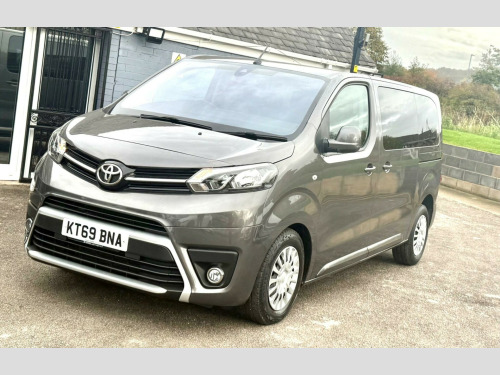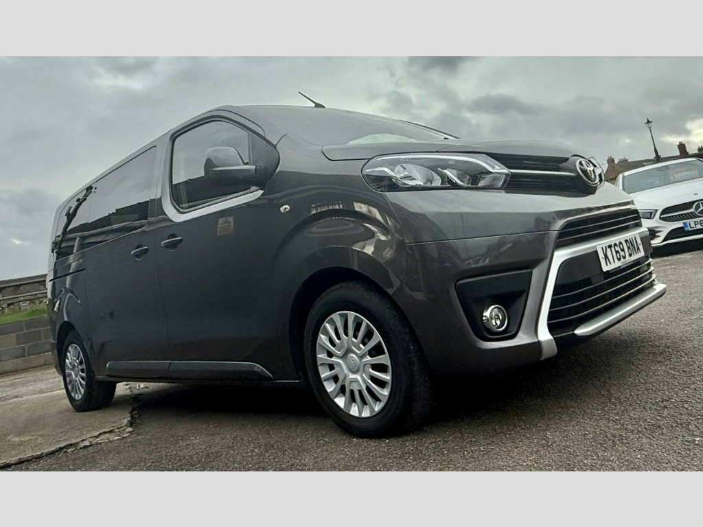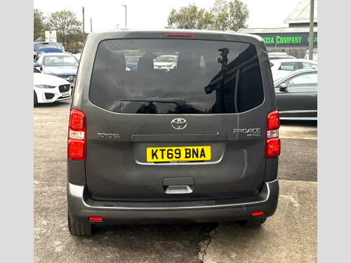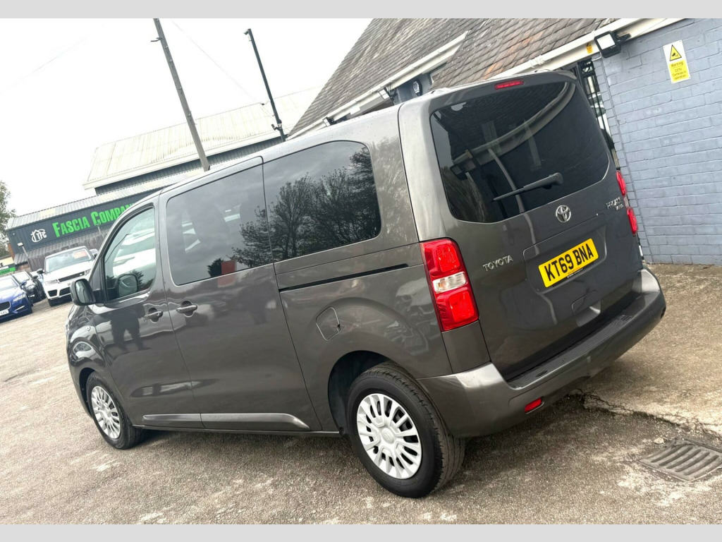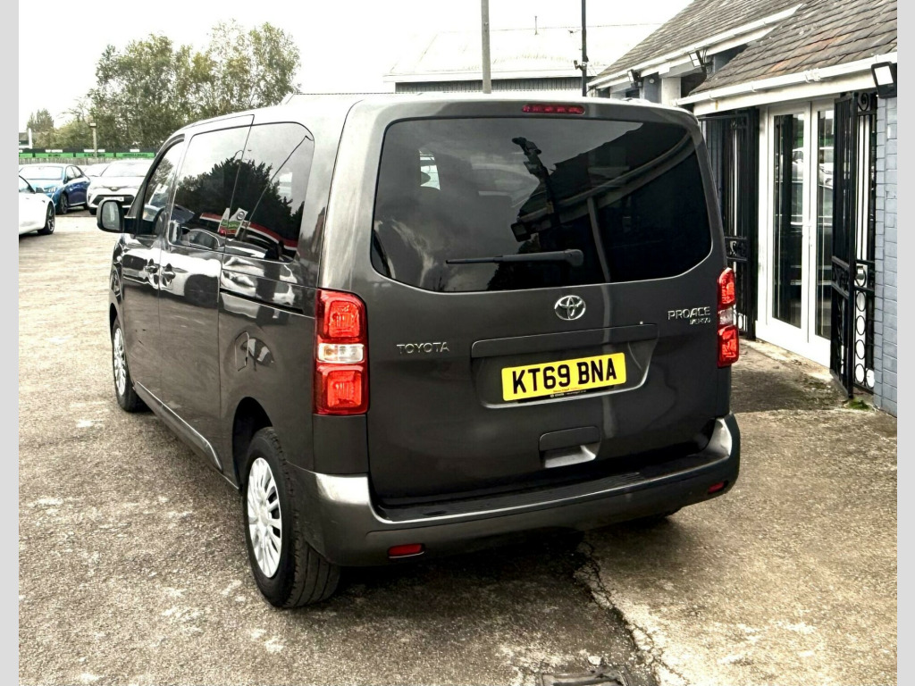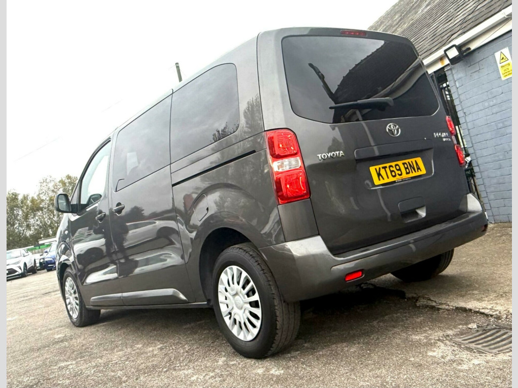 This 2020 Toyota PROACE Verso offers exceptionally low mileage for its age, having covered just 29,000 miles. This versatile 1.5D Shuttle Medium MPV MWB Euro 6 (s/s) 5dr model, in the Shuttle trim, is equipped with a fuel efficient 1.5 litre diesel engine and meets Euro 6 emissions standards. For your convenience, it features a Bluetooth Hands Free System and automatic headlights.The PROACE Verso Shuttle is designed for practicality, boasting an impressive cargo volume of 5300 litres, making it ideal for transporting goods or a large group. Its low CO2 emissions highlight its efficiency, suggesting it is a more environmentally conscious choice compared to similar vehicles. This nine seat MPV combines functionality with Toyota's renowned reliability. vigation, 1-3 2-3 split-folding 2nd row rear seats, 1-3 2-3 split-folding 3rd row rear seats, 12v power outlet front and rear passenger 2nd row, 16in steel wheels with wheel caps, 2 remote keys, 2nd row 3-seat rear bench, 3rd row removable seats, abs - anti lock braking system, adjustable lumbar support on drivers seat, adjustable speed limiter - asl, airbags - driver srs, airbags - front passenger cut-off switch, airbags - front passenger srs, alarm system, analogue speedometer, analogue tachometer, anti-tamper alarm, armrest - drivers, auto dimming rear view mirror, auto up and down function on power windows, auto wipers, automatic air conditioning, aux-in connector, ba - brake assist, bluetooth hands free system, body coloured roof, body-coloured door mirrors, body-coloured front bumper, body-coloured protection moulding on side doors, boot light, boot luggage hooks, cornering lights, cruise control switch on steering wheel, cruise control with speed limiter, dab digital radio, daytime running lights - bulb type, deadlocks, door handles - body coloured, ebd - electronic brakeforce distribution, fixed window on rear tailgate, forward tilting 2nd row rear seats, front cup holders, front fog lights, front power windows, full size spare wheel, glovebox key and light, glovebox with cooler, hac - hill start assist control, headlight cut-off reminder, headlights - automatic, high-mounted stop lamp - led type, isofix fixing points, luggage partition net, massage function on front seats, midnight tinted - 70 percent privacy glass on rear windows, motion sensor alarm, multi-function roof, multi-reflector halogen headlights, noise reduction layer on windshield, power adjustable and heated door mirrors, power child safety door lock, power steering, radio player, rear air conditioning, rear bumper - body coloured, rear combination lights, rear tailgate, rear window defogger, rear window wiper, remote door locking, seats - drivers height adjustment, seats - front passenger bench, silver front door insert, silver insert on lower passenger dashboard, silver surrounds on front fog lamps, speakers x8, storage under passengers bench, thermal insulated windshield glass, two sliding side doors with fixed side windows, tyre pressure warning system, usb connector, upright folding 2nd row rear seats, upright folding 3rd row rear seats, vsc - vehicle stability control