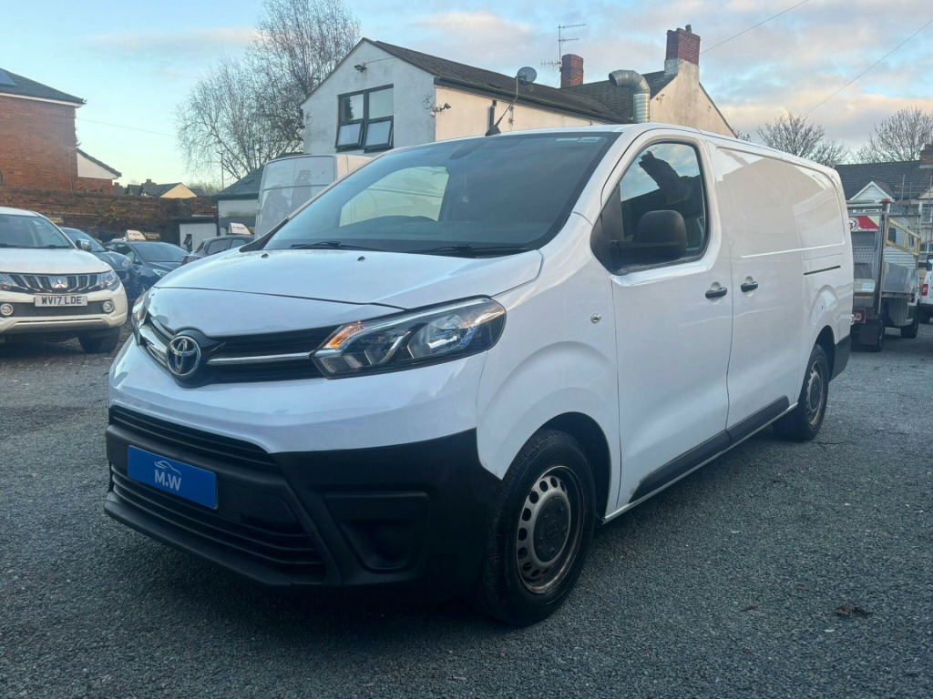 This 2020 Toyota ProAce offers exceptionally low mileage for its age, having covered just 64,000 miles, and benefits from an MOT valid until April 2026. This 2.0D Icon Long Panel Van LWB is a Euro 6 compliant vehicle, meaning it meets stringent emission standards and features a 2.0 litre diesel engine. The Icon trim level includes practical features such as a Bluetooth Hands Free System for seamless connectivity, automatic headlights for enhanced visibility and convenience, and air conditioning to ensure a comfortable driving environment.The ProAce Icon boasts an impressive cargo volume of 6600 litres, providing ample space for your business needs. Its Euro 6 classification also highlights its low CO2 emissions, making it a more environmentally conscious choice compared to many other vehicles. This combination of low mileage, long MOT, generous cargo capacity, and efficient performance makes this Toyota ProAce a standout option for those seeking a reliable and capable commercial vehicle. CAT S v socket in dashboard and rear, 12v socket in glovebox, 16in steel wheels with wheel caps - 5 triple spoke, abs - anti lock braking system, acoustic windscreen, adjustable speed limiter - asl, air conditioning and smart cargo, armrest - drivers, auto headlights, auto wipers, ba - brake assist, black front and rear bumpers, black protection moulding on side doors, bluetooth hands free system, body coloured roof, bulkhead - steel with window, central locking, cruise control, cruise control switch on steering wheel, daytime running lights - bulb type, deadlocks, digital audio broadcast - dab, door handles - black, double front passenger airbag, drivers seat height adjust and lumbar support, front 12v power outlet, front cup holders, front passenger airbag on-off switch, front power windows, front room light, full spare wheel, glovebox light, hac - hill start assist control, headlight cut-off reminder, led high-mounted stop light, lighted and chilled upper glove box, manually adjustable rear view mirror, manually reclining and sliding front passenger seat, multi-reflector halogen headlights, open upper dashboard storage compartment, panel rear wing doors, power adjustable and heated door mirrors, power door locks, power steering, radio player, rear combination lights - bulb type, remote door locking, short antenna, smoke tinted - 30 percent - privacy glass on rear passenger window, speakers x4, supplemental restraint system - srs - airbags - 2 airbags, tpms - tyre pressure monitoring system, toyota traction select, twin sliding side doors, two seater front passenger bench, usb connector, vsc - vehicle stability control