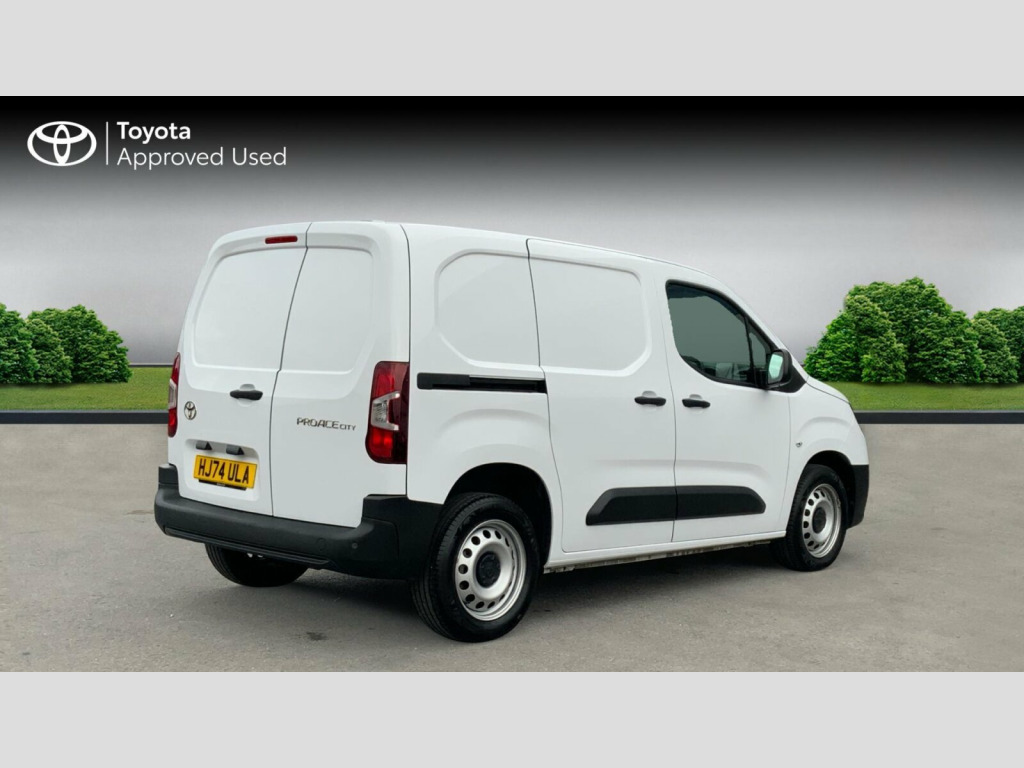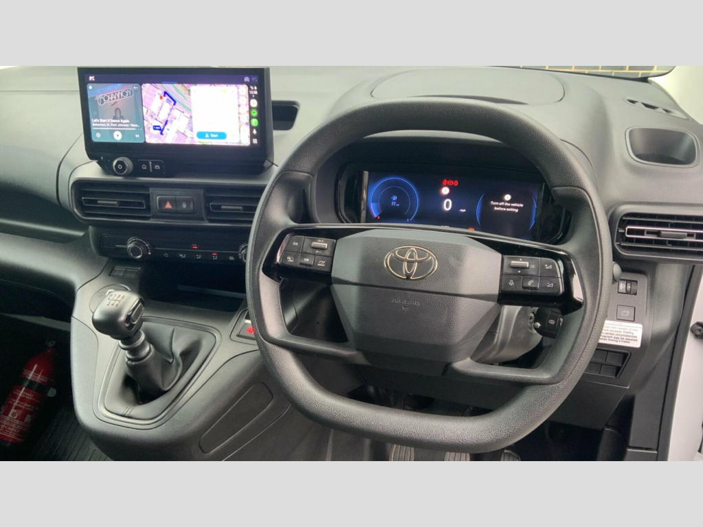 This 2024 Toyota PROACE CITY 1.5 BlueHDi Active Short Panel Van SWB Euro 6 is ready for work Fabric - Dark Grey, Ply Lining, 10in Digital Cluster, 16in Steel Wheels, 4-Spoke Urethane Steering Wheel, AEB with Forward Collision Warning, AM-FM Radio, Adjustable Lumbar Support on Drivers Seat, Adjustable Speed Limiter - ASL, Airbags - Front Passenger, Antenna - Short Roof Mounted, Anti Lock Braking System - ABS with Electronic Brake-Force Distribution - EBD, Anti-Tamper Alarm, Armrest - Drivers, Automatic High Beam, BA - Brake Assist, Black Protection Moulding on Side Doors, Boot Light, Bumpers - Front and Rear - Black, Cargo Deck Load Hooks - x6, Closed Upper Driver Dashboard Storage Compartment, Closed Upper Passenger Dashboard Storage Compartment, Cruise Control, DAC - Downhill Assist Control, Daytime Running Lights, Digital Audio Broadcast - DAB, Door Handles - Black, Door Mirrors - Black, Door Mirrors - Electric - Heated and Power Adjustable, Driver Attention Alert, Driver and Front Passenger Personal Lights, Electric Front Windows - One Touch Auto Up and Down Function, Electronic Parking Brake, Front Room Light, Front USB-C Device Charger, Full Size Temporary Spare Wheel, Glass-Breaking Alarm Sensors, HAC - Hill Start Assist Control, Handsfree Phone Set, Immobiliser, In-Floor Storage Box, Interior Door Handles - Black, Intrusion Alarm, JBL Premium Sound System, Key Starting System, Lane Departure Alert with Switches on Dashboard, Lane Keep Assist, Manual Air Conditioning, Manual Height Adjustable for Drivers Seat, Manually Sliding Front Passenger Seat, Motion Sensor Alarm, Open Tray on Passenger Dashboard, Overhead Storage, Panel Bulkhead, Panel Rear Wing Doors - 180 Degree Opening, Pollen Air Filter, Power Door Locks, Power Steering, Pre-Collision System with Pedestrian Detection, Pro-Touch Multimedia System with 10in Touchscreen, Rear Parking Sensors, Remote Central Locking, Road Sign Assist, Roof Rails, Rubber Floor in Cargo Area, Smart Cargo - Mobile Office, Smartphone Integration - Apple Car Play and Android Auto, Smartphone Voice Recognition on Multimedia System, Speakers x4, Speed Limiter Information, Steering Wheel - Audio Controls, Supplemental Restraint System - SRS - Airbags - 6 Airbags, Twin Sliding Side Doors, Two Seater Front Passenger Bench, Tyre Pressure Warning System, USB Connector - Type C, Urethane Gear Shift, VSC - Vehicle Stability Control, eCall Emergency Call System, ecoLED Headlamp