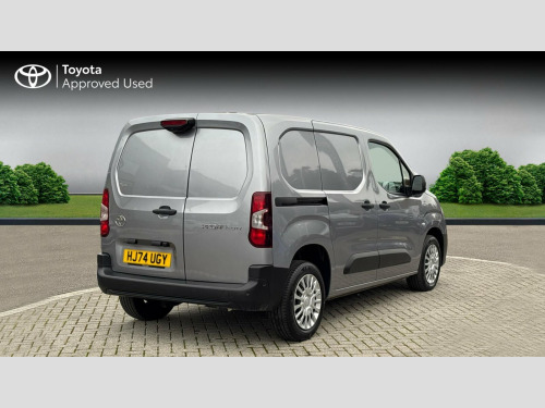 This 2024 Toyota PROACE CITY is a standout choice, having had only one owner from new and boasting manufacturer approval for your peace of mind. This BlueHDi Icon short panel van, registered in 2024, features a 1.5 litre diesel engine and meets Euro 6 emissions standards. It comes with an 18 month warranty and its MOT is valid until October 2027. The Icon trim level includes a Blind Spot Monitor with Blind Spot Assistance, a Rear View Camera with parking assistance, and manual air conditioning. For seamless connectivity, it offers Smartphone Integration with both Apple CarPlay and Android Auto, alongside front, side, and rear parking sensors for enhanced parking assistance.