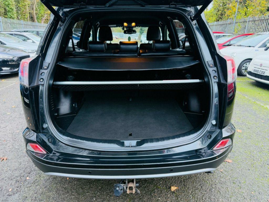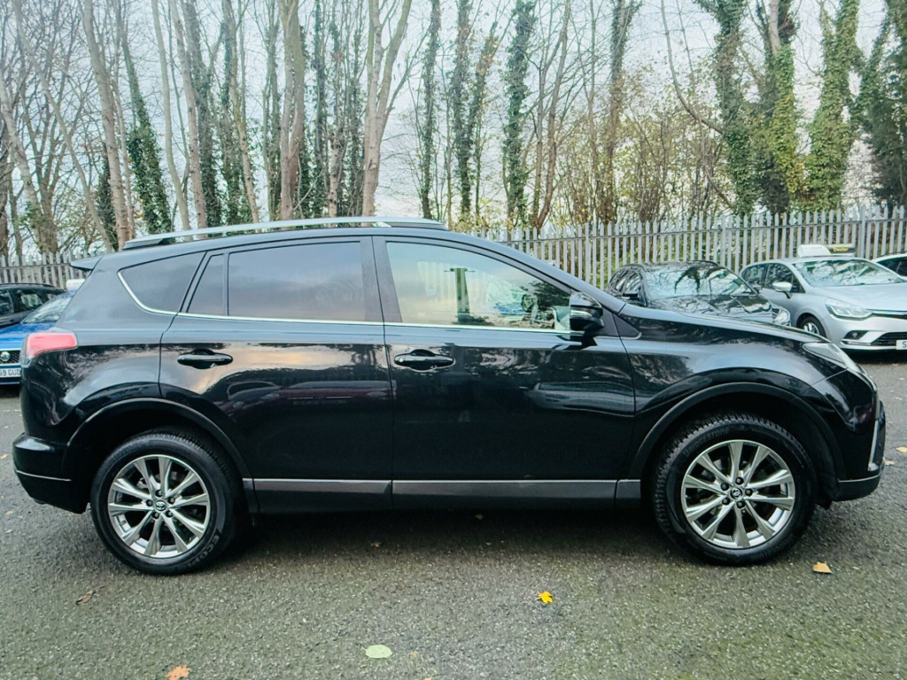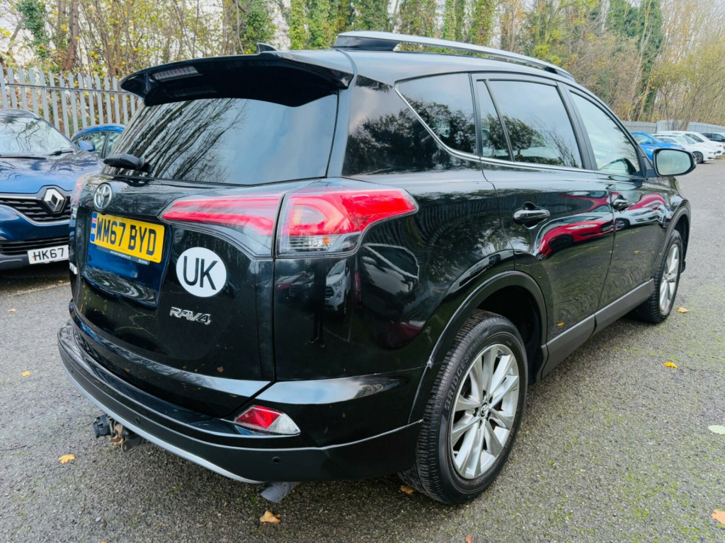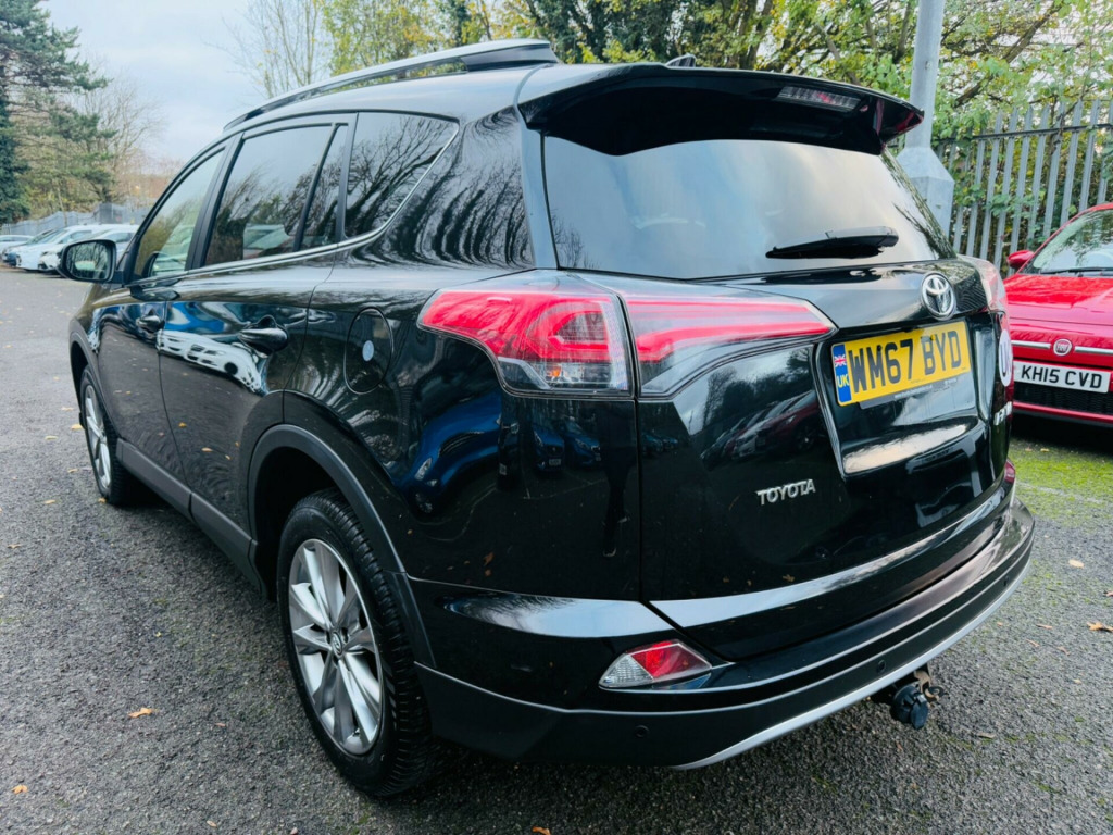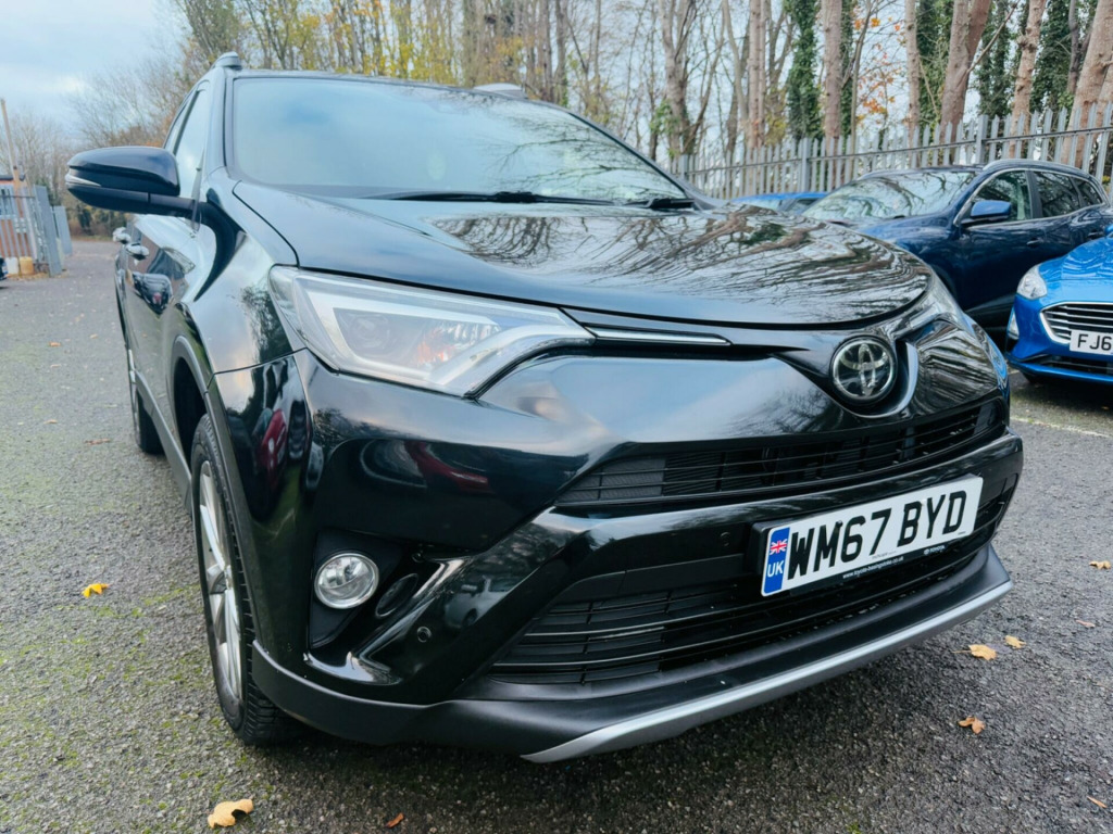 BLACK, FULL SERVICE HISTORY(MAIN DEALER), FINANCE AVAILABLE, NAVIGATION SYSTEM, PARKING SENSORS, LEATHER SEATS, SPARE KEY, ONLY ONE FORMER KEEPER, PRIVACY GLASS, START/STOP, CRUISE CONTROL,ULEZ COMPLIANT SUPERB DRIVE, VERY ECONOMICAL, ALLOY WHEELS, CLIMATE CONTROL, VERY WELL LOOKED AFTER, VERY CLEAN IN AND OUTThis 2017 Toyota RAV4 D-4D Excel is a superb example, having been owned by just one person from new and boasting a clear vehicle history check. As a Euro 6 compliant model, it features a 2.0 litre diesel engine and the desirable Excel trim, offering a refined driving experience. Inside, you'll find a host of convenient features including front and rear parking sensors with parking assistance, Bluetooth connectivity for seamless calls and music, and dual zone climate control to keep everyone comfortable. The driver will appreciate the heated front seats and the handy memory function for the driver's seat, ensuring your preferred position is always ready.This RAV4 excels with its impressive fuel economy, achieving a remarkable 60 miles per gallon, which is significantly better than many other vehicles in its class. Furthermore, its low CO2 emissions contribute to a more environmentally conscious drive. Practicality is also a strong suit, with a large boot space providing ample room for shopping, luggage, or any gear you need to transport. These highlights demonstrate the exceptional value and capability this Toyota RAV4 offers.. 12V Socket x3, 18in Alloy Wheels - 10 Spoke High Gloss Paint, 3-Spoke Leather Steering Wheel, 4.2in Colour TFT Screen for Multi-Information Display, Ambient Lighting - Foot Area, Anti-Jam Protection on Power Windows, Anti-Lock Braking System - ABS - with Electronic Brake Force Distribution - EBD and Brake Assist - BA, Audio and Telephone Switches on Steering Wheel, Auto Dimming Rear View Mirror, Auto Up and Down Function on Drivers Window, Autonomous Emergency Braking, Bluetooth Connectivity, Body Coloured - Power Adjustable - Heated Door Mirrors, Child Protection Locks, Chrome Inside Door Handles, Coat Hooks, Combimeter, Console Box, Cupholders - Front, Cupholders - Rear, DAB Digital Radio, Daytime Running Lights - LED, Door Handles - Body Coloured, Driver and Passenger Seatback Pockets, Driver and Passenger Sun Visors with Mirror, Drivers Seat - Power Adjustable - Lumbar Support, Drivers Seat Memory, Dual Zone Climate Control, Dusk Sensing Headlights, Follow Me Home Headlights, Front Fog Lights, Front Grille - Black, Front Passenger Airbag On-Off Switch, Front and Rear Parking Sensors, Front and Rear Under Runs, Go Navigation, HAC - Hill Start Assist Control, Horizontal Luggage Net, ISOFIX Fixing Points, Illuminated Entry System, Immobiliser, Indicator Integrated in Door Mirrors, Keyless Entry System with Push Button Start, LED Projector Headlamps, Leather Gear Shift, Leather Parking Brake Handle, Locking Glove Box, Luggage Room Light, Power Back Door, Power Steering, Rain Sensing Wipers, Rear Headrests, Rear LED Combination Lights, Rear Power Windows, Rear Privacy Glass, Rear View Camera, Rear Window Defogger, Reclining Rear Seats, Remote Door Locking, Roof Rails, Seat Belt - Pre-Tensioners and Force Limiters, Seats - Drivers Electrically Adjustable, Seats - Heated Front, Seats - Sliding Front, Shark Fin Antenna, Space Saver Spare Wheel, Speakers x6, Sunglasses Holder, Supplemental Restraint System - SRS - Airbags - 7 Airbags, TPMS - Tyre Pressure Monitoring System, Tonneau Cover - Retractable, Toyota Safety Sense, Toyota Touch 2 Multimedia, USB Connector, VSC - Vehicle Stability Control.