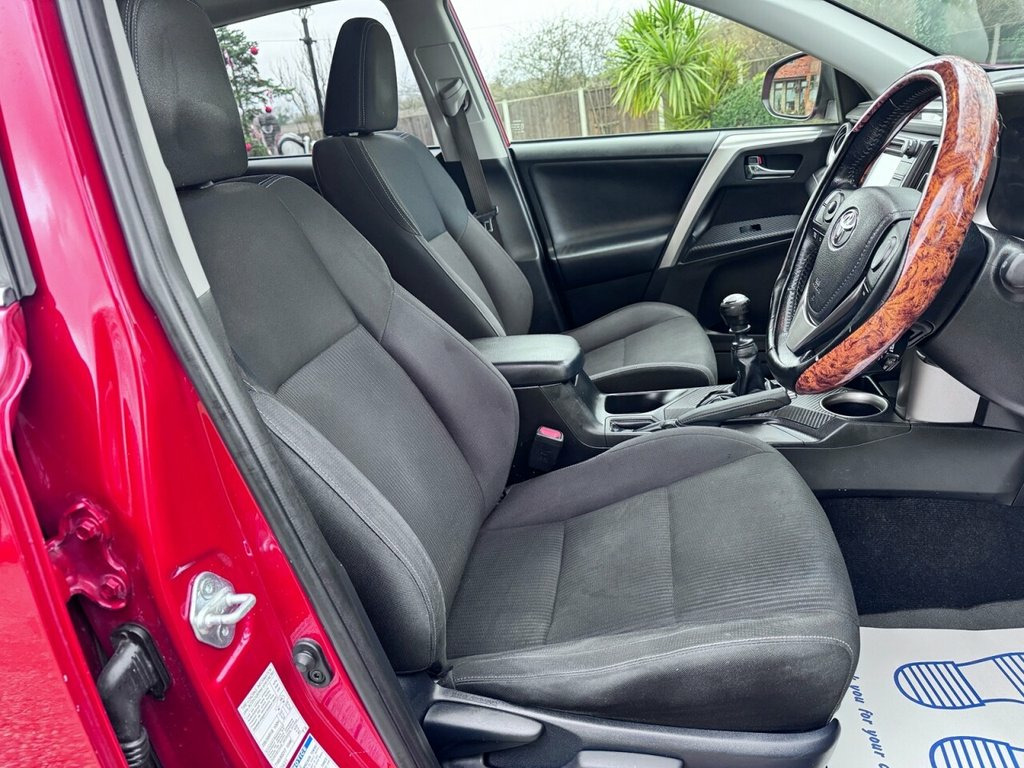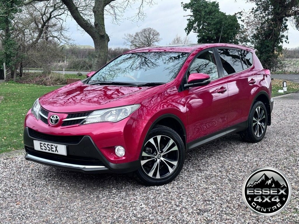 TOYOTA RAV4 2.0 D-4D ICON 4X4 - 2014 (63) REG - 2.0 TURBO DIESEL ENGINE - 6 SPEED MANUAL GEARBOX - 4 WHEEL DRIVE - 107,028 MILES WITH FULL SERVICE HISTORY 11 STAMPS - HASSLE FREE FINANCE CAN BE ARRANGED AT GREAT RATES SIMPLY GIVE US A CALL - MASSIVE SPEC - ALLOY WHEELS - PARKING SENSORS - CHROME PACK - REVERSING CAMERA - CD / RADIO - SAT NAV - ELECTRIC MIRRORS - ELECTRIC WINDOWS - ELECTRIC SUNROOF - CLOTH INTERIOR - CRUISE CONTROL - AUDIO CONTROL - BLUETOOTH PHONE CONNECTION - KEYLESS GO - KEYLESS ENTRY - PUSH BUTTON START - ELECTRIC TAILGATE - AUTOMATIC LIGHTS - AUTOMATIC WIPERS - LOG BOOK - MOT 07/2026 - 2 KEY PRESENT - FULL SERVICE HISTORY UP TO 103,9562 MILES - 11 STAMPS (7 MAIN DEALER) - OWNERS PACK - 12 MONTHS ROAD TAX £195 Vermillion Red, Toyota Touch and Go Navigation System, Electric Sunroof, 12V Socket, 18in Alloy Wheels, ABS - Anti Lock Braking System, Air Conditioning - Climate Control- Dual, Air Recirculation Function, Airbags - Curtain, Airbags - Driver, Airbags - Driver Knee, Airbags - Front Passenger, Airbags - Front Passenger Cut-Off Switch, Airbags - Front Side, Auto Dimming Rear View Mirror, BAS - Brake Assist System, Bluetooth Connectivity, Body Coloured Door Mirrors, Bottle Holders - Doors, Child Protection Locks, Cruise Control, Cupholders - Front x2, Cupholders - Rear, DAB Digital Radio, Daytime Running Lights - LED, Door Ajar Warning, Door Handles - Body Coloured, Door Inserts - Leather, Door