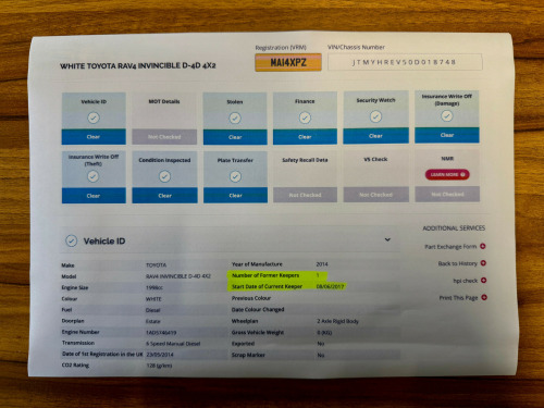 14 Reg - Pearl White with Full Black Leather Trim, This stunning Rav4 Invincible comes with an enormous specification which includes: Glass Sunroof, Factory Colour Satellite Navigation, Bluetooth, Reversing Camera, DAB Radio, Heated Seats, Keyless Go, Xenon Headlamps, Dual Climate Control, Cruise Control, Trip Computer,, CD Player with Fingertip Controls, Power Folding Mirrors, Auto Lights, Auto Dipping Mirror, Leather Steering Wheel, Airbags, ISO-Fix Seating, 18'' Alloy Wheels, Front Fogs, low mileage and comes with a Comprehensive Full Service History (15 services) and a brand new MOT with no advisories, really a stunning looking car in very clean condition throughout and is complemented perfectly by its super high specification and service records to match, drives superbly so any inspection welcome, HPI Clear, Part Exchange up or down welcome. **Debit/Credit Cards Accepted** **Open 6 Days a week** **POOR CREDIT NO PROBLEMS - Finance available (subject to status)** (*Sometimes we may still reserve the right to not offer unaccompanied test drives)