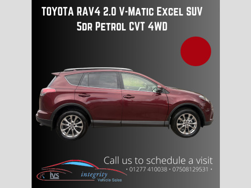 This 2016 Toyota RAV4 2.0 V-Matic Excel SUV 5dr Petrol CVT 4WD Euro 6 (s/s) (Safety Sense, Nav) ( is currently available for £6,950 in Brentwood Essex with Petrol engine and Automatic gearbox. For more information or to arrange a viewing, click here to send us an email using form below.