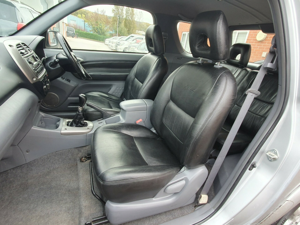 EXCEPTIONAL TOYOTA RAV-4 2.0 VVT-I PETROL MANUAL NRG 4WD 3 DOOR FINISHED IN THE GREAT COLOUR COMBINATION OF ARGENTA SILVER METALLIC BODYWORK WITH FACTORY FITTED SIDE-BARS AND STYLE PACK ALONG WITH FULL NEBRASKA BLACK LEATHER INTERIOR!THIS EXAMPLE IS ONE OF THE FEW REMAINING 3 DOORS LEFT IN CAPTIVITY AND THIS EXAMPLE COMES WITH A BRAND NEW CLUTCH ALONG WITH A BRAND NEW 1 YEAR MOT WITH NO ADVISORIES ALL IN THE PRICE!COMING WITH OUR SALES PACKAGE OF A NEW CLUTCH, 1 YEAR MOT WITH NO ADVISORIES, 1 YEAR GUARANTEE, AA BREAKDOWN COVER, FULL INTERIOR AND EXTERIOR DETAILED VALET AND 2 KEYS ALL IN THE PRICE! justable steering column/wheel, air-conditioning, electric windows (front), in car entertainment (radio/cd), seat height adjustment, speakers, upholstery cloth, air bag driver, air bag passenger, alarm, anti-lock brakes, central door locking, centre rear seat belt, front fog lights, head restraints, immobiliser, power-assisted steering, alloy wheels (16in), body coloured bumpers, mirrors external, rear roof spoiler, roof rails, side protection mouldings, spare wheel (full size), power socket