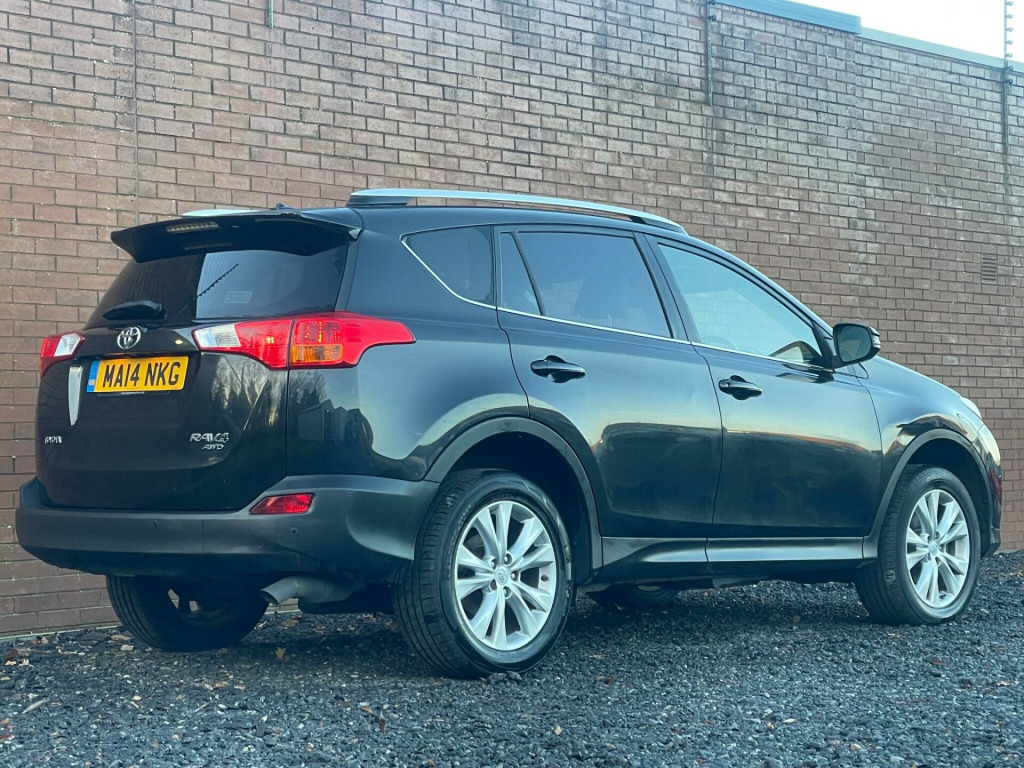 This 2014 Toyota RAV4 D-4D Invincible is a remarkable find, boasting a single owner from new and a clear vehicle history check, offering you peace of mind. Under the bonnet, you'll find a robust 2.2 litre diesel engine paired with a capable four wheel drive system, ensuring confident performance in various conditions. This Invincible trim level comes equipped with desirable features such as a smart entry system for effortless access, and automatic dusk sensing headlights for enhanced visibility.Inside, comfort is paramount with heated front seats and dual zone climate control, allowing both driver and passenger to set their preferred temperature. Practicality is also a strong suit, with a large boot space perfect for luggage, shopping, or outdoor gear. Rear parking sensors are included to assist with manoeuvring, making tight spots less of a worry. These thoughtful additions demonstrate the care and consideration that has gone into this well maintained RAV4, setting it apart from others., v socket, 18in alloy wheels, abs - anti lock braking system, airbags - curtain, airbags - driver, airbags - driver knee, airbags - front passenger, airbags - front side, auto dimming rear view mirror, bas - brake assist system, bluetooth connectivity, body coloured door mirrors, bottle holders - doors, bumpers - front chrome trim, child protection locks, chrome rear door plate, cruise control, dab digital radio, daytime running lights - led, door handles - body coloured, door inserts - leather, door mirrors - electric - foldable mirrors, door mirrors - electrically adjustable, door mirrors - heated, driver and front passenger sun visors, dual zone climate control, dusk sensor, ebd - electronic brakeforce distribution, electric power steering - eps, electric windows - front and rear, front fog lights, gear shift indicator - gsi, glovebox - lockable, hac - hill start assist control, headlights - follow me home, headrests - front height adjustable, headrests - rear height adjustable, isofix child restraint system, illuminated entry system, immobiliser, integrated dynamic drive system, leather gear shift knob, multimedia connectivity, parking sensors - rear, power back door, premium leather sporty seats, privacy glass - rear, push start button, radio and cd player, rain sensing wipers, rear parking camera, rear seats 60-40 split folding, rear spoiler, roof rails, seats - anti-whiplash design, seats - drivers power adjustment, seats - drivers power lumbar support, seats - front seat-back pockets, seats - heated front, side impact beams, smart entry system, speakers x6, sport mode button, steering column - tilt and telescopic, steering wheel - audio and bluetooth controls, steering wheel - leather, tonneau cover - retractable, toyota touch, traction control - trc, tyre pressure warning system, tyre repair kit, under-floor storage in boot, vsc - vehicle stability control, vertical tailgate, toyota touch and go navigation system, blind spot monitor - bsm