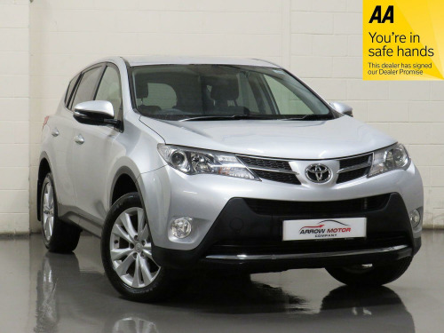 Arrow Motor Company are pleased to present this fantastic, Toyota RAV4 Icon D-4D finished in the stunning Tyrol Silver Metallic Paintwork, with Partial Leather and Fabric Interior. Equipped with Toyota’s 2.2-Litre Diesel engine producing 148bhp, whilst providing the most economical of drivers with an incredible 42.2mpg, with potential to rise to 47.9mpg in Extra-Urban environments. This Particular Example is Complimented by Full Service History (FSH) and Very Low Mileage. This vehicle also benefits from the following impressive list of features below. , ↠↠↠↠↠↠↠↠↠↠↠↠↠↠↠↠↠↠↠↠â†, , …. Interior Features…, , Satellite Navigation | Rear Parking Camera Display with Guidance Lines | Dual Zone Automatic Climate Control | DAB Radio | Bluetooth Connectivity | Interior Automatic Boot Release | Cruise Control | 6x Speaker System | Automatic Headlight Switch | Black Leather Multifunctional Steering Wheel | Hill Descent Control | Sport Mode | Eco Mode | AUX Port | USB Port | 12v Port | Deployable Rear Sarm Rest and Cup Holder | CD Player | Black Leather and Carbon Woven Effect Door Cards | Front and Rear Electric Windows | Electrically Adjustable Folding Wing Mirrors | Front and Rear Interior Illumination | Chrome All Weather Floor Matts | Gyro Air Vents | Multifunctional Trip Computer | 2x Cup Holder | Black Leather Hand Brake | Boot Storage Netting | Space Saver Spare Wheel | , , … Exterior Features…, , 18-Inch 10-Spoke Metallic Silver Alloy Wheels | Powered Boot Lid | Rear Parking Camera | Automatic Boot Release | Rear Privacy Glass | Spoiler | Day Time Running Lights | Rear Heated Windscreen | Wing Mirror Mounted Indicators | Chrome Lined Splitter | Front Fog Lights | Body Coloured Wing Mirrors | Body Coloured Roof | Body Coloured Door Handles