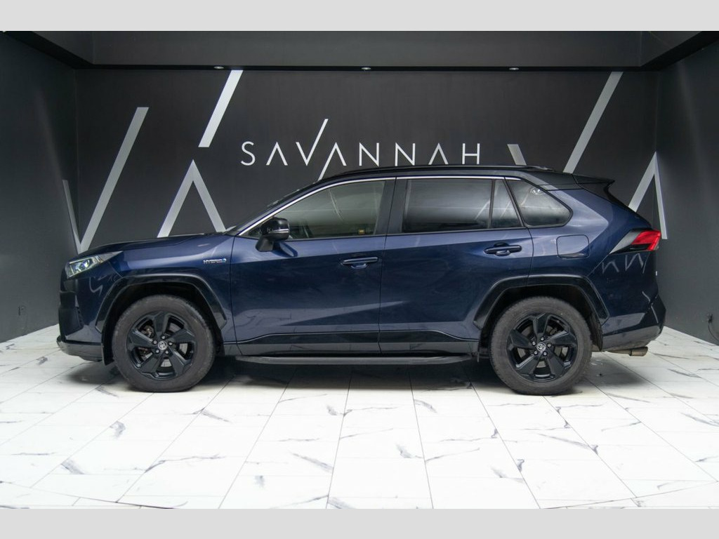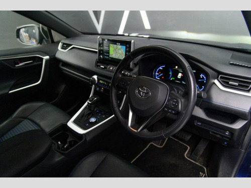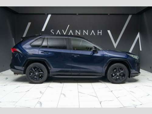 This Toyota RAV4 2.5 VVT-h Dynamic showcases Toyota's hybrid engineering at its finest, blending robust SUV capability with modern efficiency and an unmistakably bold presence, elevated here in Obsidian Blue with a Black bi-tone roof (extra) for maximum visual impact. Its athletic stance is defined by black-painted 18in alloy wheels, gloss black bumpers, black roof rails and a black rear spoiler, while the addition of side steps (extra) enhances both practicality and style. The interior combines durability with premium touches, featuring soft-touch dashboard finishes, black roof lining, a piano black centre console with silver inserts and polygonal motif design throughout. Comfort and technology are at the forefront with heated front seats, dual-zone climate control, a power tailgate, keyless entry with push-button start, a power-adjustable driver's seat with lumbar support and intuitive connectivity via an 8in multimedia display with Apple CarPlay, Android Auto and Toyota Touch 2 with Go Navigation. Safety and driver assistance are comprehensive, including Blind Spot Monitoring, Rear Cross Traffic Alert, Adaptive Cruise Control, Lane Departure Alert, Lane Keep Assist, Road Sign Assist, Reversing Camera, Front and Rear Parking Sensors and the full Toyota Safety Sense suite. Ambient lighting, LED projector headlamps and a 7in TFT multi-information display further elevate the driving experience, while the hybrid AWD system ensures confident performance in all conditio Obsidian Blue - Black, 18in Alloy Wheels - 5 Spoke - Black Pain, 7in Colour TFT Multi-Information Display, 8in Multimedia Display, Adjustable Front Drivers and Passenger S, Adjustable Speed Limiter - ASL, Airbags - Front Passenger, Analogue Tachometer, Anti-Lock Braking System - ABS - with El, Audible Alert, Automatic Headlight Levelling, Automatic High Beam On-Off Switch, Autonomous Emergency Braking, Aux-In and USB Connector, Black Bi-Tone Roof, Black Rear Spoiler, Black Roof Lining, Blind Spot Monitor and Rear Cross Traffi, Bluetooth Connectivity, Boot Light, Central Armrest, Clean Air Filter, Cyclist Detection, DAB Digital Radio, Daytime Running Lights - LED, Distinctive Storage Illumina