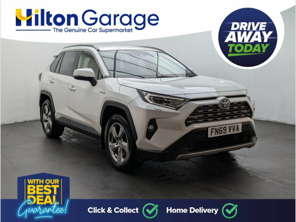 18" Alloys, Bluetooth, Parking Sensors, Reversing Camera, Cruise Control. Last serviced on the 27.08.2025 at 38581 miles. This 2019 Toyota RAV4 VVT-h Excel offers exceptionally low mileage for its age, having covered just 41,350 miles, and boasts an MOT valid until November 2026. This Four Wheel Drive model is powered by a 2.5 litre Petrol Hybrid engine, meeting Euro 6 emissions standards. It comes equipped with a suite of convenient features including a reversing camera with parking assistance, keyless entry with push button start, and full range adaptive cruise control accessible from the steering wheel. You'll also find front and rear parking sensors for added peace of mind, and LED projector headlamps for excellent visibility. The RAV4 Excel stands out with its impressive acceleration, reaching 0-60mph in just 8.4 seconds, demonstrating its responsive performance. Its large boot space offers practicality for all your needs, while its low CO2 emissions highlight its efficiency compared to many other vehicles in its class. This combination of performance, practicality, and efficiency makes this RAV4 a compelling choice. 18in Alloy Wheels - 5 Spoke - Silver, 7in Colour TFT Multi-Information Display, 8in Multimedia Display, Adjustable Front Drivers and Passenger S, Adjustable Speed Limiter - ASL, Airbags - Front Passenger, Analogue Tachometer, Anti-Lock Braking System - ABS - with El, Automatic Headlight Levelling, Automatic High Beam On-Off Switch, Autonomous Emergency Braking, Aux-In and USB Connector, Blind Spot Monitor and Rear Cross Traffi, Bluetooth Connectivity, Body Coloured Roof, Boot Light, Central Armrest, Clean Air Filter, Cyclist Detection, DAB Digital Radio, Daytime Running Lights - LED, Distinctive Storage Illumination, Door Handles - Body Coloured, Door Mirror - Heated and Electrically Re, Doo