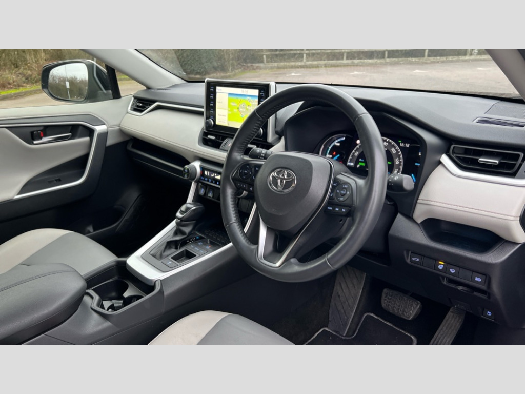 Toyota RAV4 2.5 VVT-i Hybrid Excel 5dr CVT 2WD 7" TFT multi information display, Analog tachometer, Apple car play and Android auto, Blind spot monitoring with rear cross traffic alert, Bluetooth system, Cyclist Detection, Drive mode selector, eCall emergency call system, ECO-driving indicator, Electric power steering, EV audible alert, Front parking sensors, Full range intelligent adaptive cruise control, Hybrid system indicator, Lane departure warning system, Lane trace assist, Lights on warning, Low screen washer fluid warning, Memory on adjustable speed limiter, My T Connected services, Night Time Pedestrian Detection, Power boot opening and closing, Push button start, Rear parking camera, Rear parking sensors, Remote boot door release in cabin, Remote boot door release in key, Road sign assist - RSA, Touch 2 Go navigation system including 3D maps and voice control, Traffic sign recognition, Trip computer, Voice control system, Vehicle Stability Control (VSC), 6 speakers, 8" Multimedia display touch screen, Auxiliary socket for external MP3 player, DAB audio, Toyota touch media system, USB connection, Adaptive automatic high beam, Automatic headlamp levelling, Automatic headlights, Automatic wipers, Automatically retractable door mirrors, Black roof rails, Body colour door handles, Body colour door mirrors, Body colour rear spoiler, Body colour roof, Body coloured bumpers, Body coloured Shark-fin antenna, Door mirror puddle lights, Dual exhaust pipes, Electric adjustable door mirrors, Electrochromatic rear view mirror, Emergency brake-light signal (EBS), Follow me home headlights, Front fog lights, Front wiper de-icer, Headlight cleaners, Heated door mirrors, LED daytime running lights, LED High mounted stop lamp, LED rear combination lights, Meshed shape upper front grille, Power front windows, Power rear windows, Privacy glass, Projector LED headlights, Rear screen wiper - intermittent, Rear windscreen defogger, Silver front under-run, Silver rear under-run, Trailer sway control, Turning signal integrated indicators in door mirrors, 3 rear headrests, 60/40 split fold rear seat back, Boot light, Clean air filter, Driver and front passenger personal light, Driver and front passenger Whiplash Injury Lessening seats, Driver and passenger sunvisors with illuminated vanity mirrors, Driver seat memory function, Dual sided deck board in boot, Dual zone automatic air conditioning, Floor mats, Folding rear centre armrest, Front and rear bottle holders, Front centre armrest, Front footwell lights, Front headrests, Front seat and rear pockets, Front/rear roof mounted assist grips, Grey roof lining, Heated driver and front passenger seats, Heated steering wheel, Illuminated entry system, Isofix child seat preparation, Leather gear shift with chrome surround, Leather upholstery, Light blue ambient lighting on front cupholders and open tray, Manual telescopic and tilt 3-spoke leather steering wheel with Chrome insert, Manually reclining and sliding front passenger seat, Multimedia switches on steering wheel, Pollen filter, Power height-adjustable sliding reclining and lumbar support for driver seat, Rear coat hooks, Rear door armrests, Rear passenger air vents, Rear view display in display audio screen with dynamic guide lines, Reclining rear seats, Satin chrome interior door handles, Sunglasses holder, Telephone and voice recognition switches on steering wheel, 3x3 point rear seatbelts, ABS/EBD, Acoustic vehicle alerting system, Adjustable front driver and passenger seat belt extender, Brake assist function, Brake hold function, Child proof door locks, Collision mitigation braking system, Driver/Front Passenger airbags, Driver/front passenger side airbags, Drivers knee airbag, Electronic parking brake, Electronic Stability Programme (ESP), Front and rear curtain airbags, Front and rear seatbelt reminder, Front passenger airbag detector, Hill start assist, Passenger airbag cut-off device, Pedestrian detection, Pre collision system, Seatbelt pretensioners with load limiters, Toyota safety sense, Traction control, Tyre pressure warning, Glass-breaking alarm sensors, Immobiliser, Intrusion alarm, Light - on and Key in reminder, Motion sensor alarm, Remote central locking, Smart entry + Smart start, Speed sensitive auto door locking, Tilt detection sensors, Piano black centre console with silver insert, Soft-touch black lower dashboard, Soft-touch black upper dashboard with silver insert, 19" 10 spoke silver alloy wheels, Tyre repair kit