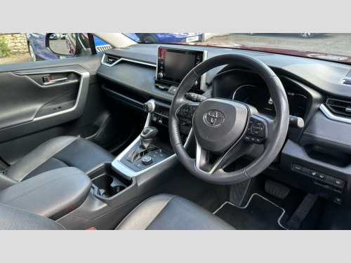 Toyota RAV4 2.5 VVT-i Hybrid Excel 5dr CVT 7" colour TFT display, Adaptive cruise control with lane trace assist, Adjustable speed limiter, Apple car play and Android auto, Blind spot monitoring with rear cross traffic alert, Bluetooth system, Cyclist Detection, Drive mode selector, eCall emergency call system, ECO-driving indicator, Electric power steering, EV audible alert, Hybrid system indicator, Lane departure warning system, Lights on warning, Low screen washer fluid warning, Night Time Pedestrian Detection, Pedestrial detection, Power boot opening and closing, Rear parking camera, Rear parking sensors, Remote boot door release in cabin, Tachometer, Touch 2 Go navigation system including 3D maps and voice control, Traffic sign recognition, Trip computer, Voice control system, Vehicle Stability Control (VSC), 6 speakers, 8" Multimedia display touch screen, Auxiliary socket for external MP3 player, DAB audio, Steering wheel mounted audio controls, Toyota touch media system, USB connection, Auto dimming interior mirror, Auto high beam, Automatic headlamp levelling, Automatic headlights, Automatically retractable door mirrors, Black roof rails, Body colour door handles, Body colour door mirrors, Body colour rear spoiler, Body coloured bumpers, Body coloured Shark-fin antenna, Door mirror puddle lights, Electric adjustable door mirrors, Emergency brake-light signal (EBS), Follow me home headlights, Front fog lights, Headlight cleaners, Heated door mirrors, LED daytime running lights, LED High mounted stop lamp, LED rear lights, Meshed upper front grille, Power front windows, Power rear windows, Privacy glass, Projector LED headlights, Rear screen wiper - intermittent, Rear windscreen defogger, Silver front under-run, Silver rear under-run, Trailer sway control, Turning signal integrated indicators in door mirrors, Windscreen wiper de-icer, 3 rear headrests, 60/40 split fold rear seat back, Boot light, Clean air filter, Driver and front passenger personal light, Driver and front passenger Whiplash Injury Lessening seats, Driver and passenger sunvisors with illuminated vanity mirrors, Driver seat memory function, Dual sided deck board in boot, Dual zone automatic air conditioning, Floor mats, Folding rear centre armrest, Front and rear bottle holders, Front centre armrest, Front footwell lights, Front headrests, Front seat and rear pockets, Front/rear roof mounted assist grips, Grey roof lining, Heated driver and front passenger seats, Heated steering wheel, Isofix child seat preparation, Leather gear shift with chrome surround, Leather upholstery, Light blue ambient lighting on front cupholders and open tray, Manual telescopic and tilt 3-spoke leather steering wheel with Chrome insert, Manually reclining and sliding front passenger seat, Pollen filter, Power height-adjustable sliding reclining and lumbar support for driver seat, Rear coat hooks, Rear door armrests, Rear passenger air vents, Reclining rear seats, Satin chrome interior door handles, Sunglasses holder, 3x3 point rear seatbelts, ABS/EBD, Adjustable front driver and passenger seat belt extender, Brake assist function, Child proof door locks, Collision mitigation braking system, Driver/Front Passenger airbags, Driver/front passenger side airbags, Drivers knee airbag, Electronic parking brake, Electronic Stability Programme (ESP), Emergency brake light system (EBS), Front and rear curtain airbags, Front and rear seatbelt reminder, Hill start assist, Passenger airbag cut-off device, Seatbelt pretensioners with load limiters, Traction control, Tyre pressure warning, Alarm/immobiliser, Glass-breaking alarm sensors, Light - on and Key in reminder, Remote central locking, Smart entry + Smart start, Speed sensitive auto door locking, Tilt detection sensors, Piano black centre console with silver insert, Soft-touch black lower dashboard, Soft-touch black upper dashboard with silver insert, Full size spare wheel