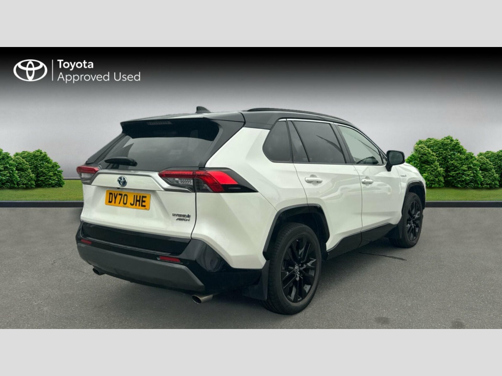 The Toyota RAV4 boasts a large boot, making it ideal for families or anyone needing extra space. Acceleration from 0-62mph in just 8.1 seconds means that this vehicle offers impressive performance, setting it apart from its competitors. 19in Alloy Wheels - 5 Spoke - Black Painted, 7in Colour TFT Multi-Information Display, 8in Multimedia Display, Acoustic Vehicle Alert System - AVAS, Adaptive Automatic High Beam, Adjustable Front Drivers and Passenger Seat Belt Extender, Adjustable Speed Limiter - ASL, Analogue Tachometer, Anti-Lock Braking System - ABS - with Electronic Brake Force Distribution - EBD and Brake Assist - BA, Armrest - Rear, Automatic Headlight Levelling, Automatic High Beam On-Off Switch, Autonomous Emergency Braking, Aux-In and USB Connector, Black Bi-Tone Roof, Black Rear Spoiler, Black Roof Lining, Blind Spot Monitor - BSM, Bluetooth Connectivity, Boot Light, Central Armrest, Clean Air Filter, Cyclist Detection, DAB Digital Radio, Daytime Running Lights - LED, Distinctive Storage Illumination, Door Handles - Body Coloured, Door Mirror - Heated and Electrically Retractable, Door Mirrors - Gloss Black, Drive Mode Selector, Driver and Front Passenger Personal Lights, Driver and Front Passenger Whiplash Injury Lessening - WIL - Seats, Driver and Passenger Seatback Pockets, Dual Exhaust Pipes, Dual Sided Deck Board in Boot, Dual-Zone Automatic Air Conditioning, EBS - Emergency Brake Signal, Eco Driving Indicator, Electric Power Steering - EPS, Electrochromatic Rear-View Mirror, Electronic Parking Brake with Brake Hold Function, Emergency Call Assistance, Floor Mats, Follow Me Home Headlights, Front Fog Lights, Front Footwell Lights, Front Passenger Airbag Detector, Front Passenger Airbag On-Off Switch, Front and Rear Bottle Holders, Front and Rear Overhead Assist Grips, Front and Rear Parking Sensors, Front and Rear Power Windows, Full Range Adaptive Cruise Control on Steering Wheel, Glass-Breaking Alarm Sensors, Gloss Black Front and Rear Bumper, Gloss Black Protection Moulding on Side Doors, HAC - Hill Start Assist Control, Headlights - Automatic On, Heated Driver and Front Passenger Seat, High-Mounted Stop Lamp - LED Type, Hybrid System Indicator, ISOFIX Fixing Points, Illuminated Entry System, Immobiliser, Indicator Integrated in Door Mirrors, Interior Design Polygonal Motif Pattern, Interior Door Handles - Satin Chrome, Intrusion Alarm, Key Reminder Warning, Keyless Entry System with Push Button Start, LED Projector Headlamps, LED Rear Brake Lights, Lane Departure Alert, Lane Trace Assist, Leather Gear Shift with Chrome Surround, Light Blue Ambient Lighting on Front Cup Holders and Open Tray, Light and Mirror on Driver and Front Passenger Sun Visors, Lights On Warning, Manually Reclining and Sliding Front Passenger Seat, Memory on Speed Limiter, Meshed Upper Front Grille, Motion Sensor Alarm, Multimedia Switches on Steering Wheel, MyT Connected Services, Night Time Pedestrian Detection, Pedestrian Detection, Piano Black Centre Console with Silver Inserts, Power Back Door, Power and Remote Door Locking, Power-Sliding - Height-Adjustable Drivers Seat with Lumbar Support, Pre-Collision Warning System with Pedestrian and Cyclist Detection, Privacy Glass, Puddle Lights on Door Mirrors, Push Start Button, Rain Sensing Wipers, Rear Cross Traffic Alert - RCTA, Rear Door Armrest, Rear LED Combination Lights, Rear Passenger Air Vents, Rear Passenger Coat Hooks, Rear Seats 60-40 Split Folding, Rear Window Defogger, Rear Window Wiper, Rear-view Camera Display in Display Audio Screen with Static Guide Lines, Reclining Rear Seats, Remote Boot Door Release in Cabin, Remote Boot Door Release on Key, Reversing Camera, Road Sign Assist, Roof - Gloss Black, Roof Rails - Black, Seat Belt - Pre-Tensioners and Force Limiters, Seat Belt Reminder - Front and Rear, Shark Fin Antenna, Silver Front and Rear Under Runs, Smartphone Integration - Apple Car Play and Android Auto, Soft Touch Black Lower Dashboard, Soft Touch Black Upper Dashboard with Silver Insert, Speakers x6, Speed-Detecting Automatic Door Locks, Steering Wheel - 3-Spoke Leather with Chrome Insert, Sunglasses Holder, Supplemental Restraint System - SRS - Airbags - 7 Airbags, Telephone and Voice Recognition on Steering Wheel, Tilt Detection Sensors, Tilt and Telescopic Adjustable Steering Wheel, Toyota Safety Sense, Toyota Touch 2 with Go Navigation, Trailer Sway Control - TSC, Tyre Pressure Warning System, Under-Floor Storage in Boot, VSC - Vehicle Stability Control, Voice Recognition