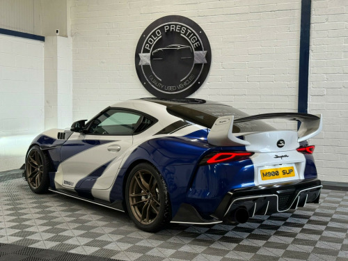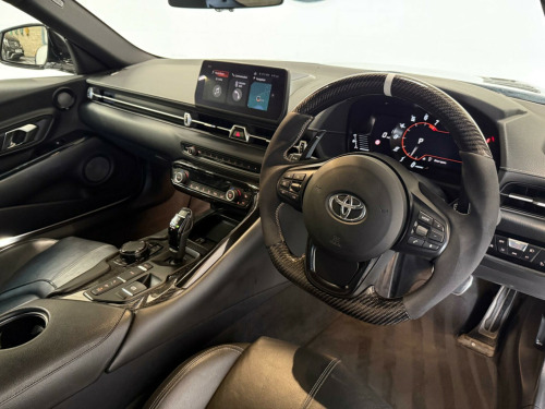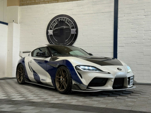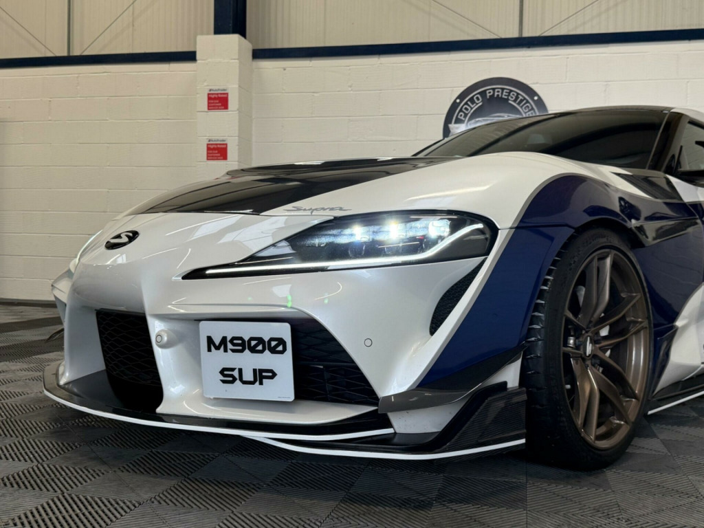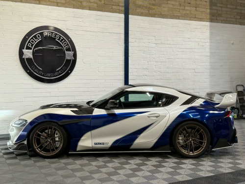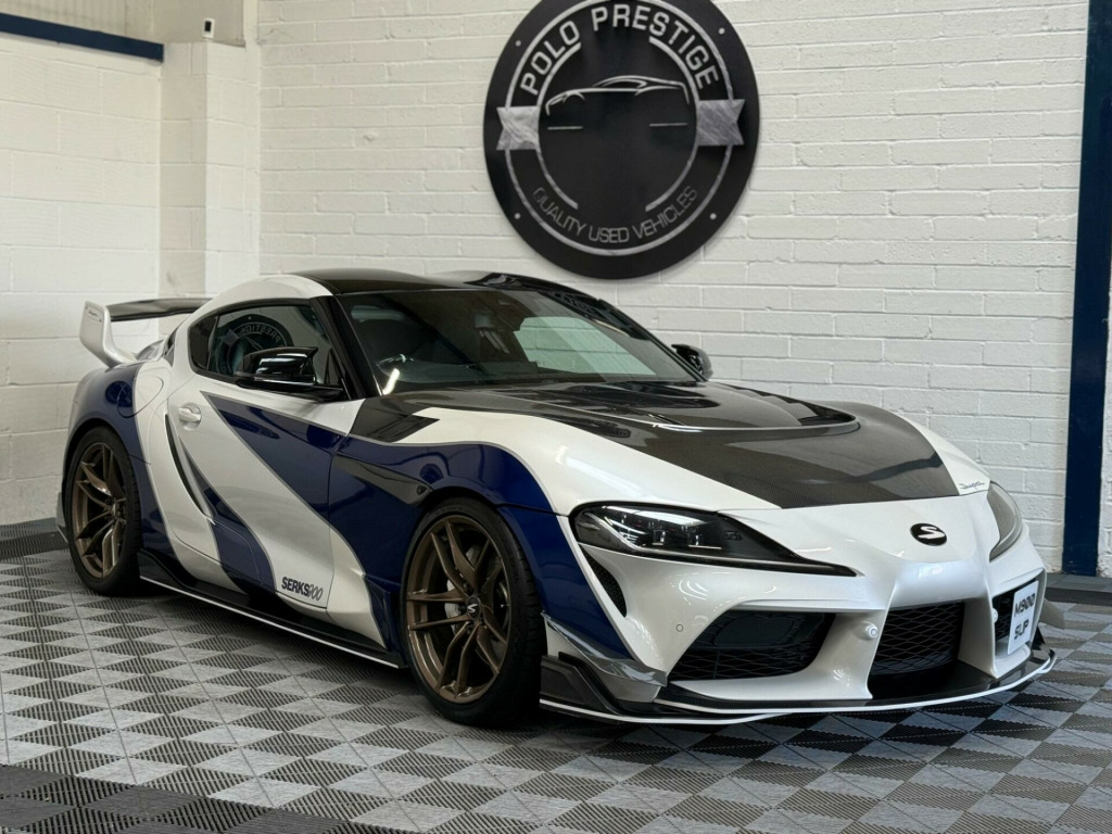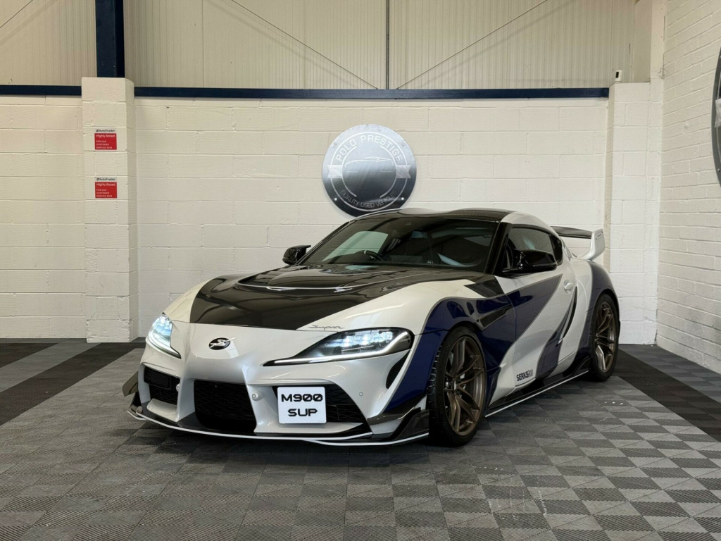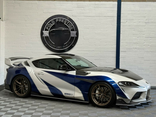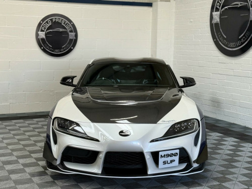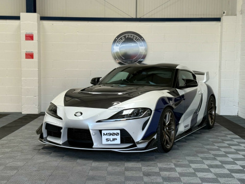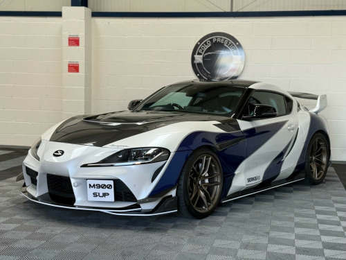 Presented for sale is an exceptional example of a fully built 900BHP Toyota Supra, engineered and refined to an extraordinary standard. Built by SerksMotorworks and tuned by Darkhorse Kiev on Bootmod3, this vehicle represents one of the most comprehensive and high-performance Supra builds currently in the UK and is believed to be the fastest street-legal Supra in the country. This build combines extreme performance with reliability and drivability, achieving supercar-level power through meticulous engineering and premium component selection.?Performance & Tuning•Built by SerksMotorworks, tuned by Darkhorse Kiev (Bootmod3)•Bootmod3 Flex Fuel Kit with multiple calibrated maps:•Map 1: 99RON pump fuel•Map 2: 99RON (pops & bangs)•Map 3: E60 - 900BHP performance map•65Omega Turbo Kit (T51R mod)•Fully built Spool transmission with Rod Sutphin custom XHP tune•Reflex Port Injection system with:•S58 direct injectors•6x 500cc port injectors•LPFP upgrade with plug & play harness•Wagner inlet manifold•Titanium chargepipe•5'' MAD decat downpipe, custom 3.5'' titanium SPR1 exhaust system?Chassis & Handling•Twisted Tuning line lock system•Twisted Tuning differential brace•Verkline traction and toe arms•Subframe inserts for improved rigidity•SW Motorsport roll cage?Exterior & Styling•Carbon fibre bonnet•Carbon fibre wings•Carbon fibre side skirt extensions•Carbon fibre front splitter•Carbon fibre rear diffuser•Street Hunter carbon fibre rear spoiler?SummaryThis Supra is a rare opportunity to acquire a no-compromise, 900BHP street-legal build, executed by some of the most respected names in the tuning industry. Every element of this car has been upgraded to deliver exceptional power, stability, and reliability, while maintaining full usability on UK roads.A truly outstanding example for the serious performance enthusiast. in alloy wheels - black and silver forged, abs - anti lock braking system, active sound control, active sports differential, adaptive automatic high beam, adaptive cruise control switch on steering wheel, adaptive cruise control with full stop and start functionality, adjustable speed limiter -asl- switch on steering wheel, aluminium pedals, audio switches on steering wheel, auto dimming rear view mirror, auto wipers, automatic headlight cut-off, automatic headlight levelling, automatically retractable door mirrors, blind spot monitor - bsm, bluetooth hands free system, boot 12v power outlet, boot door release with push button, boot light, brushed stainless steel exhaust pipe finisher, carbon dash insert, chrome insert on centre console, cornering lights, cupholders - front, dab digital radio, daytime running lights - led, digital speedometer, door courtesy light, drive mode selector, driver and front passenger floor mats, driver and front passenger personal lights, driver and passenger seatback pockets, drivers seat memory, dual exhaust pipes, dual-zone automatic air conditioning, ebs - emergency brake signal, electric power steering - eps, electronic parking brake, front 12v power outlet, front footwell lights, front led light guide, front power windows, front seat belt reminder, gear shift indicator - gsi, glass-integrated antenna, glovebox light, head up display, headlights - automatic, headlights - follow me home, heated driver and front passenger seat, hooks for luggage holding net, isofix child restraint system, immobiliser, indicator integrated in door mirrors, intrusion sensor, jbl premium sound system, led dual-beam projector headlights, led high-mounted stop light, led indicators, lane departure alert with steering control, light on drivers and passenger sun visor, locking wheel nuts, luggage holding net, microphone, navigation and access to connected services, paddle shift, parking sensors - front, parking sensors - rear, piano black door mirrors, power adjustable lumbar support on driver and passenger seat, power door locks, power height adjustable driver and passenger seat, power reclining driver and passenger seat, power sliding driver and passenger seat, power-tilting cushion on driver seat, pre-collision warning system with pedestrian and cyclist detection, rear cross traffic alert - rcta, rear lights - led, rear-end collision warning, rear-view camera display, red sports rear brake calipers, remote boot door release in cabin, remote door locking, road sign assist, scuff plates - aluminium, service schedule warning, smart entry and push-button start, speed-detecting automatic door locks, sport mode button, sports seats - front, start holding control, steering wheel - manual telescopic adjustment, steering wheel - manual tilt adjustment, supplemental restraint system - srs - airbags - 7 airbags, supra sports front brake calipers, suspension - adaptive variable - avs, tpms - tyre pressure monitoring system, tilt detection sensors, tonneau cover, toyota supra connect, toyota supra safety plus, traction control - trc, tyre repair kit, usb connection, vsc - vehicle stability control, vanity mirror on driver and passengers sun visor, voice recognition, wireless mobile phone charger, ecall emergency call system