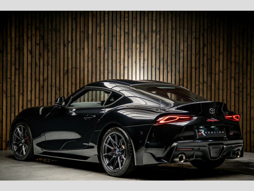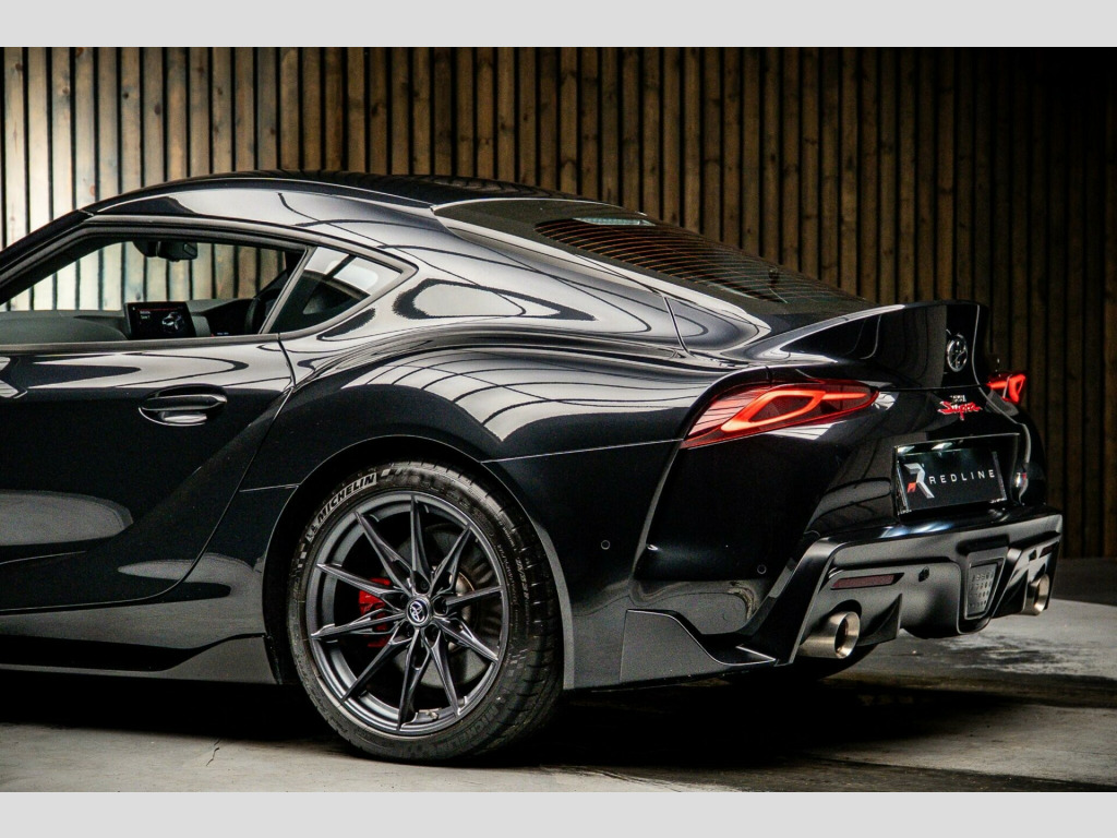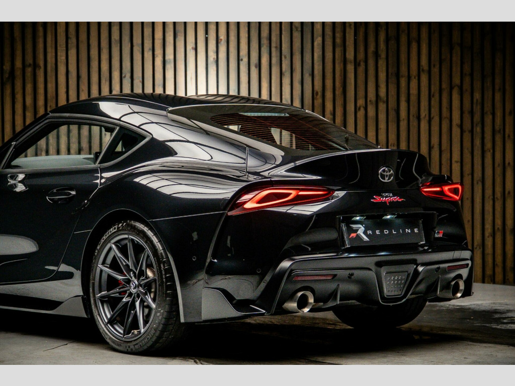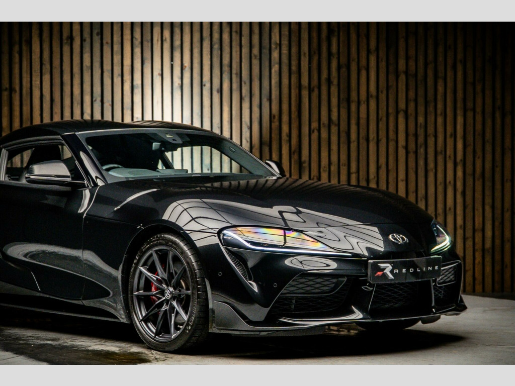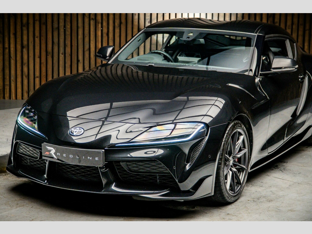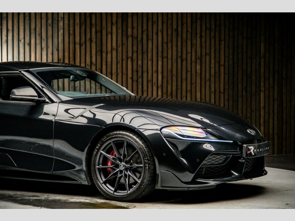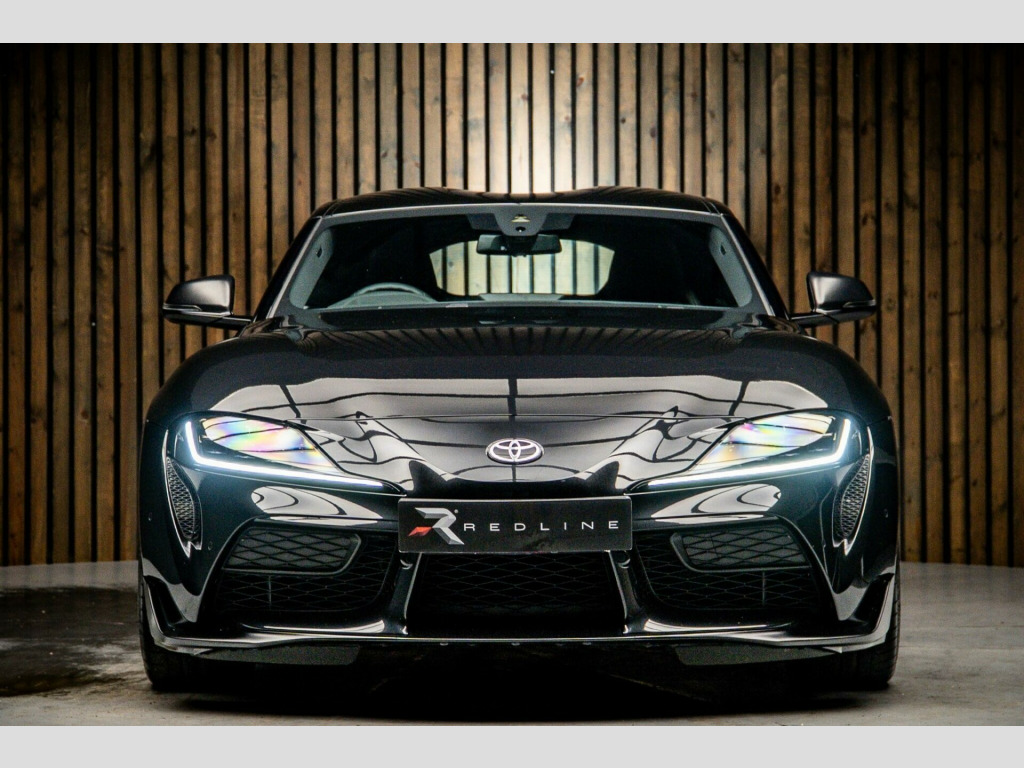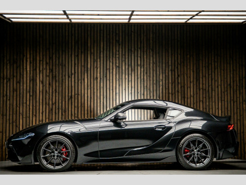 This 2023 Toyota Supra T GR Pro is a remarkable example with exceptionally low mileage, having covered just 5541 miles. This particular Supra is presented in the GR Pro trim and features a powerful 3.0L petrol engine, meeting Euro 6 emission standards. It boasts a distinctive Red Supra Badge and an 8.8 inch Toyota Touch Multimedia System that seamlessly integrates with your smartphone, including Apple CarPlay. For an enhanced audio experience, it is equipped with a JBL Premium Sound System, and for added safety and convenience, it includes Intelligent Adaptive Cruise Control and Blind Spot Monitor.This Supra offers an impressive driving experience, achieving 0-62mph in a swift 4.3 seconds. Its fuel economy is a respectable 32 mpg, and it benefits from low CO2 emissions, indicating it is more efficient than many similar vehicles. Furthermore, its low insurance group highlights its cost effectiveness. These combined highlights demonstrate how this Toyota Supra stands out from other vehicles in its class.. 19in Alloy Wheels - 10-Spoke - Gunmetal Grey Forged, 3-Spoke Leather Steering Wheel, 8.8in Toyota Touch Multimedia System with Smartphone Integration including Apple CarPlay, ABS - Anti Lock Braking System, Active Sports Differential, Adaptive Automatic High Beam, Adaptive Variable Suspension - Optimised, Adjustable Speed Limiter -ASL- Switch on Steering Wheel, Aluminium Pedals, Audio Switches on Steering Wheel, Auto Dimming Rear View Mirror, Auto Wipers, Automatic Headlight Cut-Off, Automatic Headlight Levelling, BA - Brake Assist, Blind Spot Monitor - BSM, Boot 12V Power Outlet, Boot Door Release with Push Button, Boot Light, Brushed Stainless Steel Exhaust Pipe Finisher, Centre Room Light, Cornering Lights, Cupholders - Front, DAB Digital Radio, Daytime Running Lights - LED, Digital Speedometer, Door Courtesy Light, Door Mirrors - Auto Dimming - Power Retractable - Reverse Tilting - Heated, Door Mirrors - Gloss Black, Drive Mode Selector, Driver and Front Passenger Personal Lights, Driver and Passenger Seatback Pockets, Driving Assistant - TSS+, Dual Exhaust Pipes, Dual-Zone Automatic Air Conditioning, EBS - Emergency Brake Signal, Electric Power Steering - EPS, Electronic Parking Brake, Floor Mats, Front 12V Power Outlet, Front Footwell Lights, Front LED Light Guide, Front Power Windows, Front Seat Belt Reminder, Glass-Integrated Antenna, Glovebox with Light, Head Up Display, Headlights - Automatic, Headlights - Follow Me Home, Heated Driver and Front Passenger Seat, Hooks for Luggage Holding Net, ISOFIX Child Restraint System, Immobiliser, Indicator Integrated in Door Mirrors, Intelligent Adaptive Cruise Control, Intrusion Sensor, JBL Premium Sound System, LED Dual-Beam Projector Headlights, LED High-Mounted Stop Light, LED Indicators, Lane Departure Alert with Steering Control, Light on Drivers and Passenger Sun Visor, Memory Function on Door Mirrors, Multi-Info Switches on Steering Wheel, Paddle Shift, Parking Sensors - Front, Parking Sensors - Rear, Power Adjustable Lumbar Support on Driver and Passenger Seat, Power Door Locks, Power Height Adjustable Driver and Passenger Seat, Power Reclining Driver and Passenger Seat, Power Sliding Driver and Passenger Seat, Power-Tilting Cushion on Driver Seat, Pre-Collision Warning System with Pedestrian and Cyclist Detection, Rear Cross Traffic Alert - RCTA, Rear Window Defogger, Rear-End Collision Warning, Rear-View Camera Display, Red SUPRA Sports Front Brake Calipers, Red Sports Rear Brake Calipers, Red Supra Badge, Remote Door Locking, Road Sign Assist, Scuff Plates - Aluminium, Seats - Drivers Memory Function, Smart Entry and Push-Button Start, Speakers x12, Speed-Detecting Automatic Door Locks, Sports Seats - Front, Steering Wheel - Manual Telescopic Adjustment, Steering Wheel - Manual Tilt Adjustment, Supplemental Restraint System - SRS - Airbags - 7 Airbags, TPMS - Tyre Pressure Monitoring System, Telephone Switches on Steering Wheel, Tilt Detection Sensors, Toyota Supra Connect, Toyota Touch 2 with Go Navigation, Traction Control - TRC, Tyre Repair Kit, USB Connection, VSC - Vehicle Stability Control, Vanity Mirror on Driver and Passengers Sun Visor, Variable Intermittent Windscreen Wipers, Voice Recognition, Wireless Mobile Phone Charger, eCall Emergency Call System.
