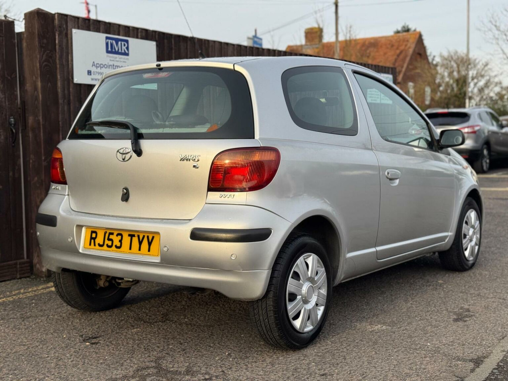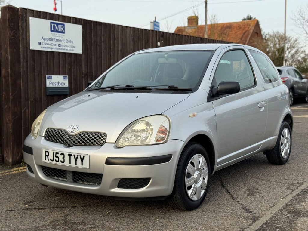 Please call Ryan on 01296 435568 for more details. Here we have a low mileage, reliable & very well cared for 2003 (53) Toyota Yaris 1.0 VVT-i T3 in stock. ULEZ compliant & comes with road tax that costs just £195 per year while averaging 50.4 MPG & being insurance group 5/50. Complete with 21 service stamps, recently serviced & will be supplied to its new owner with a FREE 3 month warranty. DETAILS – Finished in Crystal Silver with Black Cloth Upholstery & 14 Silver Hub-Caps. A lovely example with only 3 owners from new, 2 keys & drives superbly with its 5 speed manual gearbox & nippy 67 BHP petrol engine. SPEC – This T3 model comes with a Touchscreen Apple Car Play/Android Auto Media Unit, Electric Front Windows, Manual Door Mirrors, CD Player, Alloy Wheels & Heated Rear Screen. HISTORY- Just serviced at 46,200 miles in January 2026. A total of 21 services have been carried out, 19 by Toyota. SERVICES: 5K (2004), 10K (2005), 16K (2006), 19K (2007), 23K (2008), 26K (2009), 29K (2010), 32K (2011), 34K (2012), 37K (2013), 38K (2014), 39K (2015), 40K (2016), 40K (2017), 41K (2018), 41K (2019), 41K (2020), 41K (2021), 41K (2022), 45K (2024), 46K (2026). The MOT Expires in December 2026 & passed with no advisories. MILES – This car has covered only 46,235 miles from new. It was first registered on 17th November 2003. CONDITION – The car is in good condition overall, but does have some paint fading on the drivers side which can be seen in the photographs. A detailed walk around video can be found on our TMR Prestige Services Youtube channel highlighting these. ABOUT US – TMR Prestige Services Ltd are a father & son family run business based in Stoke Mandeville, Aylesbury. 2026 is our 12th year of trading in low mileage, high specification cars. We operate by appointment only & are open 7 days a week. We pride ourselves on giving a five star service. Please take a moment to view our reviews on Auto Trader and Google – we are very proud of them. Part Exchange, Extended Warranties & Nationwide Delivery Available (fees apply).