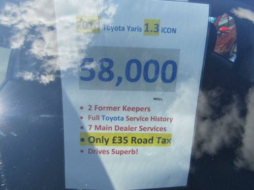 This 2014 Toyota Yaris 1.3 Dual VVT-i Icon 2 Former Keepers, Only 58,000 miles Hatchback is currently available for £6,695 in Gillingham Kent with Petrol engine and Manual gearbox. For more information or to arrange a viewing, click here to send us an email using form below.