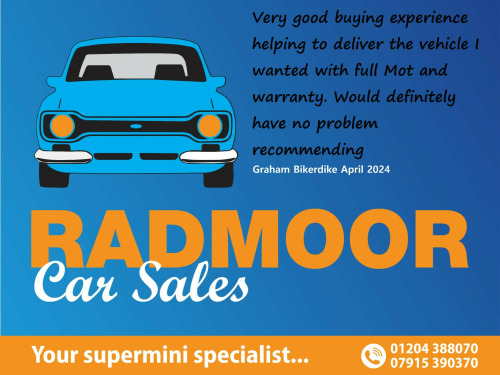 Here we have for you a wonderful little Yaris with the ever so desirable automatic gearbox. This car was collected from a trusted main agent supplier over 100 miles away in the beautiful town of Warwick. The car drives ever so well with no unwanted rattles or bangs and comes with 12 month M.O.T. along with a service. There are 2 keys. The spec includes Isofix, rear childlocks, electric front windows, cupholders and most importantly a spare wheel and toolkit. The last owner is a lady called Hannah who owned the car since 2023. Radmoor Car Sales is a family business, has been trading over 45 years. Please look at our 5* reviews on Autotrader. We also have great reviews on Google. Feel free to ring 01204 388070, text 07915 390370,or email radmoorcarsalesgmail.com for a prompt reply( check your SPAM folder, we reply to all emails). The car you are looking at today and are thinking of buying tomorrow, is the car someone else looked at yesterday and they want to buy it today. We are on the A665 Radcliffe Moor Rd, Radcliffe, Bury opposite Bradley Fold Garden Centre. If you are using Google Maps App, just search for Radmoor Car Sales for our marker Why not have a look at our LIKE page on Facebook. Join us to see new and exciting fresh stock. keys, adjustable steering column, bluetooth, childlocks, electric front windows, height adjustable drivers seat, isofix, radio/ cd player with aux. input, remote locking with deadlocking, spare wheel and toolkit