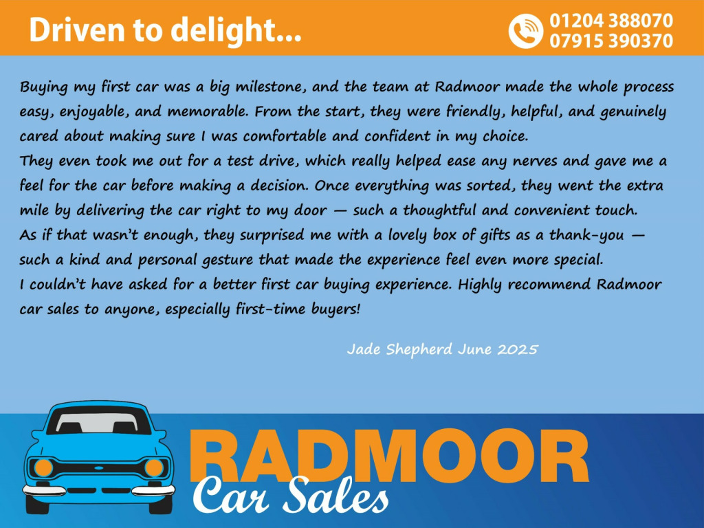 Wow! What an amazing story we have for you with this wonderful little Yaris. We collected this car from a trusted main agent supplier over 200 miles away from us in the beautiful county of Somerset, We drove the car back and, as expected, it drives exceptionally well. The engine is willing, the gearbox is nice and smooth, and everything else seems to do exactly what it should. There is just one owner recorded on the V5, a lady named Jane, who we are told, was crying when she traded this car into the dealer. Jane has really looked after this car, the service book has been filled in and there are more stamps in it than there are spaces for stamps. There are invoices for the work she has had done to the car. Inside, the car is incredibly clean, she really has looked after it. It comes with a 12 month M.O.T. from purchase. An amazing little car in great condition that drives ever so well. Radmoor Car Sales is a family business, has been trading over 45 years. Please look at our reviews on Google. Feel free to ring 01204 388070, text 07915 390370,or email radmoorcarsalesgmail.com for a prompt reply( check your SPAM folder, we reply to all emails). The car you are looking at today and are thinking of buying tomorrow, is the car someone else looked at yesterday and they want to buy it today. We are on the A665 Radcliffe Moor Rd, Radcliffe, Bury opposite Bradley Fold Garden Centre. If you are using Google Maps App, just search for Radmoor Car Sales for our marker Why not have a look at our LIKE page on Facebook. Join us to see new and exciting fresh stock. keys, adjustable steering column, cupholders, electric front windows, height adjustable drivers seat, moonroof, remote central locking, spare wheel and toolkit, velour upholstery