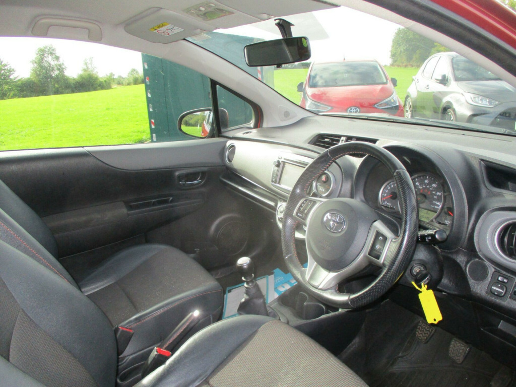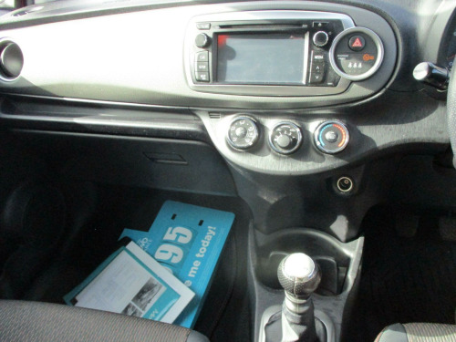This 2013 Toyota Yaris 1.33L Petrol, in the SR trim, offers the benefit of a low insurance group. As a Dual VVT-i SR model, this Yaris combines practicality with modern features.The car includes air conditioning to keep you comfortable, and Bluetooth connectivity, which allows for hands-free calls and Bluetooth music streaming. The rear-view camera is a particularly useful feature, making parking and reversing easier and safer. These features show how this vehicle is better than other similar vehicles.. 12V Socket, 16in Alloy Wheels, ABS - Anti Lock Braking System, Air Conditioning, Airbags - Curtain, Airbags - Driver, Airbags - Driver Knee, Airbags - Front Passenger, Airbags - Front Passenger Cut-Off Switch, Airbags - Front Side, Assist Grips, BAS - Brake Assist System, Bluetooth Connectivity, Bluetooth Music Streaming, Child Protection Locks, Clean Air Filter, Cupholders, Door Mirrors - Colour Keyed with Integrated Indicators, Driver and Front Passenger Vanity Mirrors with Cover and Illumination, EBD - Electronic Brakeforce Distribution, Electric Power Steering - EPS, Electric Windows - Front Auto Up and Down, Electric and Heated Door Mirrors, Exterior Mirrors - Electrically Adjustable, Follow Me Home Headlights, Front Fog Lights, Front Glovebox - Passenger, Headlights - Darkened, ISOFIX Child Restraint System - 2nd Row, Immobiliser and Alarm System, Leather Handbrake Lever, Leather Steering Wheel and Gear Shift, Radio and CD Player with Aux In, Rear Seats 60-40 Split Folding, Rear View Camera, Remote Central Locking, Roof Spoiler - Colour Keyed, Seats - Anti-Whiplash Design, Seats - Drivers Height Adjustment, Steering Wheel - Audio Controls, Tachometer, Tilt and Telescopic Adjustable Steering Wheel, Tonneau Cover - Retractable, Touch Screen - 6.1in, Toyota Touch, Traction Control - TRC, Trip Computer, Trip Information and Vehicle Settings, Tyre Repair Kit, USB and Aux In, VSC - Vehicle Stability Control, iPod and MP3 Player Connectivity and Play List Management via Touch Screen.