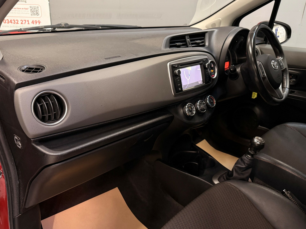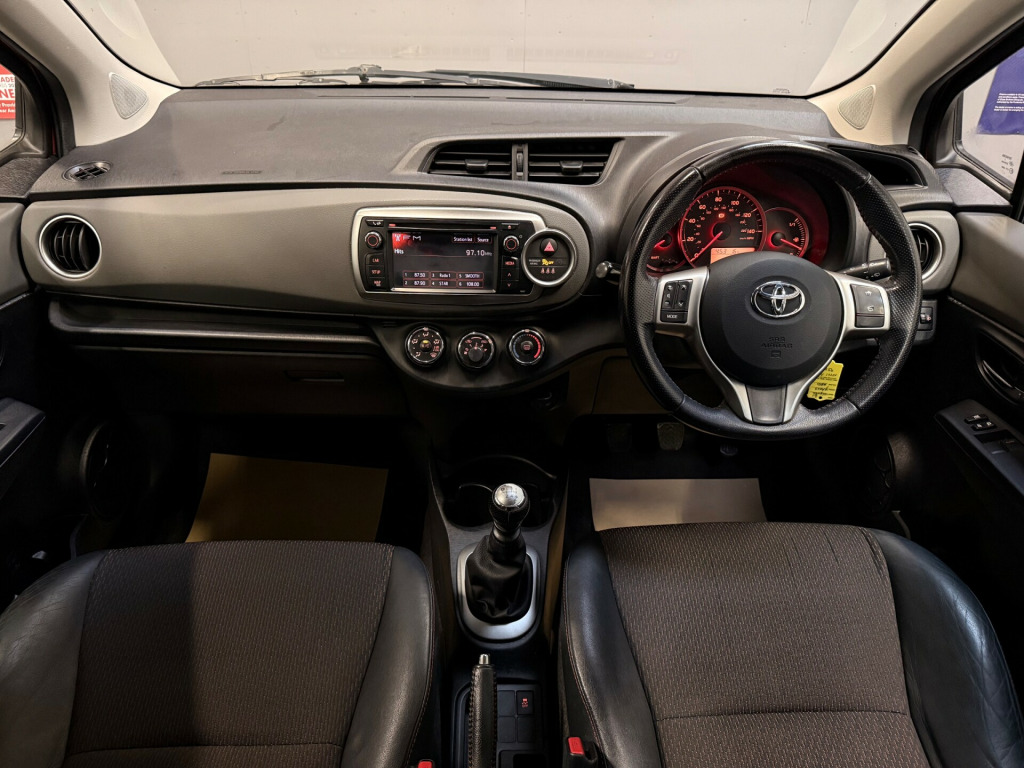 PARC LANE CARS OF GOSFORTH PRESENT THIS LOVELY LITTLE TOYOTA YARIS SR VVT-I, FINISHED IN CHERRY RED WITH BLACK HALF LEATHER/CLOTH UPHOLSTERY. THE YARIS HAS COVERED 93,849 MILES, COMES WITH ONE REMOTE KEY AND SOME OF THE FITTED SPECIFICATION INCLUDES;6 SPEED MANUAL PETROL ENGINEINFOTAINTMENT SYSTEMAIR CONDITIONINGSAT NAVBLUETOOTHELECTRIC MIRRORSTRACTION CONTROL THIS YARIS IS A STUNNING EXAMPLE AND IS CERTAINLY NOT TO BE MISSED. REG NO: NV61 AYO** LISTED SPECIFICATION IS SHOWN AS ACCURATELY AS POSSIBLE. ERRORS MAY OCCUR. PLEASE ASK US TO CLARIFY IF YOU HAVE ANY QUERIES. ** v socket, bluetooth connectivity, bluetooth music streaming, radio and cd player with aux in, touch screen - 6.1in, toyota touch, usb and aux in, ipod and mp3 player connectivity and play list management via touch screen, 16in alloy wheels, door mirrors - colour keyed with integrated indicators, electric windows - front auto up and down, electric and heated door mirrors, exterior mirrors - electrically adjustable, headlights - darkened, roof spoiler - colour keyed, tyre repair kit, abs - anti lock braking system, airbags - curtain, airbags - driver, airbags - driver knee, airbags - front passenger, airbags - front passenger cut-off switch, airbags - front side, bas - brake assist system, child protection locks, ebd - electronic brakeforce distribution, isofix child restraint system - 2nd row, immobiliser and alarm system, remote central locking, traction control - trc, vsc - vehicle stability control, air conditioning, assist grips, clean air filter, cupholders, driver and front passenger vanity mirrors with cover and illumination, front glovebox - passenger, leather handbrake lever, leather steering wheel and gear shift, rear seats 60-40 split folding, seats - anti-whiplash design, seats - drivers height adjustment, steering wheel - audio controls, tilt and telescopic adjustable steering wheel, tonneau cover - retractable, electric power steering - eps, rear view camera, tachometer, trip computer, trip information and vehicle settings, follow me home headlights, front fog lights