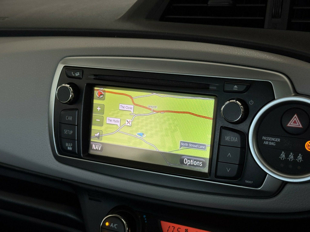 TOYOTA YARIS 1.33 5 door T SPIRIT Manual with just one owner from new and a full comprehensive service history. Toyota service book and Toyota invoices confirm main dealer services completed in 2013, 14, 15, 16, 17, 18, 19, 20, 21, 22, 23 then two more stamps from a local garage in 2024 and 2025 with the most recent being at 75,427 miles. New MOT just carried out along with an Air Conditioning Service. Recent work carried out also includes front Brake Discs and Pads, a new Clutch and Tyres.This range topping T Spirit model comes with the added factory option of TOYOTA Touch & Go Navigation plus advance Bluetooth with music streaming, USB Connection and Reverse Camera. Also added was the spare wheel option. Other features on this Yaris include Full length Panoramic Glass Roof, Dual Zone Climate Air Conditioning, Auto Headlights, Rain Sensing Wipers, Auto Dipping Rear View Mirror, Electric/Heated Mirrors, Electric Windows, Keyless Entry with Smart Start, Radio CD with Bluetooth phone connection, Multi-Function Leather Steering Wheel and a Cooled Glovebox. We also have the original invoice when this car was purchased new and two keys and full handbook pack. yota touch and go navigation system, space saver spare wheel, cloth - rivolet grey, 12v socket, 15in alloy wheels, abs - anti lock braking system, air conditioning, air conditioning - climate control, airbags - curtain, airbags - driver, airbags - driver knee, airbags - front passenger, airbags - front passenger cut-off switch, airbags - front side, assist grips, auto dimming rear view mirror, bas - brake assist system, bluetooth connectivity, bluetooth music streaming, child protection locks, cupholders, door mirrors - colour keyed with integrated indicators, driver and front passenger vanity mirrors with cover and illumination, dusk sensor, ebd - electronic brakeforce distribution, electric power steering - eps, electric windows - front and rear, electric windows - front and rear with drivers auto up and down, electric windows - rear auto up and down, electric and heated door mirrors, exterior mirrors - electrically adjustable, follow me home headlights, front fog lights, front glovebox - passenger, isofix child restraint system - 2nd row, immobiliser and alarm system, leather handbrake lever, leather steering wheel and gear shift, panoramic roof, radio and cd player with aux in, rain sensing wipers, rear privacy glass, rear seats 60-40 split folding, rear view camera, remote central locking, seats - anti-whiplash design, seats - drivers height adjustment, smart entry and smart start system, steering wheel - audio controls, tachometer, tilt and telescopic adjustable steering wheel, tonneau cover - retractable, touch screen - 6.1in, toyota touch, traction control - trc, trip computer, trip information and vehicle settings, tyre repair kit, usb and aux in, vsc - vehicle stability control, ventilated glovebox, ipod and mp3 player connectivity and play list management via touch screen
