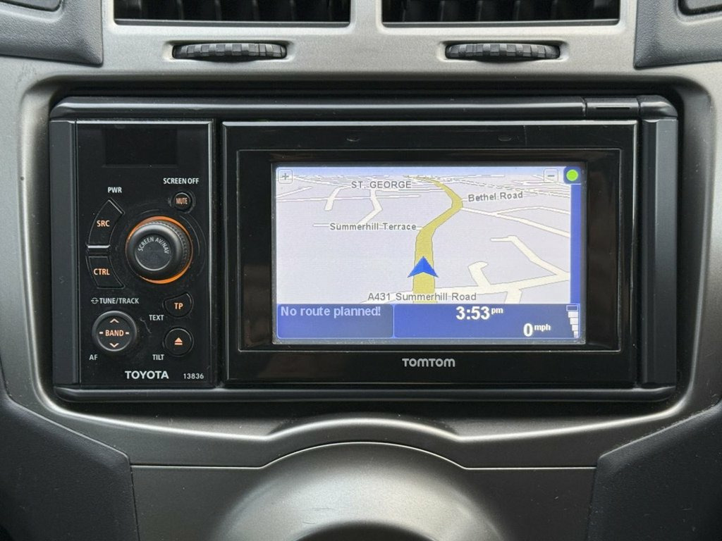 This Yaris has been owned by only ONE keeper since new. Comes with full Toyota service history (13 services, last one done at 48347 miles). Sat Nav, Bluetooth connectivity & music streaming, climate control and more. Road tax only £35 per year. 15in Alloy Wheels - 8 Spoke, 3-point Seatbelts - 2nd Row Outer Seats , 3-point Seatbelts - Five with Emergency , AM-FM Radio, Accessory Power Socket - Front, Airbags - Curtain, Airbags - Driver Knee, Airbags - Front Passenger Cut-Off Switch, Airbags - Front Side, Anti Lock Braking System - ABS with Elec, Ashtray and Cigar Lighter, Automatic Air Conditioning, Aux Input, BAS - Brake Assist System, Bluetooth Connectivity, Bottle Holders, Bumpers - Body Coloured, CD Player - Single Disc, CD System - MP3 and WMA Compatible, Central Double Locking with Remote Activ, Child Safety Locks on Rear Doors, Chrome Inside Door Handles, Chrome Side Air Vent Surrounds, Clean Air Filter, Corner Mouldings, Cup
